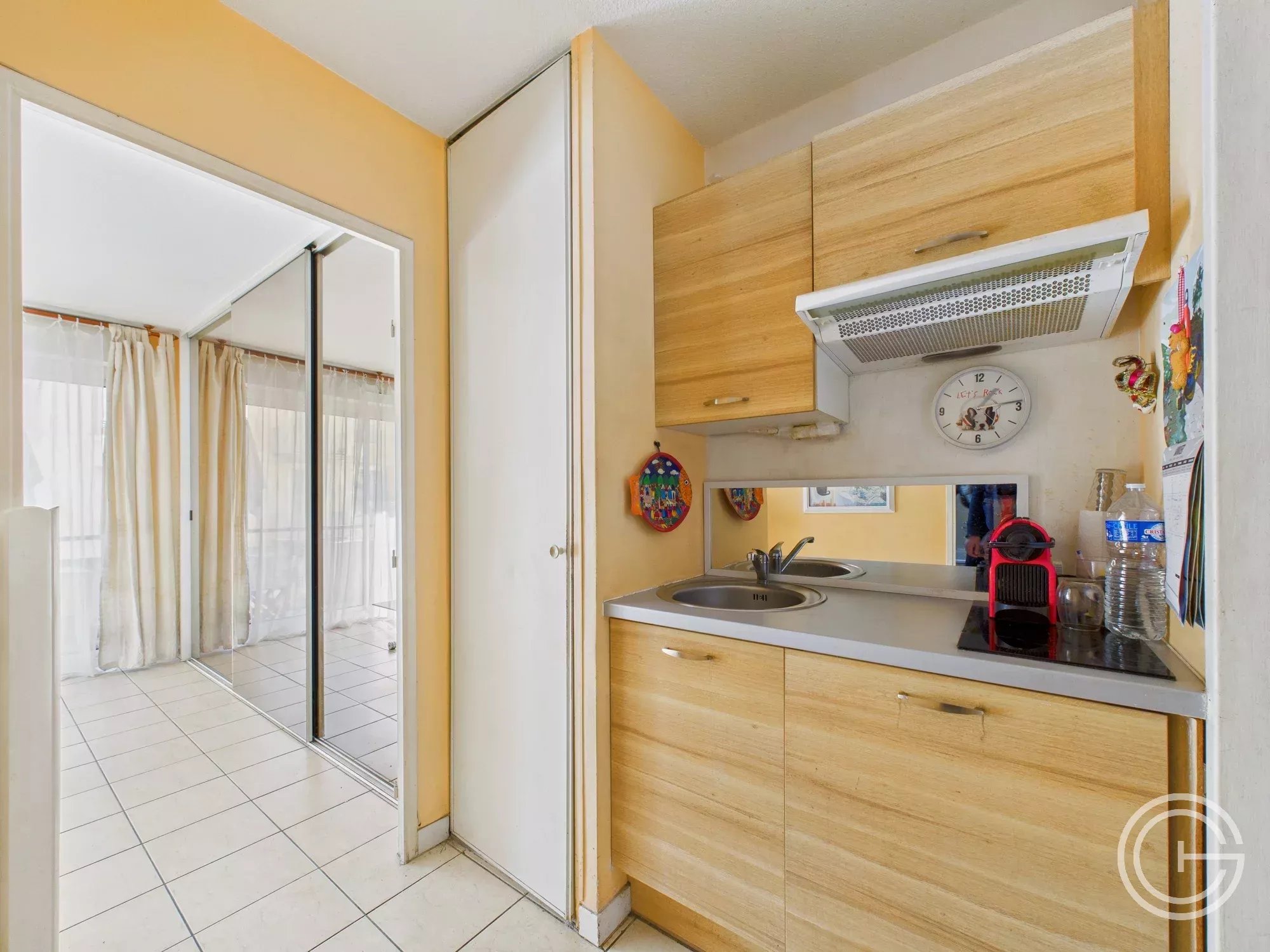 Appartement studio + terrasse - Rue Richelmi - NICE Riquier ImmoVendu vous propose en EXCLUSIVITÉ ce charmant studio de 24 m², idéalement situé à proximité de la gare et de toutes les commodités. Lumineux et bien agencé, il se compose d’une entrée avec cuisine ouverte, d’une salle de bains avec WC, d’un séjour avec dressings ouvrant sur une belle terrasse de 7,5 m² expo SUD. Consultez la visite virtuelle sur notre site ! Charges mensuelles : 49 € / mois comprenant eau froide - Entretien des parties communes. Taxe foncière : 469 € Nombre de lots : 71 DPE D LOCATION SAISONNIÈRE INTERDITE PAR LE RÈGLEMENT DE COPROPRIÉTÉ.