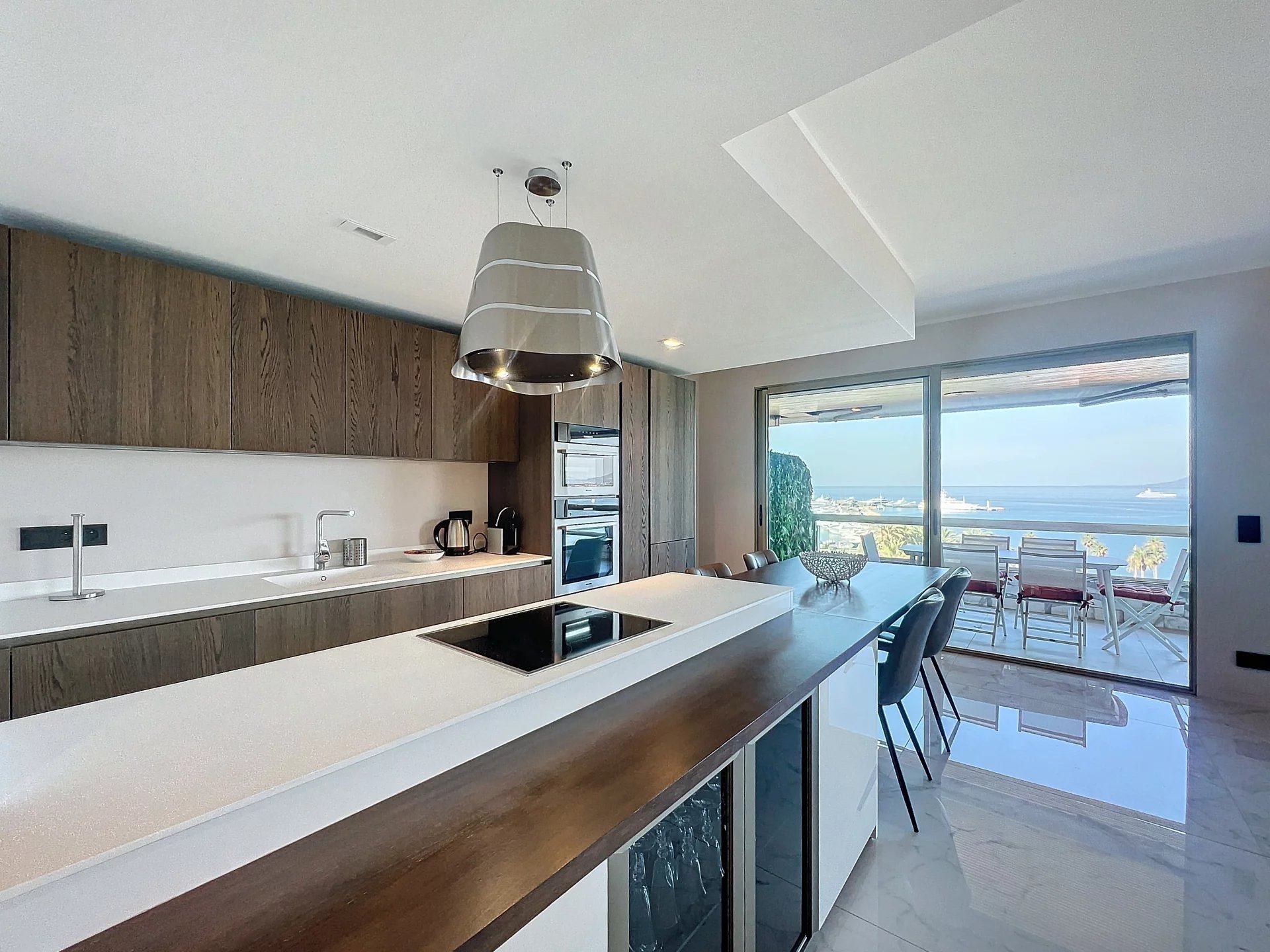 In un indirizzo prestigioso sulla Croisette, in una residenza di lusso perfettamente mantenuta, custodita e sorvegliata 24/24, scoprite questo superbo bilocale di 89 m² situato al 7ᵉ di 8 piani. Attraversato, esposto a sud e in ottime condizioni, l'appartamento beneficia di ampi spazi e di una notevole luminosità. L'ampia ed elegante sala di ricevimento si apre su una magnifica terrazza di 21 m² che offre una vista panoramica completa sul mare della baia di Cannes - un vero e proprio tableau vivant in ogni momento della giornata. La cucina a pianta aperta, completamente attrezzata, si fonde armoniosamente con lo spazio abitativo. Due camere da letto con bagno completano questa proprietà, ognuna con le sue caratteristiche meticolose e i suoi materiali di alta qualità. Una cantina completa questa rara proprietà in vendita. Le informazioni sui rischi a cui è esposta questa proprietà sono disponibili sul sito web di Géorisques http://georisques.gouv.fr.