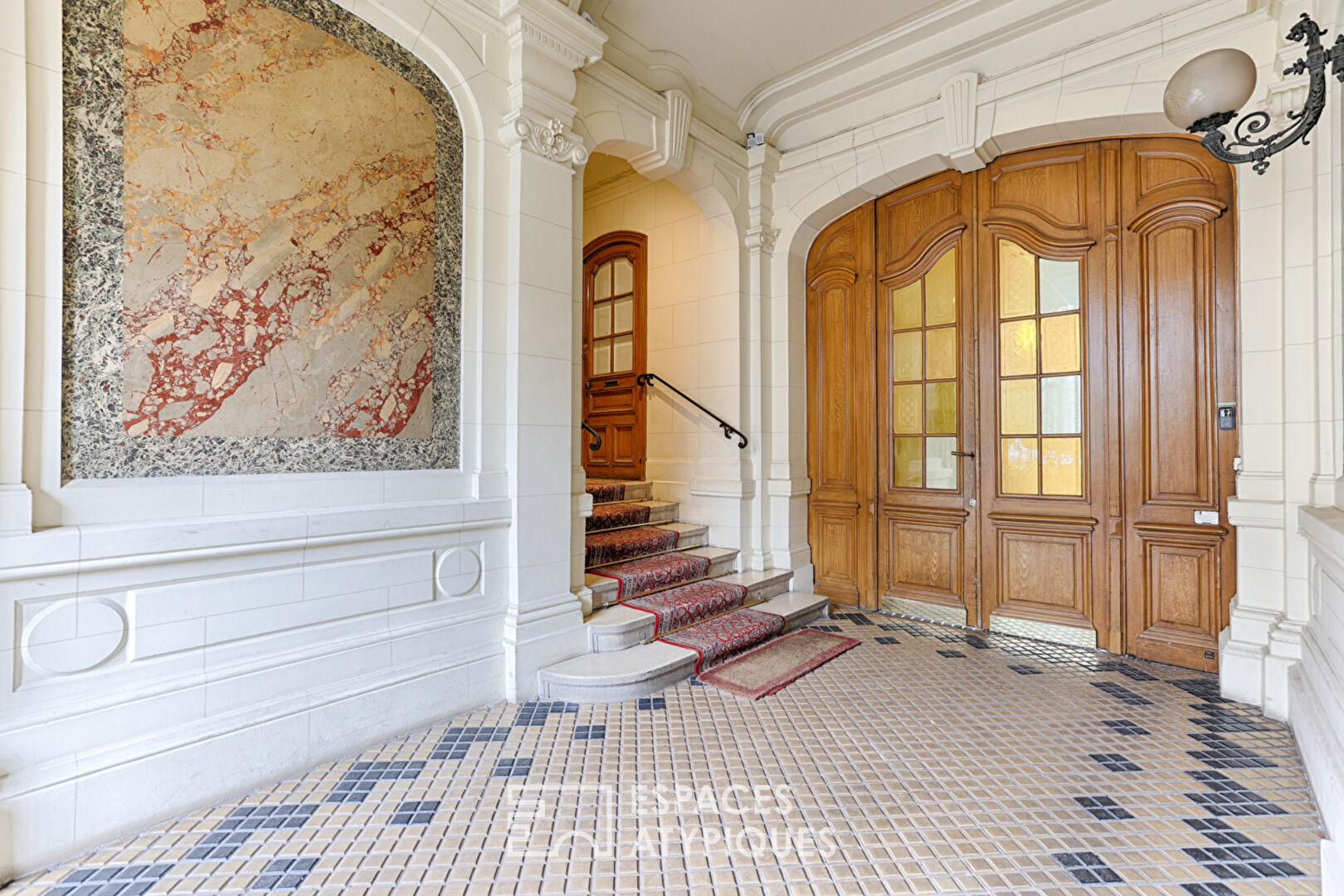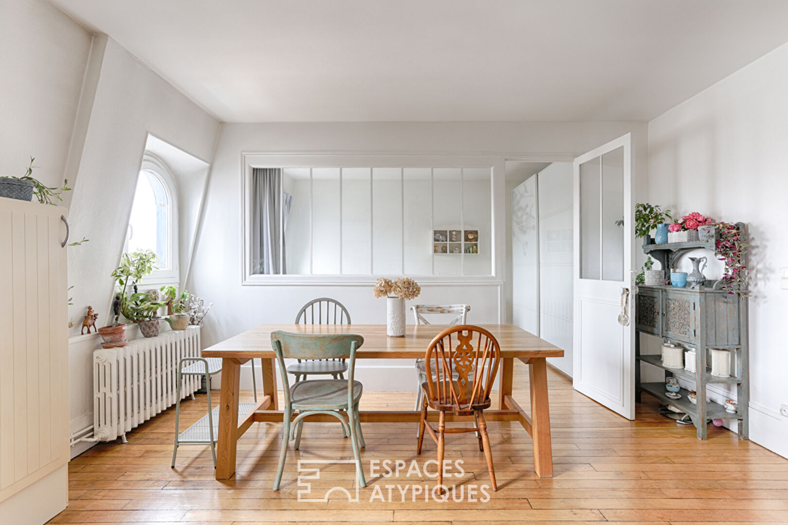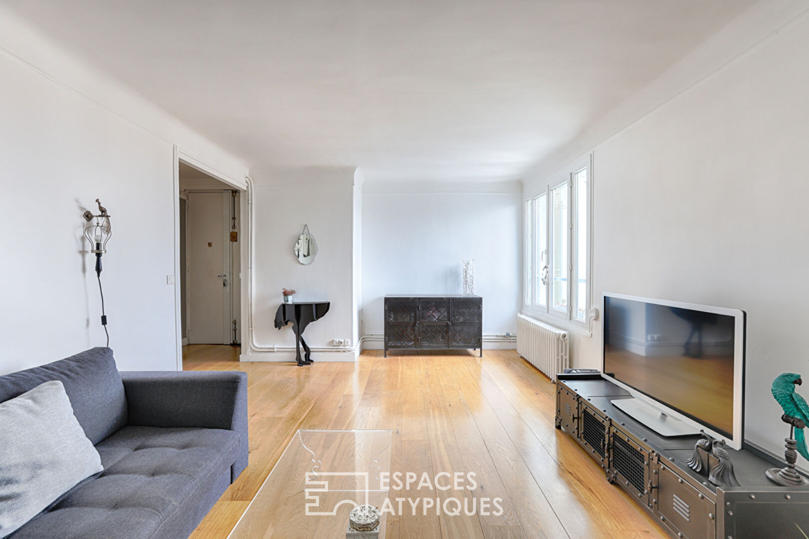 Au sommet du plus bel immeuble du Plateau de Saint-Maurice, édifié en 1896 par Georges Guyon, architecte majeur de la Belle Époque qui a façonné l'identité urbaine de la ville face au Bois de Vincennes, se déploie un appartement d'exception qui tient autant de l'écrin que de l'oeuvre. Une rareté où l'espace s'élève et se respire avec une évidence presque cinématique. A l'étage le plus haut, accessible par un ascenseur qui traverse des parties communes dignes d'un hôtel particulier, ce 64,27 m² Carrez (80 m² au sol) se révèle immédiatement traversant, offrant une vue panoramique inédite qui embrasse le vert profond du Bois de Vincennes, les volumes sculptés du Rocher, et l'horizon de Paris comme un paysage vivant. On entre dans une séquence d'espaces orchestrés avec précision: une entrée généreuse s'ouvre sur un couloir ponctué de rangements, une salle d'eau délicate, et une cuisine ouverte vaste et lumineuse, pensée comme un véritable lieu de partage. Non loin, la première chambre, aujourd'hui chambre d'enfant, capture la lumière d'un ciel changeant, une toile vivante. Puis le salon, véritable pièce maîtresse, s'étend face à cette vue imprenable, où chaque instant de la journée peint l'espace d'une lumière différente. Au bout de cet enchaînement, coiffée par le ciel, une chambre principale nichée sous les toits, dotée de rangements sur mesure réalisés par un menuisier d'exception, compose un refuge intime et parfaitement pensé. L'ensemble, parfaitement entretenu, ne nécessite aucun travaux et se vit comme un manifeste de l'élégance tranquille : une architecture qui dialogue avec la lumière, une orientation qui capte l'air et l'horizon, une sensation d'être suspendu au-dessus de la ville tout en restant ancré dans le quartier vivant et raffiné de Saint-Maurice Plateau. Une cave accompagne naturellement ce bien, un local vélo simplifie le quotidien, et au coeur de l'immeuble, un jardin intérieur offre une respiration inattendue. Un lieu discret où, parfois, se célèbrent des anniversaires entre les fleurs et les éclats de rire. A quelques pas, les commerces, le marché, le métro et les promenades dans le bois confèrent à cette adresse une respiration rare : la vitalité d'une commune prisée, à deux foulées de Paris, où le quotidien se mêle à la sérénité des espaces verts et à la douceur d'un art de vivre incomparable. Métro Charenton École: 5 min à pied Commerces : 1 min à pied Écoles : 2 à 5 min à pied CLASSE ÉNERGIE : E CLASSE CLIMAT : E Prix moyen des énergies indexés sur les années 2021,2022,2023 : 1720 euros et 2370 euros. Les informations sur les risques auxquels ce bien est exposé sont disponibles sur le site Géorisques : https://www.georisques.gouv.fr Contact : Mélanie Famuliak 07 69 44 20 88 - EI - Agent Commercial - RSAC: 907 896 245 Bobigny Copropriété de 21 lots - dont 9 lots habitation. (Pas de procédure en cours). Charges annuelles : 1700 euros. Mélanie FAMULIAK (EI) Agent Commercial - Numéro RSAC : 907 896 245 - Bobigny.