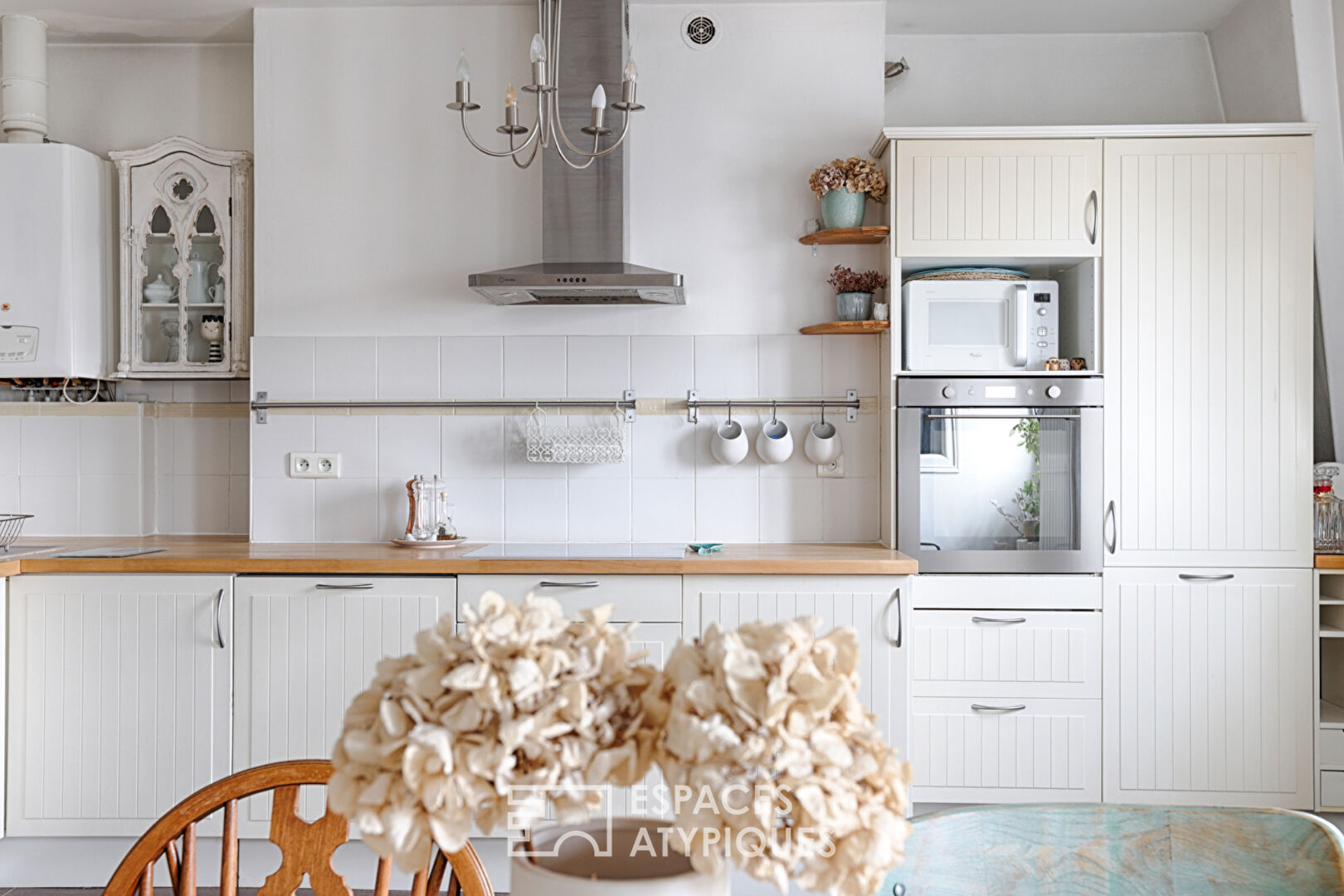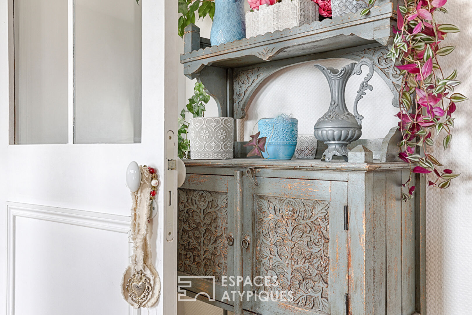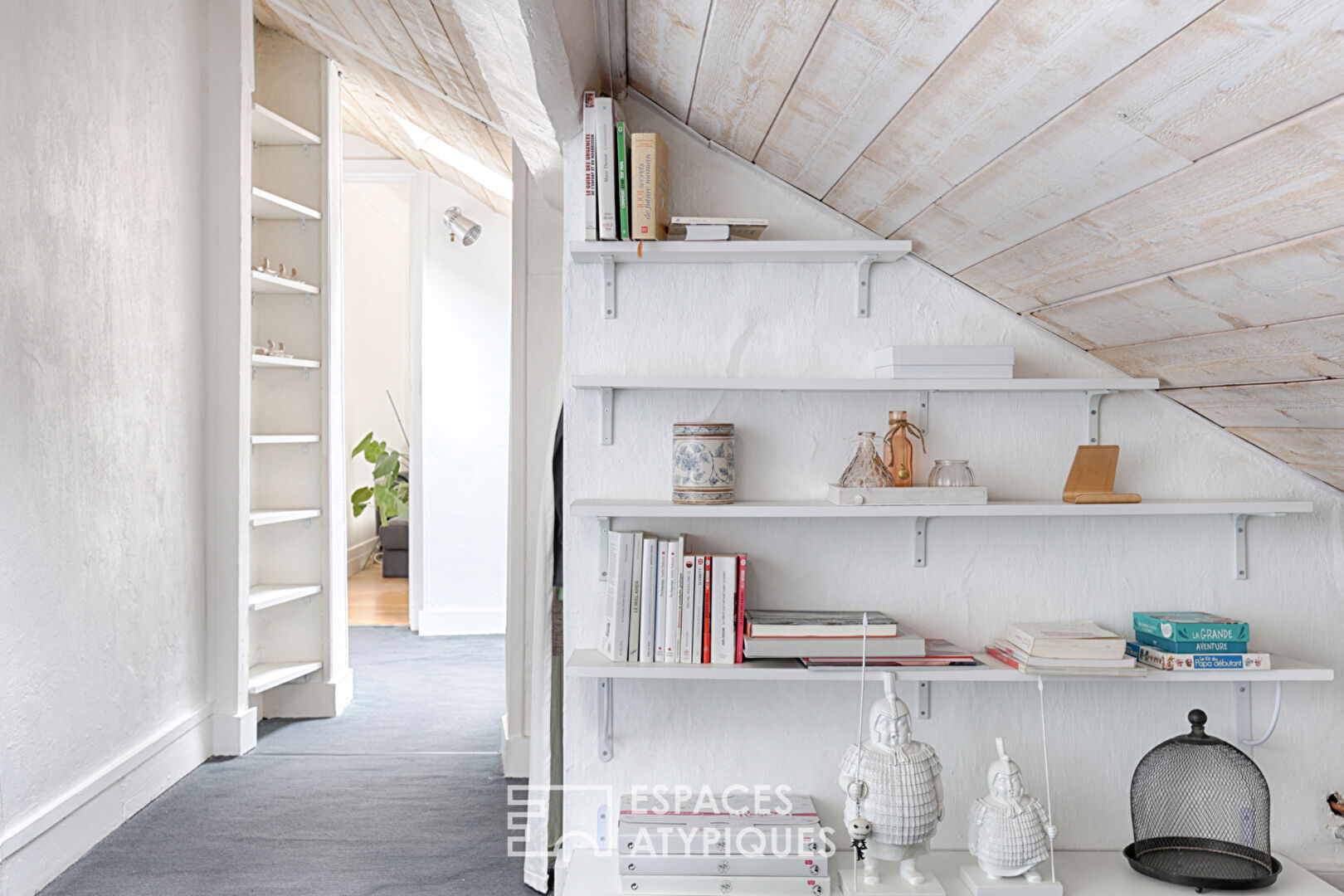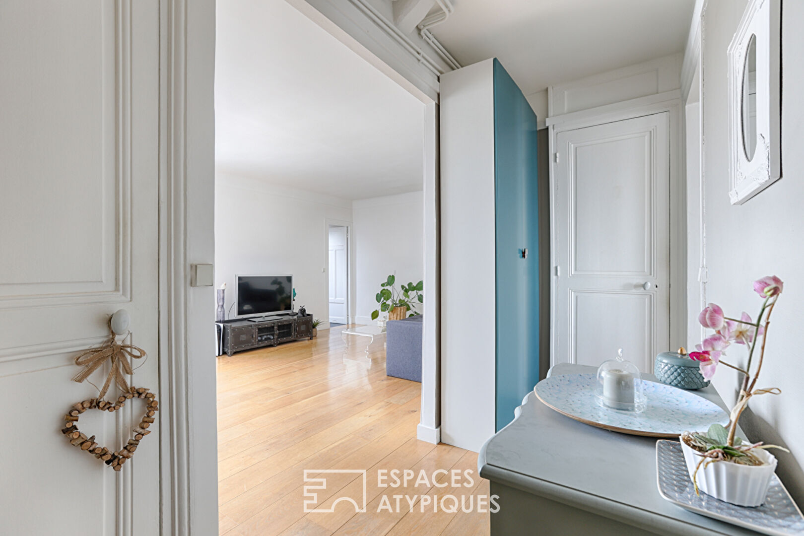 Au sommet du plus bel immeuble du Plateau de Saint-Maurice, édifié en 1896 par Georges Guyon, architecte majeur de la Belle Époque qui a façonné l'identité urbaine de la ville face au Bois de Vincennes, se déploie un appartement d'exception qui tient autant de l'écrin que de l'oeuvre. Une rareté où l'espace s'élève et se respire avec une évidence presque cinématique. A l'étage le plus haut, accessible par un ascenseur qui traverse des parties communes dignes d'un hôtel particulier, ce 64,27 m² Carrez (80 m² au sol) se révèle immédiatement traversant, offrant une vue panoramique inédite qui embrasse le vert profond du Bois de Vincennes, les volumes sculptés du Rocher, et l'horizon de Paris comme un paysage vivant. On entre dans une séquence d'espaces orchestrés avec précision: une entrée généreuse s'ouvre sur un couloir ponctué de rangements, une salle d'eau délicate, et une cuisine ouverte vaste et lumineuse, pensée comme un véritable lieu de partage. Non loin, la première chambre, aujourd'hui chambre d'enfant, capture la lumière d'un ciel changeant, une toile vivante. Puis le salon, véritable pièce maîtresse, s'étend face à cette vue imprenable, où chaque instant de la journée peint l'espace d'une lumière différente. Au bout de cet enchaînement, coiffée par le ciel, une chambre principale nichée sous les toits, dotée de rangements sur mesure réalisés par un menuisier d'exception, compose un refuge intime et parfaitement pensé. L'ensemble, parfaitement entretenu, ne nécessite aucun travaux et se vit comme un manifeste de l'élégance tranquille : une architecture qui dialogue avec la lumière, une orientation qui capte l'air et l'horizon, une sensation d'être suspendu au-dessus de la ville tout en restant ancré dans le quartier vivant et raffiné de Saint-Maurice Plateau. Une cave accompagne naturellement ce bien, un local vélo simplifie le quotidien, et au coeur de l'immeuble, un jardin intérieur offre une respiration inattendue. Un lieu discret où, parfois, se célèbrent des anniversaires entre les fleurs et les éclats de rire. A quelques pas, les commerces, le marché, le métro et les promenades dans le bois confèrent à cette adresse une respiration rare : la vitalité d'une commune prisée, à deux foulées de Paris, où le quotidien se mêle à la sérénité des espaces verts et à la douceur d'un art de vivre incomparable. Métro Charenton École: 5 min à pied Commerces : 1 min à pied Écoles : 2 à 5 min à pied CLASSE ÉNERGIE : E CLASSE CLIMAT : E Prix moyen des énergies indexés sur les années 2021,2022,2023 : 1720 euros et 2370 euros. Les informations sur les risques auxquels ce bien est exposé sont disponibles sur le site Géorisques : https://www.georisques.gouv.fr Contact : Mélanie Famuliak 07 69 44 20 88 - EI - Agent Commercial - RSAC: 907 896 245 Bobigny Copropriété de 21 lots - dont 9 lots habitation. (Pas de procédure en cours). Charges annuelles : 1700 euros. Mélanie FAMULIAK (EI) Agent Commercial - Numéro RSAC : 907 896 245 - Bobigny.