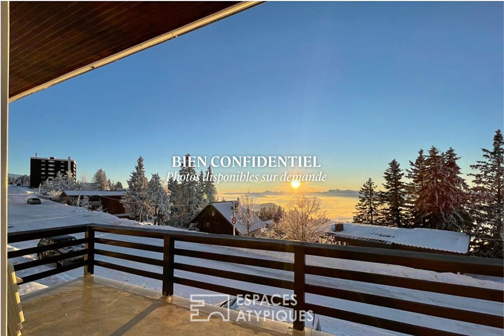 Perché sur le balcon de Chamrousse 1750, à seulement 30 kilomètres de Grenoble, ce chalet mitoyen de 83 m² se dévoile comme un véritable refuge pour amoureux de la montagne. Situé à 150 mètres des pistes et des commerces, il allie l'accessibilité immédiate au calme des sommets. L'entrée donne le ton avec une véranda faisant office de sas, invitant à laisser le monde extérieur derrière soi. Elle dessert l'espace nuit en rez-de-jardin, pensé pour l'hospitalité : deux chambres optimisées type "dortoir" pour la famille ou les amis, et une troisième chambre double plus intime. Une salle d'eau contemporaine rénovée, accompagnée d'une buanderie et de WC indépendants, complète ce niveau fonctionnel. L'ascension vers l'étage révèle le coeur du chalet. Sous une belle hauteur sous plafond, la pièce de vie s'impose comme un tableau vivant tourné vers le massif du Vercors. La cuisine ouverte, moderne et très bien équipée, dialogue avec un séjour réchauffé par un poêle à bois, promesse de soirées d'hiver conviviales. Un singulier « nid d'aigle » surélevé offre un coin lecture ou un couchage d'appoint, véritable cachette pour contempler la neige tomber. Mais le spectacle se joue aussi à l'extérieur : la terrasse exposée plein Ouest devient, dès les beaux jours, une pièce à part entière pour des couchers de soleil inoubliables. Côté technique, le bien bénéficie d'un atout rare en station : un garage fermé et une partie atelier avec accès direct aux niveaux supérieurs. L'isolation par l'extérieur garantit une performance énergétique intéressante pour l'altitude. Si l'ensemble est en excellent état, un rafraîchissement des menuiseries de la véranda permettra de parfaire ce bien au fort caractère. Atout supplémentaire pour une installation immédiate, le bien est vendu meublé. Entre rentabilité locative avérée et résidence secondaire coup de coeur, ce chalet skis aux pieds offre une rare opportunité de vivre la montagne autrement été comme hiver. Taxe foncière : 2448 euros CLASSE ENERGIE : E / CLASSE CLIMAT : E Montant moyen estimé des dépenses annuelles d'énergie pour un usage standard, établi à partir des prix de l'énergie des années 2021, 2022, 2023 : entre 2 530 euros et 3 480 euros. Les informations sur les risques auxquels ce bien est exposé sont disponibles sur le site Géorisques : www.georisques.gouv.fr Contact : Edwige de Préval (EI) - 06 87 61 23 35 Agent commercial indépendant RSAC Grenoble n° 815 164 280 Edwige de PREVAL (EI) Agent Commercial - Numéro RSAC : 815164280 - GRENOBLE.