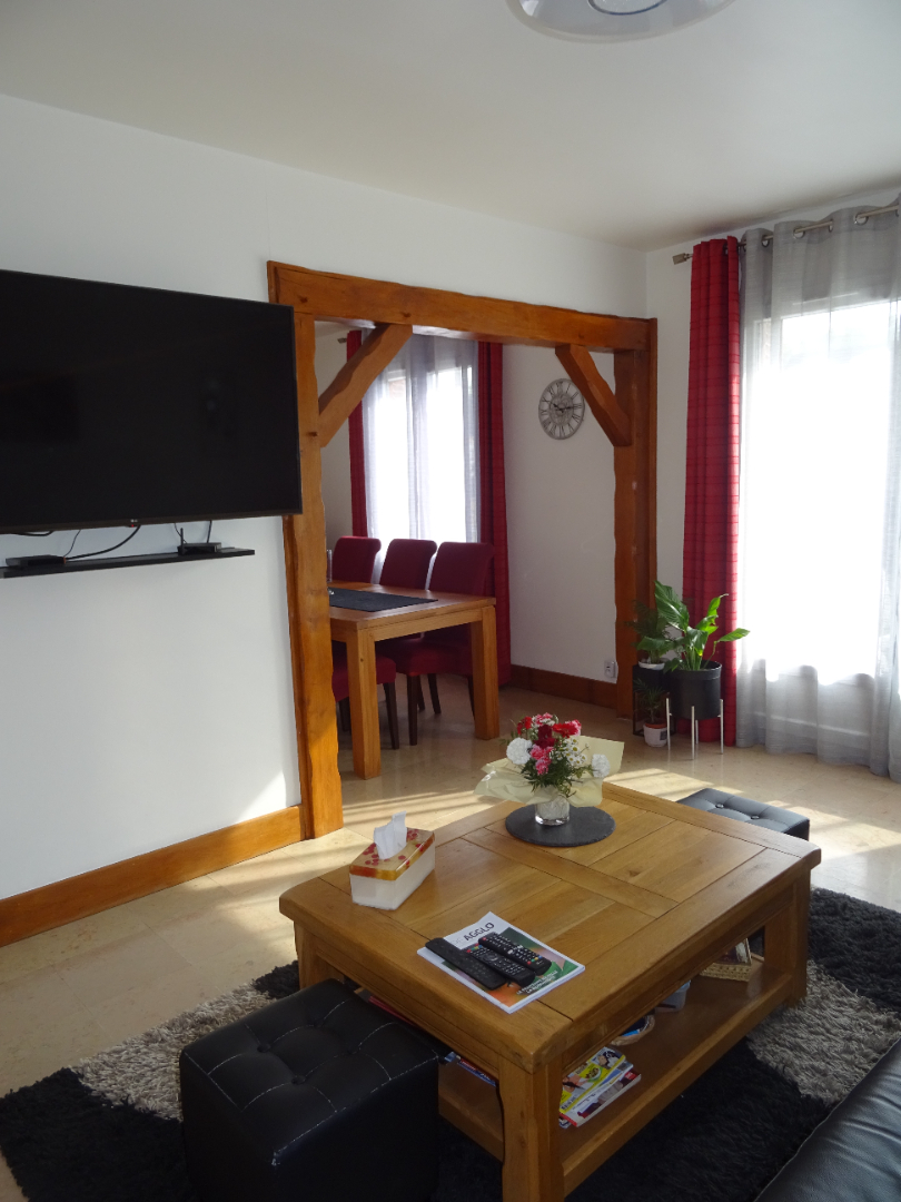 L'agence ABS IMMO vous propose cette maison sur sous sol total et comprenant : entrée, cuisine équipée, séjour salle à manager, dégagement desservant salle d'eau, 3 chambres dont une au sous sol, toilettes. Garage en sous-sol. Terrain de 1009 m². Proche commerces.