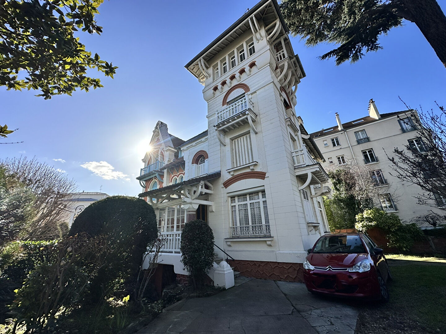 Idéalement située à Enghien Les Bains, en plein coeur de ville, à moins de 5 minutes à pied du lac, des écoles, de la gare et de la rue principale, Maison d'architecte du début 19ième offrant de beaux volumes, beaucoup de cachet et un gros potentiel. Une fois passée l'entrée avec ses carreaux de ciments d'époque, un double séjour vous accueille ainsi qu'une cuisine qu'il sera possible d'ouvrir sur le séjour. Au premier étage, vous trouverez deux grandes chambres, une salle de bains et des WC. Au deuxième niveau se trouvent deux belles chambres supplémentaires, un bureau et une salle d'eau avec des WC. Au dernier étage, dans le pigeonnier baigné de lumière, une belle pièce supplémentaire pourra faire office de bureau ou de chambre. La maison dispose également d'un sous-sol total aménageable, d'un jardin et vous pourrez garer plusieurs véhicules sur le terrain. L'ensemble de la maison, qui propose dans la plupart des pièces de doubles expositions, est baigné de lumière et offre tout le cachet de l'ancien ( parquet, moulures, cheminée). Des travaux sont à prévoir. N'hésitez pas à nous contacter pour de plus amples informations. (3.41 % honoraires TTC à la charge de l'acquéreur.)