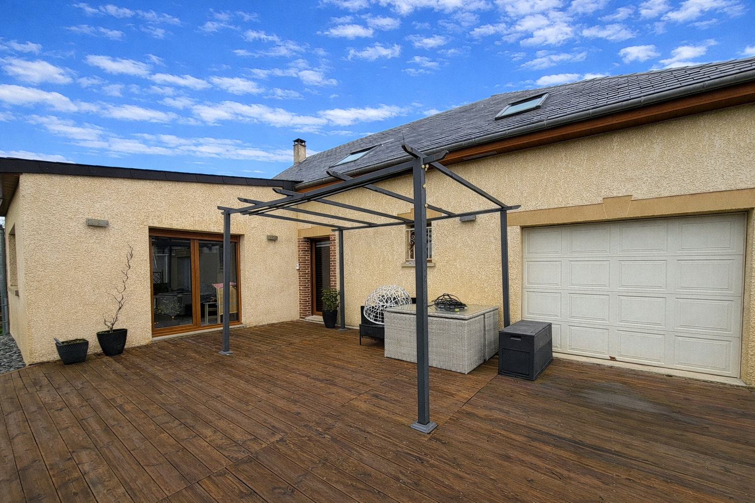 A seulement quelques kilomètres de Charleville-Mézières, ce pavillon individuel offre un cadre de vie confortable, dans un environnement calme et à proximité de toutes les commodités.. Dès l'entrée, laissez-vous séduire par une belle pièce de vie, agrémentée d'un poêle à bois, parfaite pour des moments conviviaux en famille. Elle s'ouvre sur une cuisine aménagée et équipée avec espace repas, créant un ensemble fonctionnel. Dans son prolongement, la salle à manger complète cet espace de réception. Les pièces de vie profitent d'un accès direct à une terrasse en bois exposée plein sud, offrant une agréable continuité entre intérieur et extérieur. Une arrière-cuisine/buanderie apporte un vrai confort au quotidien et permet un accès direct au garage. Le rez-de-chaussée propose également une chambre, une salle d'eau et des toilettes indépendantes, assurant un confort de vie de plain-pied particulièrement recherché. A l'étage, un vaste palier, aujourd'hui aménagé en salle de jeux et pouvant aisément devenir un bureau, dessert une suite parentale avec dressing, deux chambres supplémentaires ainsi qu'une salle de bains avec toilettes. Implantée sur un terrain entièrement clos, la maison dispose d'un jardin agréable, exposé plein sud, d'un abri en bois et d'une cour goudronnée à l'avant de la maison avec portail motorisé, permettant le stationnement de plusieurs véhicules. Pour toute information complémentaire ou pour organiser une visite, contactez Laurine PUZZUOLI au 06.38.66.16.68