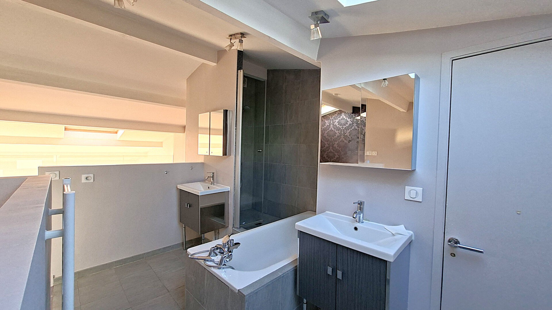 PUTEAUX La Défense, proche rond point des Bergères et transports. Dans un immeuble de standing. 4 pièces en duplex au 7EME ET DERNIER ETAGE avec ascenseur, traversant, avec une TERRASSE DE 18M² avec une vue dégagée sur le Mont -Valérien. Au premier niveau, Il dispose d'un grand séjour, une cuisine ouverte, 2 chambres avec balcons communiquant (vue sur la défense), une salle de bains et un wc séparé. A l'étage, une suite parentale en mezzanine avec une salle de bain (baignoire et douche) et un wc séparé. NOMBREUX RANGEMENTS. L'appartement est loué avec un DOUBLE BOX en sous-sol. Disponible immédiatement. DG: 2580 euros Honoraires quote part locataire : 1407.60 euros (12 euros le m² HB+3 euros frais EDL).