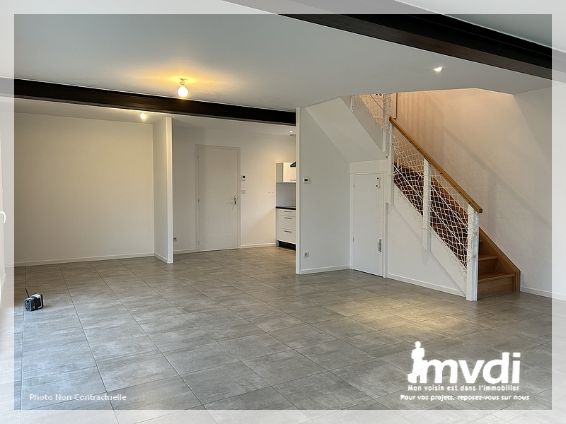 - PROXIMITE ZONE COMMERCIALE "ESPACE 23" et ECOLE - Idéalement situé dans un quartier résidentiel de SAINT GEREON, devenez locataire de cette maison de 2013, offrant au rez-de-chaussée, une belle pièce de vie lumineuse avec cuisine ouverte, WC séparés, une chambre parentale avec dressing et salle d'eau. A l'étage, vous disposerez d'un espace bureau en mezzanine, de 2 chambres et d'une salle de bains avec WC. Vous profiterez également d'un garage avec plateforme de stockage et d'un jardin avec terrasse. Disponible au 19 mai 2026. - LOCALISATION IDEALE - Les informations sur les risques auxquels ce bien est exposé sont disponibles sur le site Géorisques : www.georisques.gouv.fr