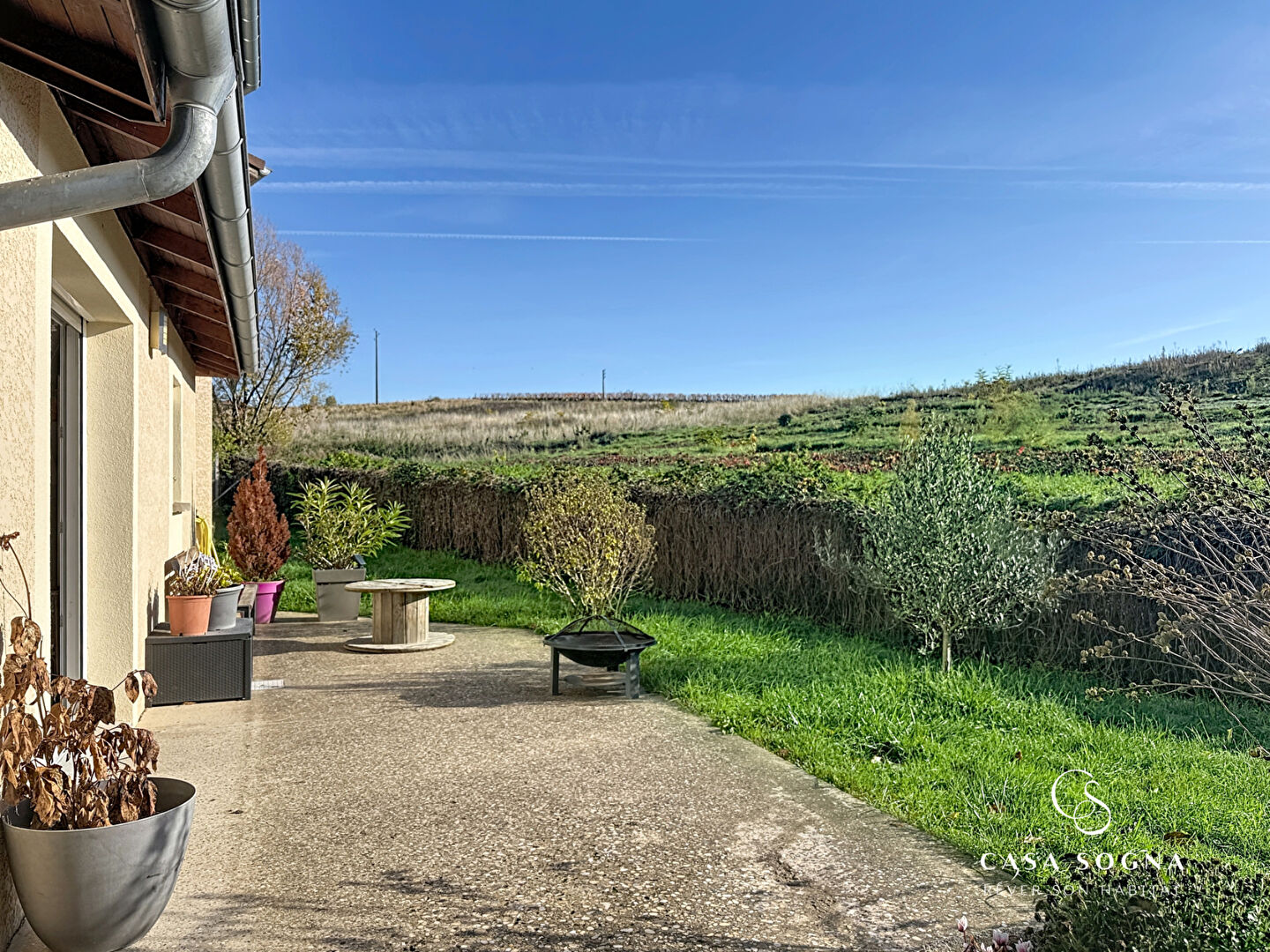 CASA SOGNA vous présente une belle maison individuelle de 2002, nichée au coeur du charmant village du Perréon, à 50 minutes de Lyon. Cette maison a tout pour séduire ! Édifiée sur un terrain clos et arboré de 1 134 m², avec une superficie habitable de presque 159 m², elle offre un cadre de vie paisible, lumineux et ouvert sur les collines du Beaujolais. Dès l'entrée, on découvre une vaste pièce de vie conviviale regroupant salon, séjour et salle à manger, baignée de lumière grâce à ses larges ouvertures sur le jardin. La cuisine, entièrement équipée et ouverte sur la pièce principale, invite à partager de vrais moments en famille. Une cheminée récente apporte une touche chaleureuse aux soirées d'hiver. Le rez-de-chaussée comprend également une belle suite parentale avec rangements intégrés et salle d'eau privative avec douche à l'italienne, ainsi que des toilettes séparées. A l'étage, un palier distribue trois chambres confortables et une salle de bain spacieuse avec douche et baignoire. Mais la vraie surprise se trouve dans l'extension récente : la toiture a été rehaussée et les combles entièrement aménagés, offrant un nouvel espace moderne et lumineux. On y découvre deux chambres supplémentaires, un dressing fermé, une salle d'eau contemporaine, des toilettes séparées et une grande pièce polyvalente qui peut devenir salle de jeu, coin télé ou bureau selon les besoins. A l'extérieur, le charme opère immédiatement : deux terrasses (l'une couverte, l'autre ouverte) permettent de profiter du soleil à toute heure de la journée. Le jardin, joliment arboré, offre un bel espace de détente avec une vue dégagée sur les vignobles environnants. Une partie du terrain accueille un poulailler, un abri de jardin et un espace potager, parfaits pour ceux qui aiment le grand air. La cour à l'avant permet de stationner jusqu'à cinq véhicules, en plus d'un garage attenant. Récente, entretenue et agrandie avec goût, cette maison combine confort, espace et authenticité, au coeur d'un environnement verdoyant et calme, tout en restant proche des commodités et des grands axes. Un bien rare dans le secteur, idéal pour une famille qui rêve de s'installer dans un cadre paisible sans renoncer à la proximité de Lyon. Visite virtuelle sur demande! DPE: C / GES: B Prix moyens des énergies indexés sur les années 2021, 2022, 2023 (abonnements compris): entre 2070 euros et 2810 euros. Les informations relatives aux risques auxquels ce bien est exposé sont disponibles sur le site www.georisques.gouv.fr. Prix: 439 000 euros Honoraires Agence inclus à la charge du vendeur. Pour toute information complémentaire ou pour organiser une visite, contactez Ghislaine Labalme au 06 88 67 11 15 Agent commercial immatriculé RCS: 935 167 445 www.casa-sogna.immo 16 Rue Alexandre Bérard, 01500 Ambérieu-en-Bugey