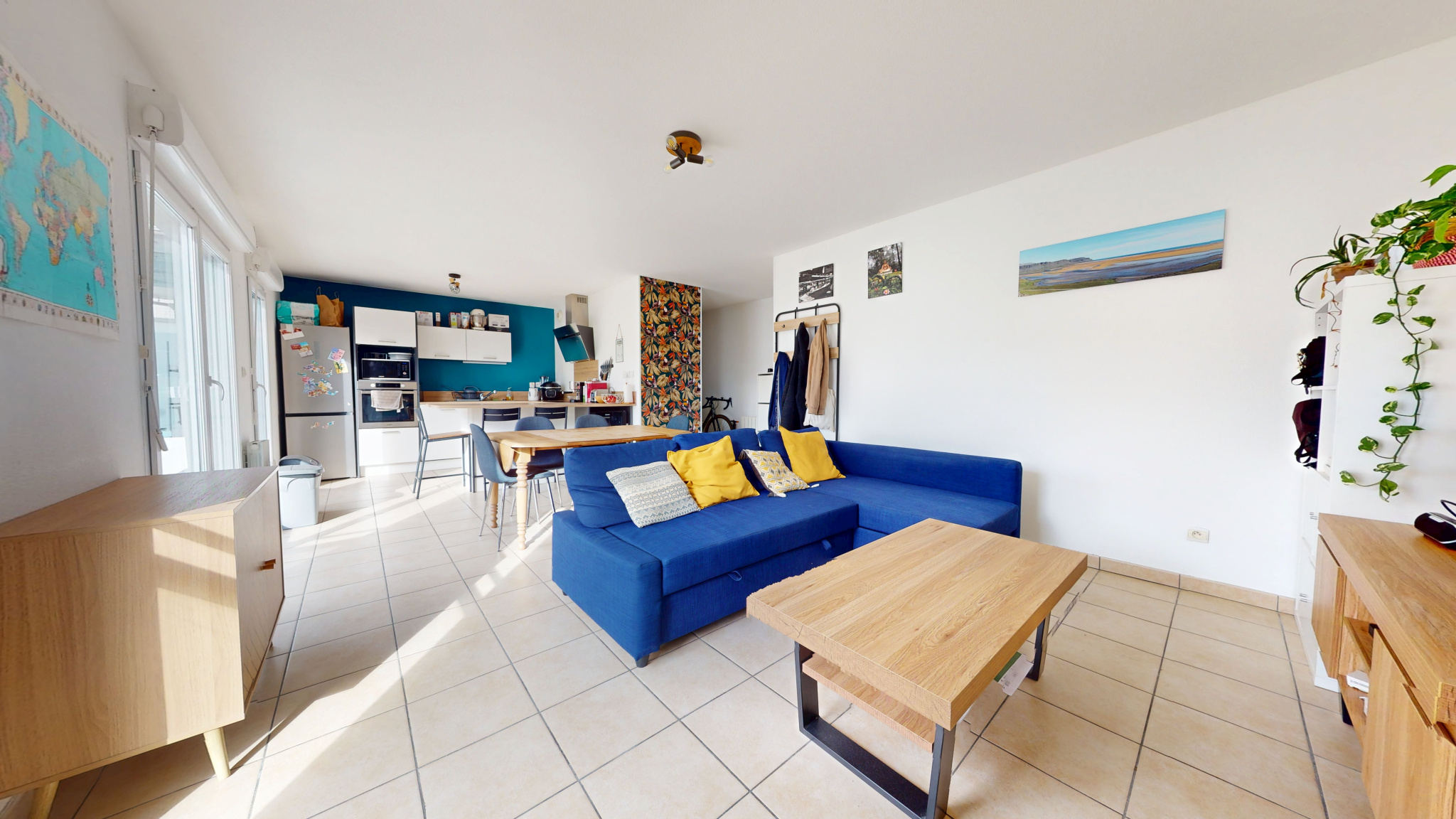 L'entrée avec placard distribue intelligemment les volumes en séparant les espaces jour et nuit. La pièce de vie, généreuse et conviviale, développe plus de 30 m2 avec sa cuisine ouverte et s'ouvre sur un confortable balcon de 9 m2 exposé plein Ouest, idéal pour profiter des beaux jours. L'espace nuit comprend deux chambres avec rangements intégrés, une salle de bain fonctionnelle ainsi qu'un WC indépendant.