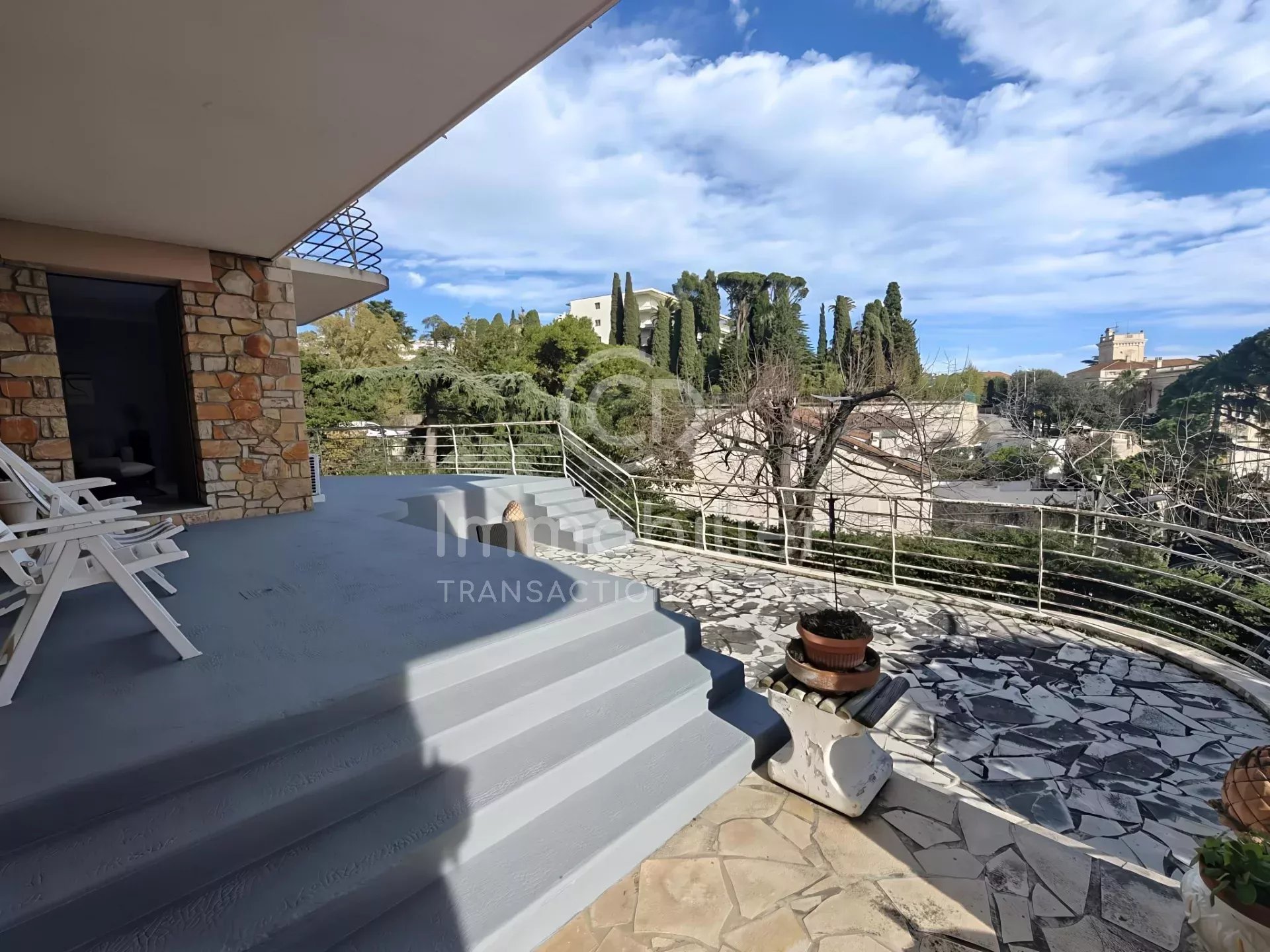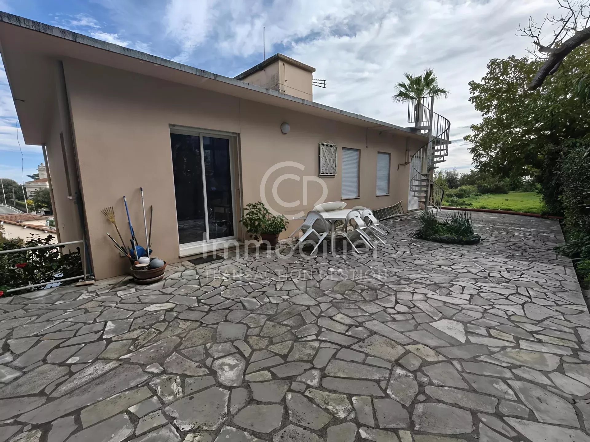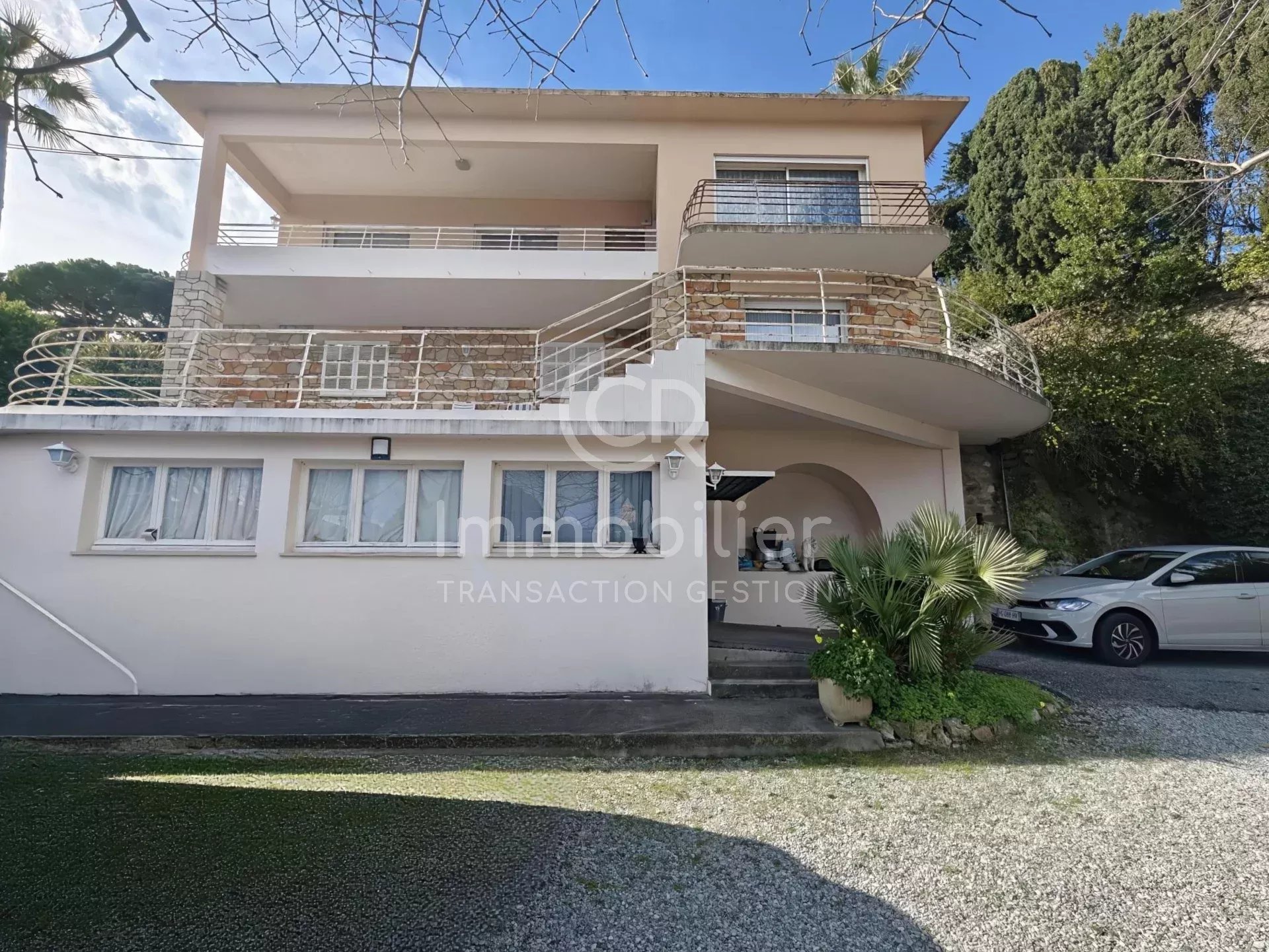 CANNES - CROIX DES GARDES - Nous vous proposons à la vente sur une parcelle de 1 505 m² arborée, une maison pleine de charme et d'authenticité d'environ 150 m², exposé SUD/EST, idéale pour un projet de rénovation ambitieux. * Au rez-de-chaussée, se situe un garage de 22 m² avec un atelier d'environ 5 m². ** Au 1er étage , un appartement deux pièces de 44 m² climatisé qui se compose d'un séjour lumineux, une cuisine équipée séparée, une chambre avec placards, une salle d'eau et un wc séparé. Terrasse de 61 m². Une buanderie de 14 m² et un vide sanitaire de 50 m² se situe sur le même niveau. *** Au 2ème étage, un appartement quatre pièces de 105 m² qui se compose d'un salon/séjour lumineux, une grande cuisine séparée, trois chambres, une buanderie, une salle de bain, un wc séparé. Terrasse de 36 m². Vue mer depuis cet étage. Vous disposez également d'une grande terrasse supplémentaire côté cuisine Exposé Ouest par laquelle vous pouvez accéder au toit de la maison par un escalier en colimaçon pour bénéficier d'une vue mer extraordinaire ! La création d'un solarium sur le toit est envisageable. Possibilité de stationner plusieurs véhicules au sein de la propriété.