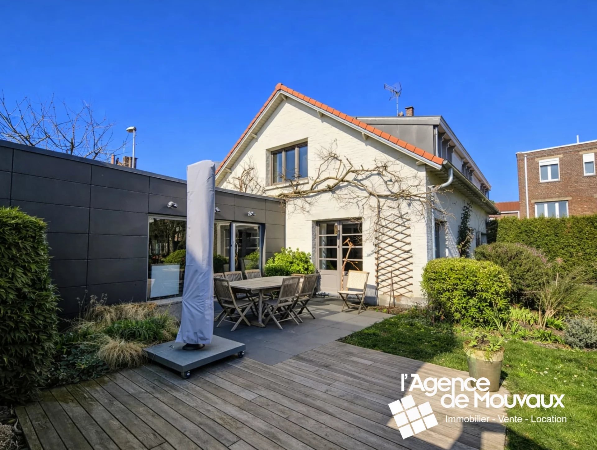 Aux portes de Mouvaux, en retrait de la rue, découvrez cette magnifique maison individuelle de style longère, bâtie sur une parcelle de plus de 600 m² et entièrement rénovée, alliant charme et caractère.