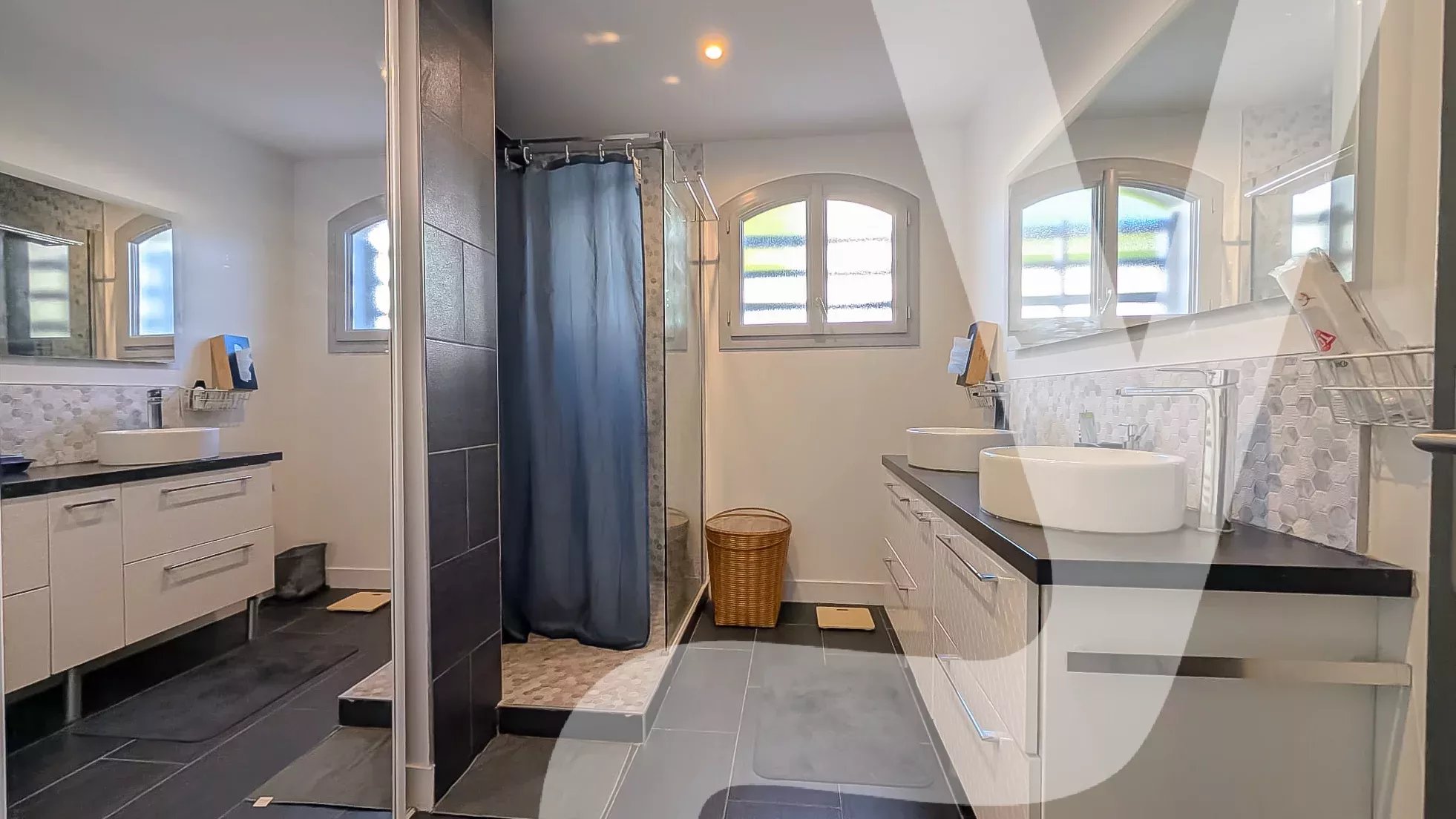 À deux pas du centre-ville et de son marché, découvrez ce spacieux appartement en rez de chaussée T3 de 101 m², situé au calme, au sein d’une petite copropriété récente et intimiste (4 lots tous rénovés en 2019.) 🌿 Un vrai atout rare en centre-ville : un jardin privatif de 180 m², avec terrasse en bois, idéal pour profiter des beaux jours. 🏡 L’appartement Entièrement rénové en 2019, ce bien séduit par ses volumes généreux, sa luminosité et ses prestations actuelles : Entrée élégante avec verrières. Très vaste séjour/cuisine ouverte, cuisine équipée avec îlot central 2 chambres (11,54 m² et 14,71 m²) ouvertes sur le jardin, dont une avec grand placard Grande salle d’eau avec double vasque et rangements Dressing indépendant WC suspendu Buanderie Cellier côté cuisine Cet appartement de 2019 fait partie d’une petite copropriété de 4 lots avec un syndic bénévole Charges très faibles : syndic bénévole env: 200€/an et assurance pour 218€/an). Copropriété de 4 lots tous rénovés en 2019 Pas de procédure en cours 🚗 Stationnement: 2 places de stationnement numérotées en extérieur et privatives. 🔧 Prestations & confort Chauffage électrique individuel Plaque à induction Parquet Fenêtres PVC double vitrage Éclairage par spots VMC 📍 Emplacement recherché : commerces, centre-ville, plages, pistes cyclables à proximité immédiate. 👉 Un bien rare alliant espace, calme et extérieur en plein cœur de La Teste. Honoraires charge vendeur Estimation des coûts annuels : entre 1 080 € et 1 480 € par an Prix moyens des énergies indexés sur les années 2021, 2022, 2023 Les informations sur les risques auxquels ce bien est exposé sont disponibles sur le site Géorisques : www.georisques.gouv.fr. Citylife Arcachon - Caisse de garantie Galian 120000 EUR - RCS 941806796 - CPI 33012025000000043 - RCP Galian