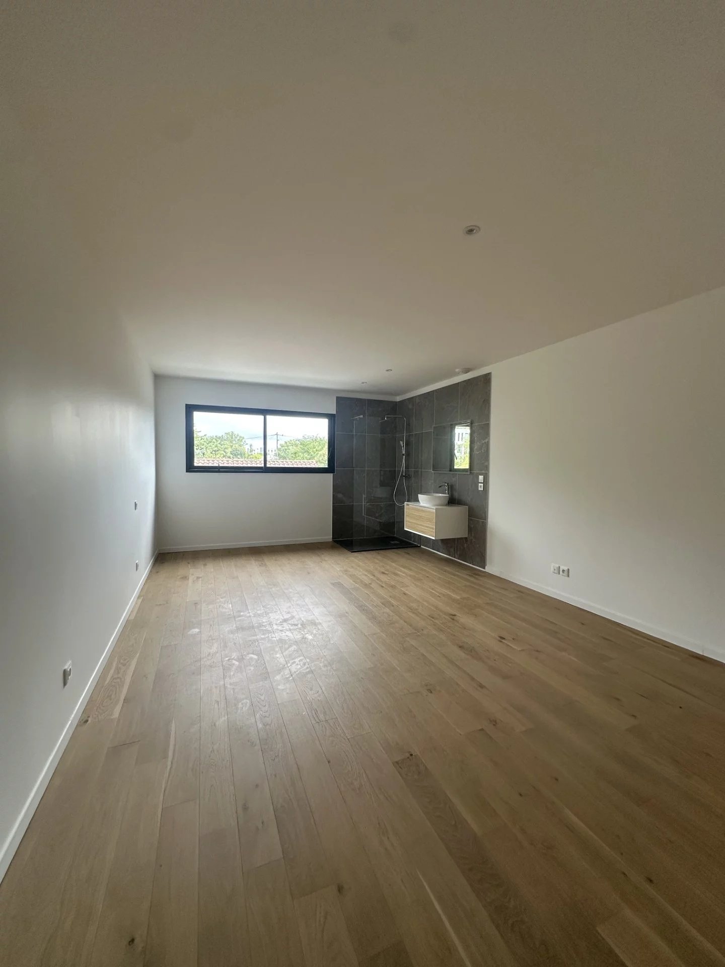 Idéalement situé en deuxième ligne, maison neuve R+1 comprenant une vaste pièce de vie lumineuse avec cuisine entièrement équipée, cellier, WC avec lave mains, et à l'étage une grande suite parentale, deux chambres avec rangement intégré, salle d'eau, WC séparé. Petite terrasse. Stationnement possible