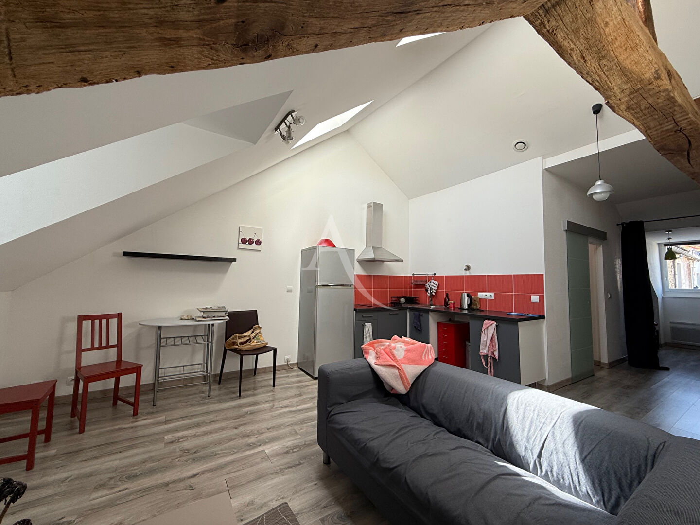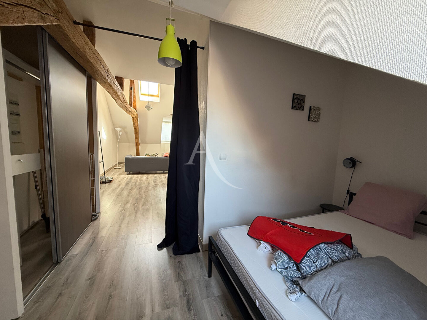 A LOUER - QUARTIER DES HALLES Au coeur du centre-ville, niché au dernier étage d'un immeuble ancien parfaitement entretenu, ce bel appartement type loft vous séduira par l'alliance du charme de l'ancien et une rénovation contemporaine de qualité. Il comprend un séjour lumineux avec une cuisine aménagée et équipée, une salle d'eau avec lave-linge fourni et un coin nuit cosy avec dressing. Eau froide incluse dans les charges. DPE : D - Libre au 19/03 Loyer initial : 600 euros/mois - Provision pour charges : 50 euros/ mois - Dépôt de garantie: 600 euros Honoraires de visite, de constitution de dossier et de rédaction de bail : 279 euros - Honoraires de réalisation état des lieux : 104 euros