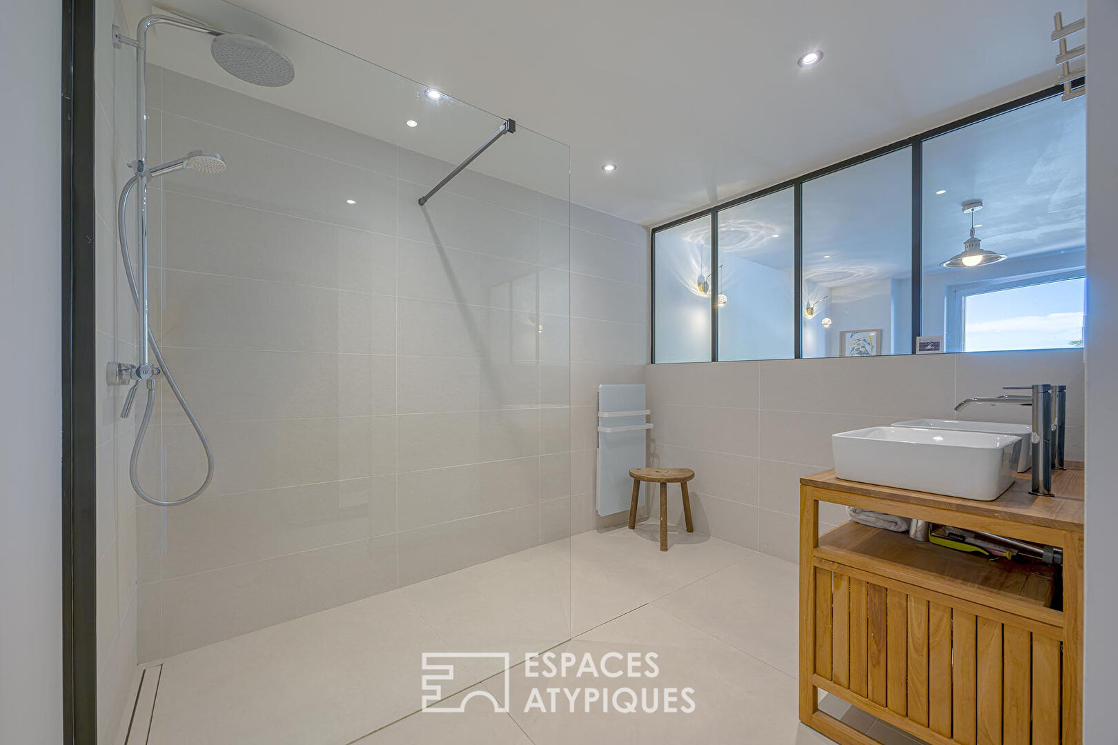 A seulement 10 minutes d'Annecy, au coeur du très recherché village de Veyrier-du-Lac, ce duplex de 112,8 m² Carrez environ, offre une vue dégagée sur le lac et sur Annecy. Exposé plein sud-ouest, il bénéficie d'une luminosité remarquable et de couchers de soleil spectaculaires. Entièrement rénové, l'appartement conjugue avec élégance authenticité et lignes contemporaines. La pièce de vie, aux volumes généreux, s'articule autour d'une cuisine ouverte moderne et fonctionnelle. Poutres apparentes et parquet en chevrons soulignent le cachet du lieu, tandis que le salon, baigné de lumière, s'organise autour d'un poêle à bois pour une atmosphère chaleureuse. L'espace nuit propose trois chambres, dont une suite parentale avec une salle d'eau privative. Une salle de bain indépendante et une buanderie complètent l'ensemble. Une mezzanine d'environ 20m² offre un espace modulable selon les besoins : une chambre d'amis ou d'adolescent, un salon TV ou une salle de jeux. A l'extérieur, un jardin intimiste d'environ 108 m² constitue un véritable prolongement de l'espace de vie : une terrasse en bois avec une cuisine d'été et un coin verdure pour les enfants ou les bains de soleil. L'environnement résidentiel et calme, à proximité immédiate des écoles, des commerces et des axes routiers vers Genève ou les stations de ski, garantit un confort de vie rare sur les rives du lac d'Annecy. Une place de stationnement extérieure et deux caves complètent ce bien soumis au statut de copropriété Cet appartement atypique, lumineux et accueillant, séduira les amoureux de design et d'architecture en quête d'un bien immobilier d'expression sur les rives du lac d'Annecy. Bien soumis au statut de la copropriété. CLASSE ENERGIE E/ CLASSE CLIMAT B Montant moyen estimé des dépenses annuelles d'énergie pour un usage standard, établi à partir des prix de l'énergie des années 2021, 2022, 2023 : entre 2540 euros et 3490 euros. Les informations sur les risques auxquels ce bien est exposé sont disponibles sur le site Géorisques pour les zones concernées : www.georisques.gouv.fr. Contact : Dominique 06.61.75.80.10 Copropriété de 8 lots - dont 4 lots habitation. (Pas de procédure en cours). Charges annuelles : 200 euros. Dominique MOINE (EI) Agent Commercial - Numéro RSAC : 512 486 259 - ANNECY.