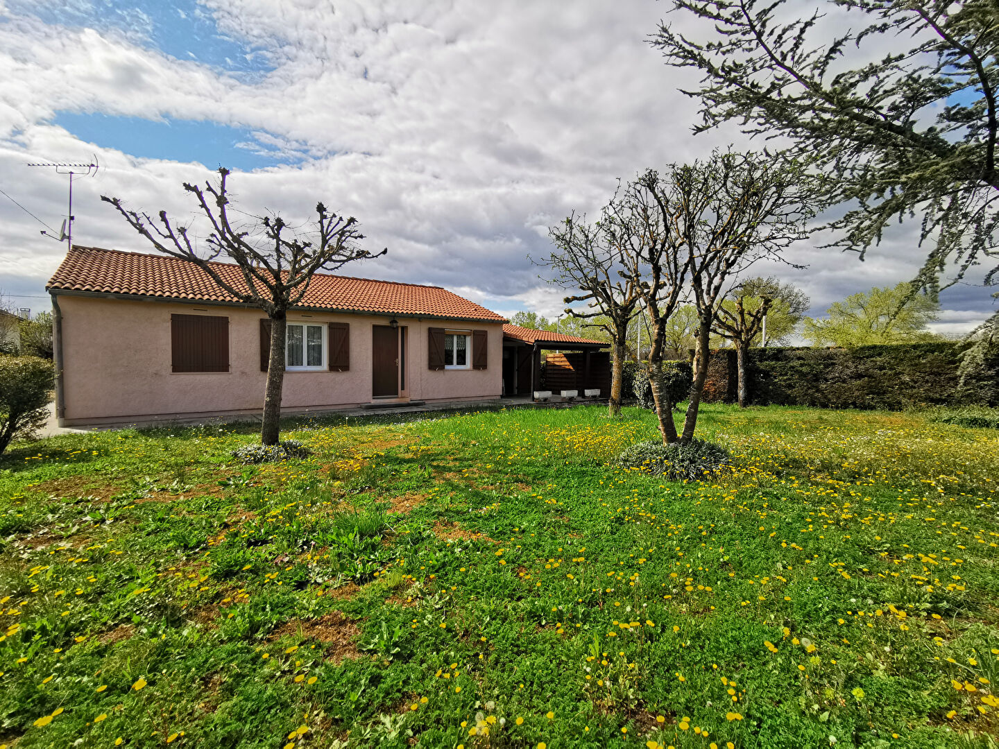 Maison de plain pied bien entretenue, composée d'une entrée, séjour ( clim réversible + cheminée ouverte), cuisine aménagée, cellier, trois chambres, salle de bain, wc. Un joli jardin arboré, un garage et un abri jardin. L'avantage d'avoir les commerces et services à pied. A 5 min de Caussade !