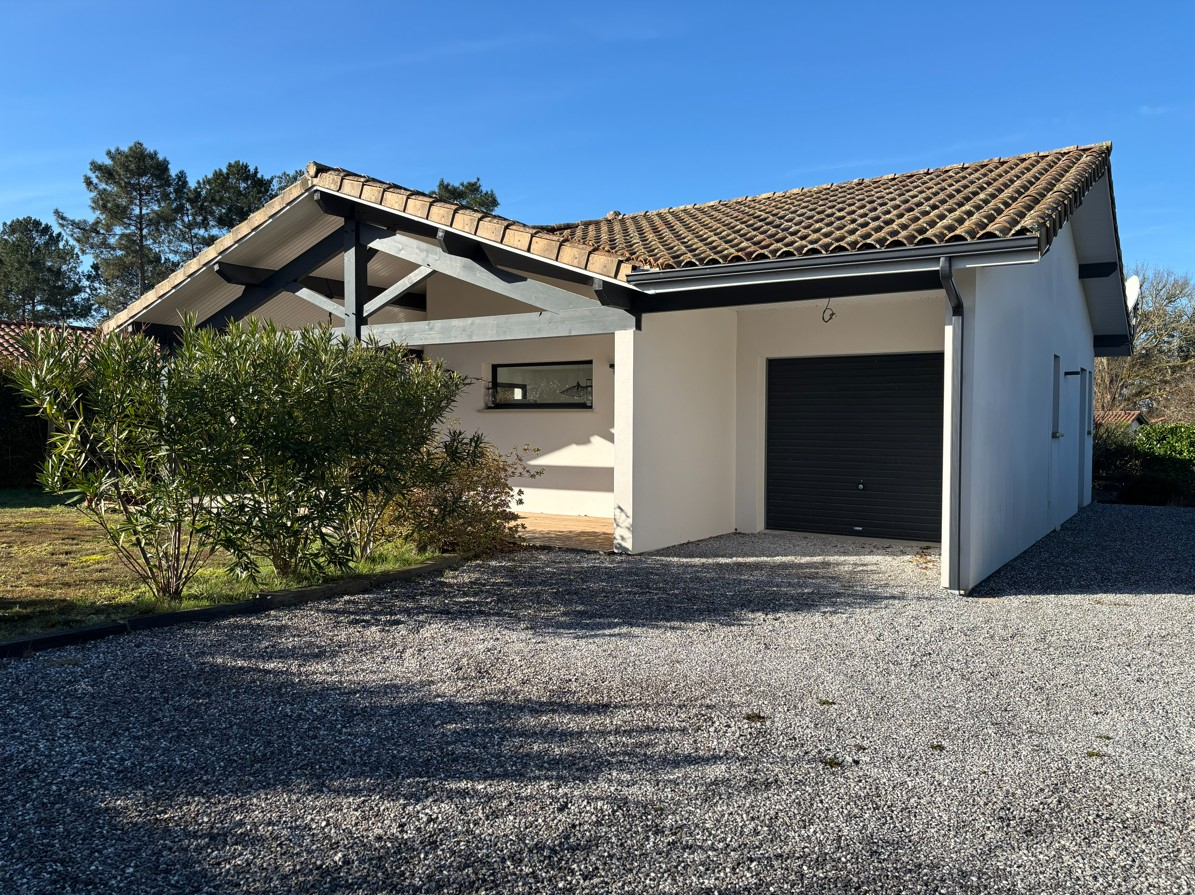 Située à moins de 5 min du lac et 10 min des plages océanes, maison de plus de 100m² de plain-pied présentant des prestations de qualité et profitant de multiples ouvertures. Elle est composée d'une entrée sur un vaste séjour avec accès extérieurs et cuisine ouverte intégralement équipée avec ilôt central, un cellier accessible depuis la cuisine et le garage, un couloir desservant trois chambres avec placards intégrés, une salle d'eau et des WC indépendants. A l'extérieur, vous bénéficiez d'une parcelle joliement arborée de plus de 700m² avec garage attenant à la maison ainsi qu'une grande terrasse couverte permettant de profiter pleinement des beaux jours. Cynthia BEZIERS (EI) Agent Commercial - Numéro RSAC : 898549001 - DAX.