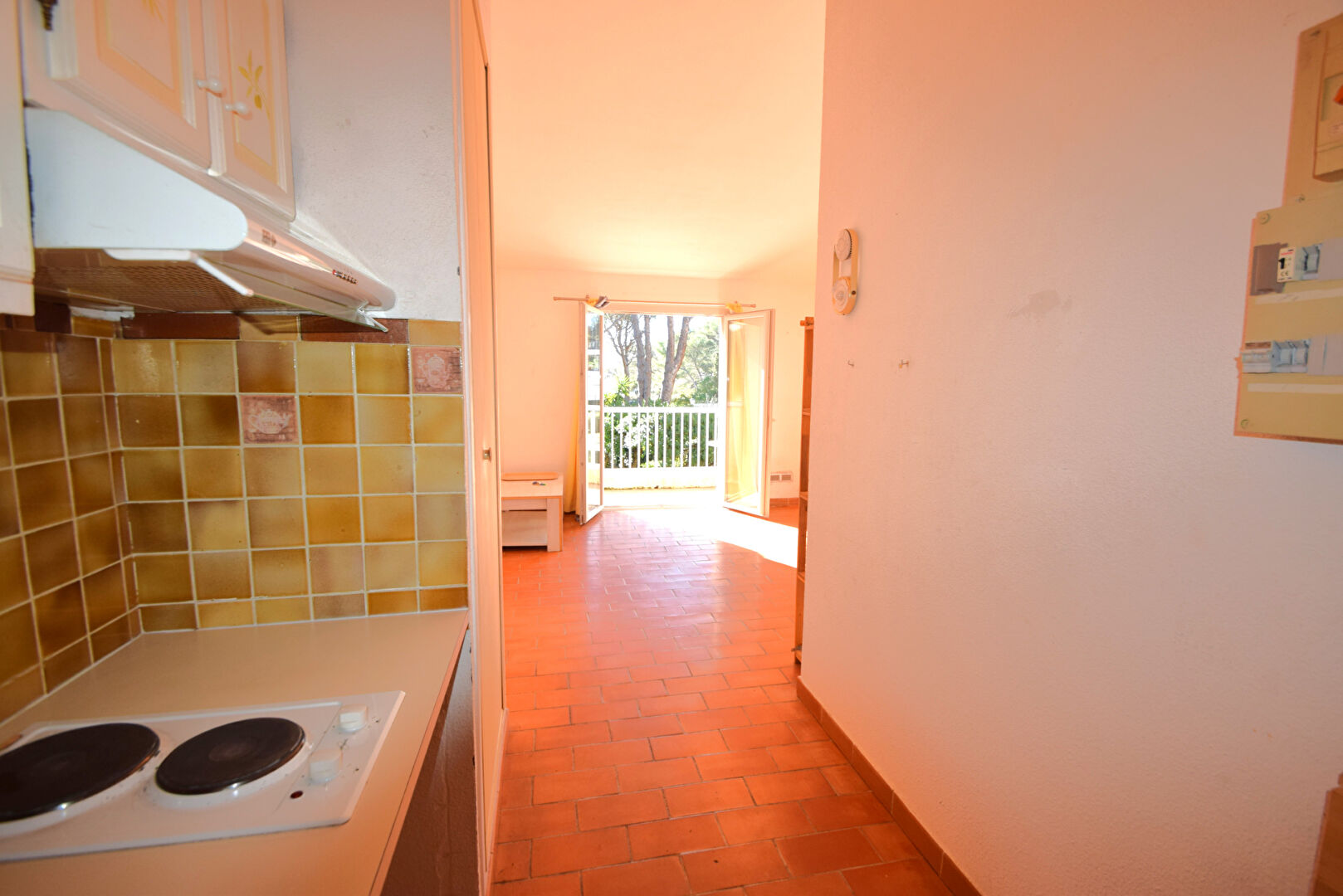 SAINT RAPHAEL, BOULOURIS. Situation exceptionnelle. Accés direct à la plage. Studio à rafraichir offrant une vue mer dans résidence sécurisée. Idéal Vacances ou investissement locatif. Il se compose d'une entrée, cuisine, salon sur terrasse sud avec vue verdure et mer, salle de bains, wc indépendant. Cave et Parking extérieur. Possibilité de garage en supplément Copropriété de 15 lots. Charges annuelles : 1400 euros.