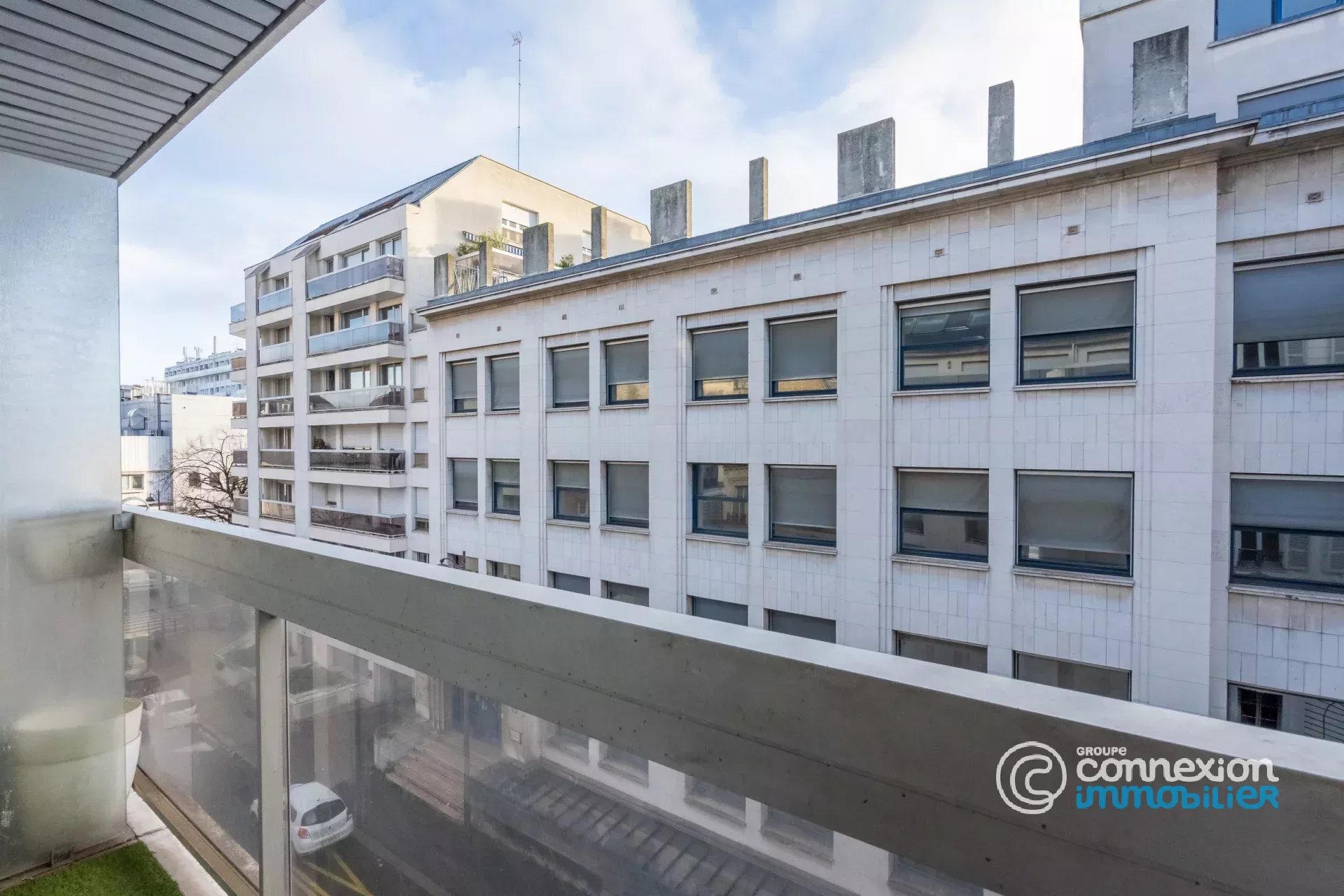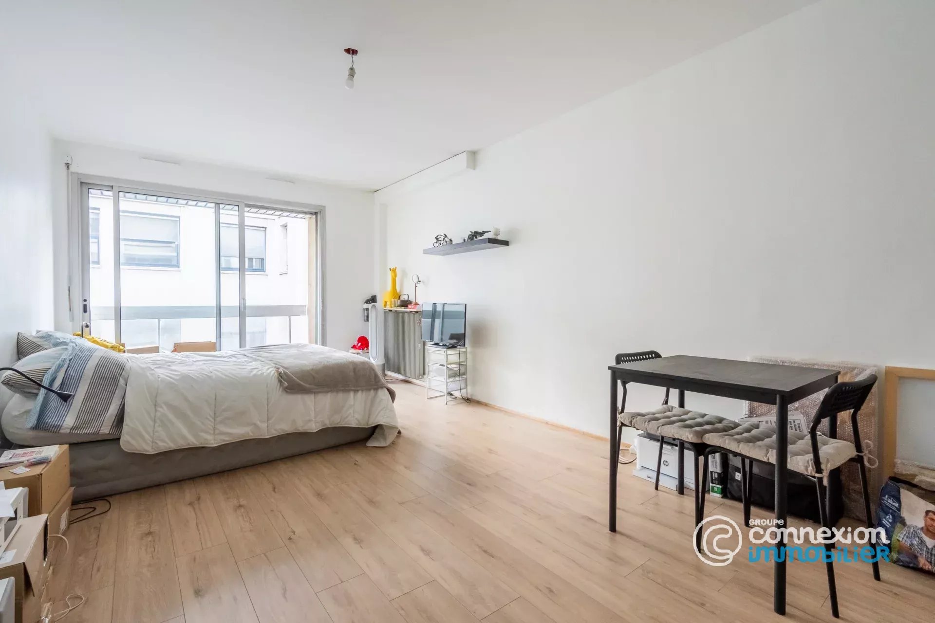 M° Bastille. Au 4ème étage AVEC ASCENSEUR d'un immeuble moderne, studio de 33,25m2 loi Carrez. Pièce de vie avec balcon sur rue exposé Est, cuisine américaine, salle de bain avec wc. Eau chaude et chauffage compris dans les charges. Excellente isolation avec un rare DPE noté C. Une cave saine vendue avec.