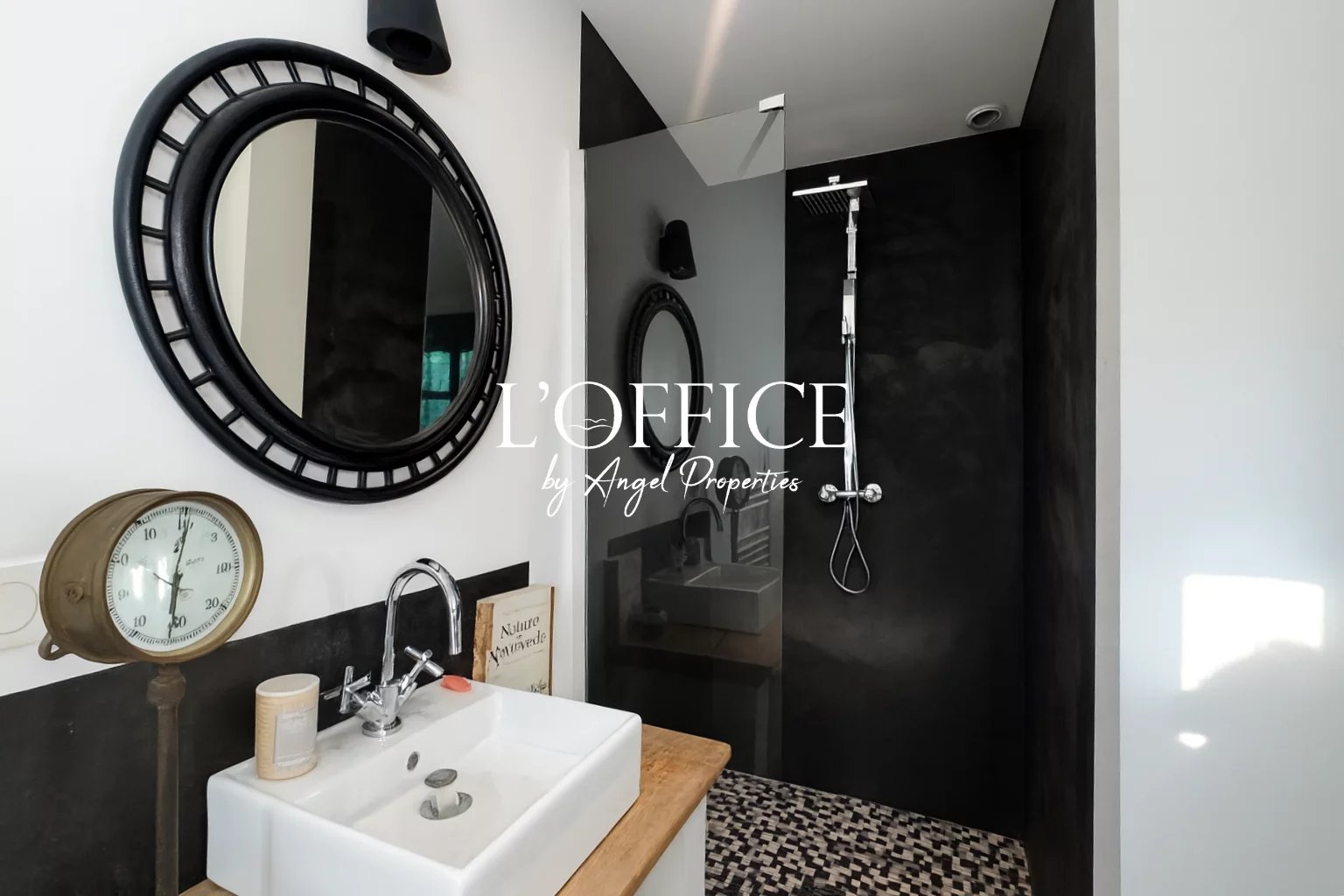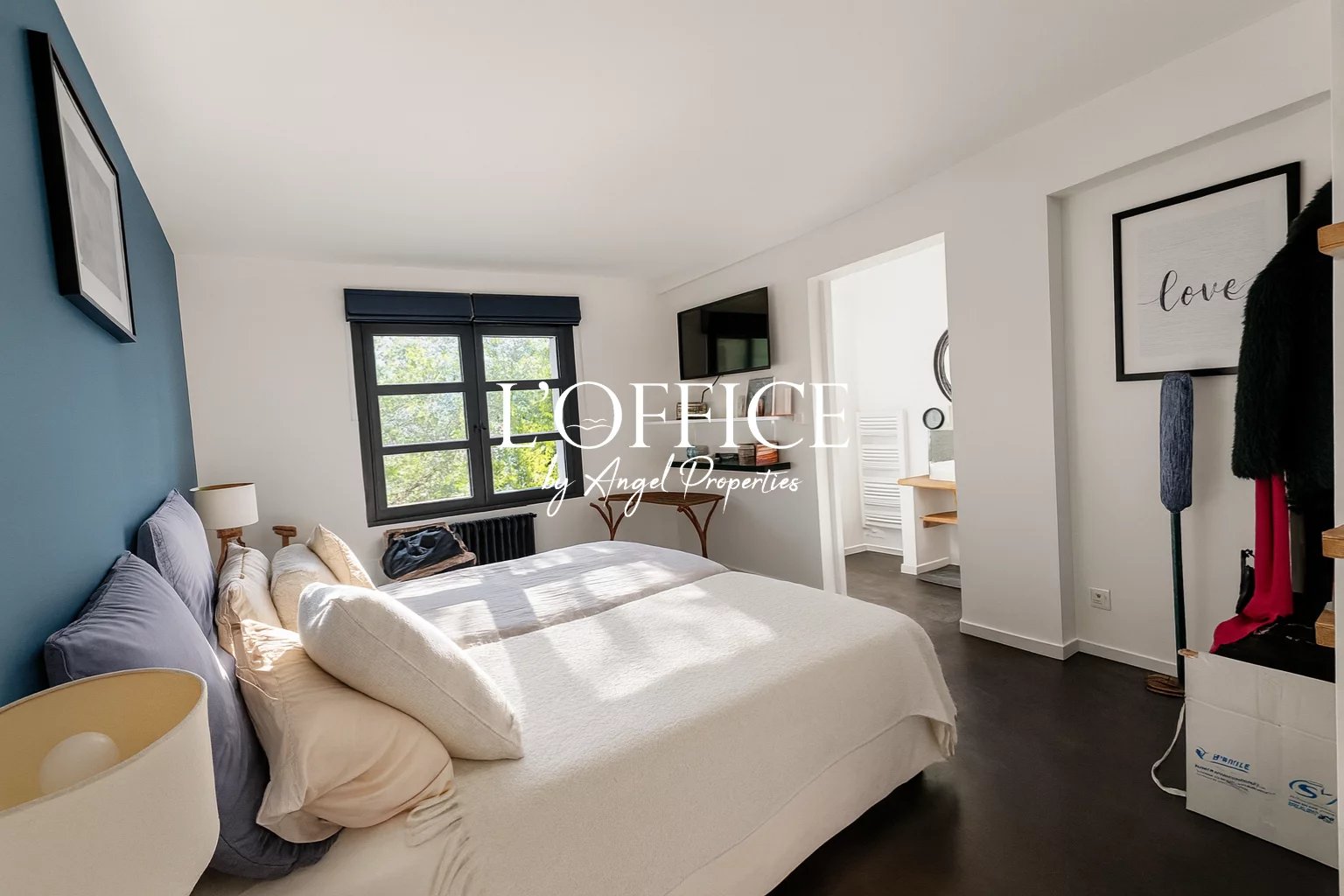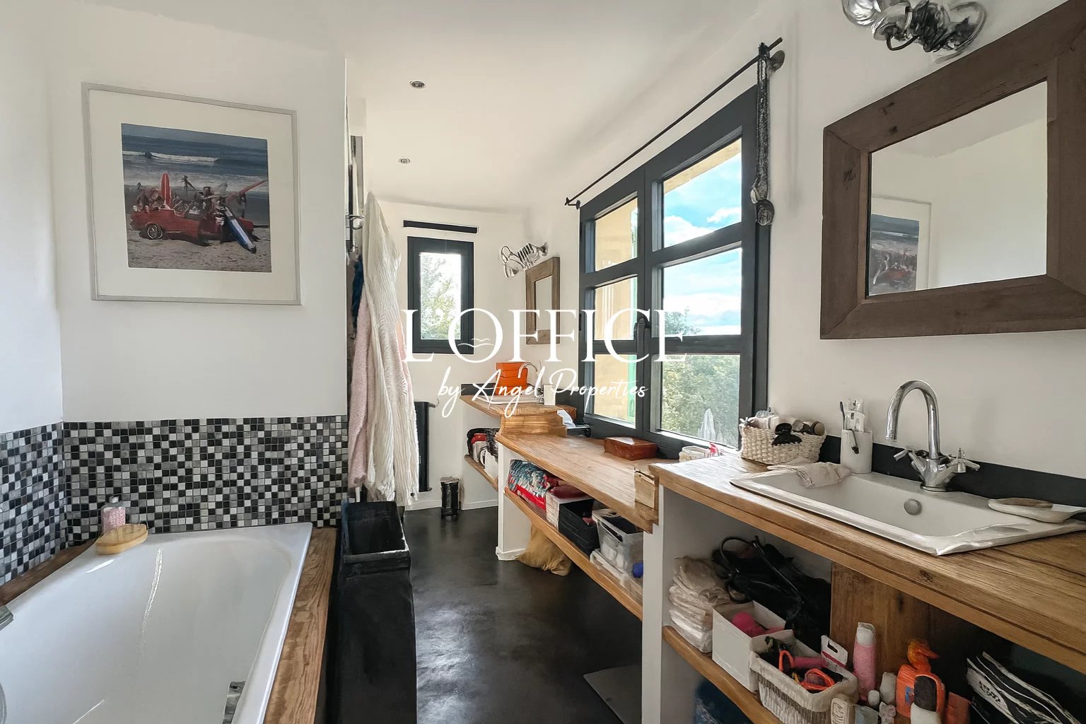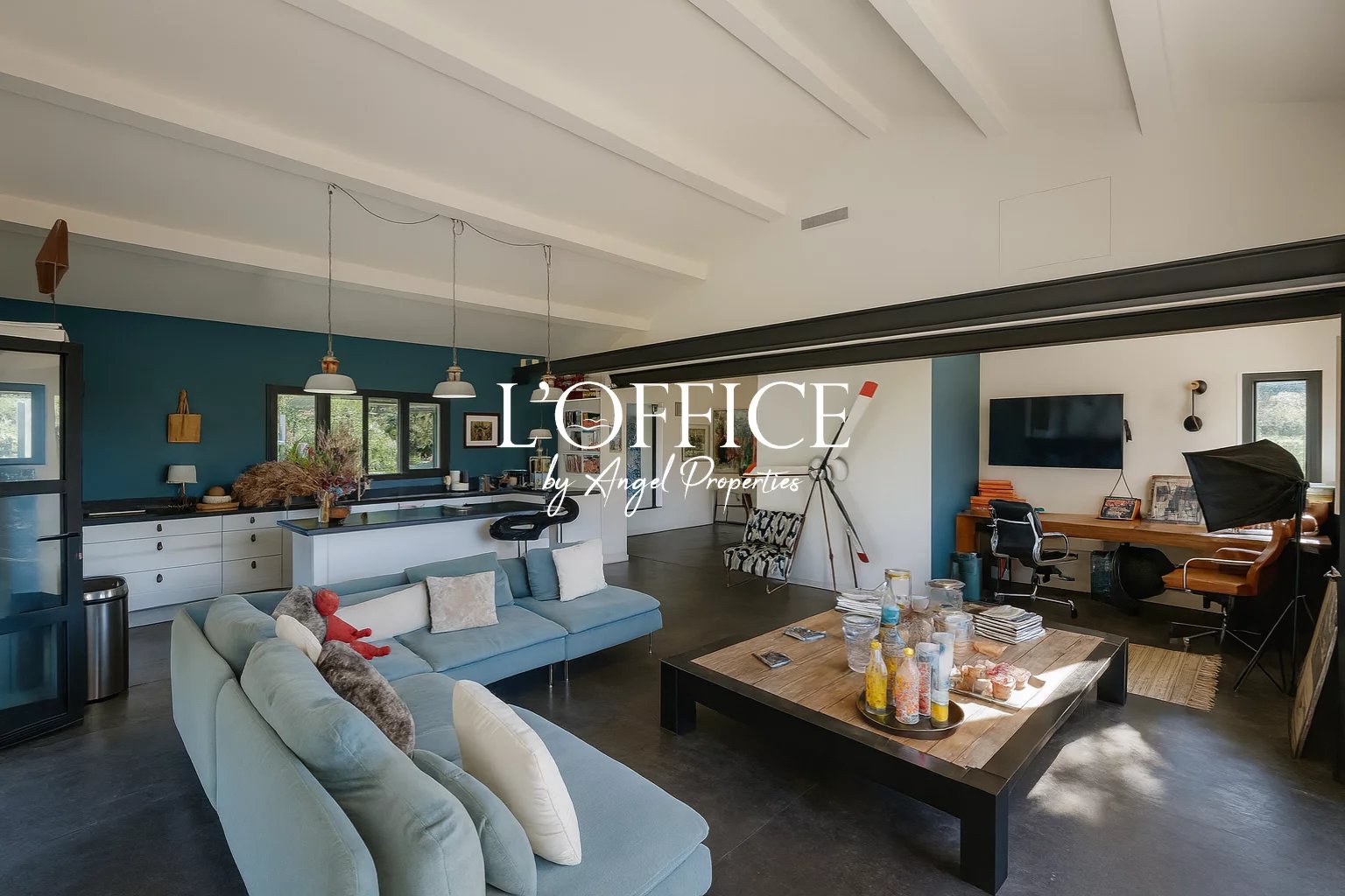 Située sur les hauteurs de Gassin, cette élégante villa d’environ 200 m² se niche sur un terrain paysager et entièrement clos de 1 300 m², agrémenté d’une belle piscine. Offrant un cadre paisible et verdoyant, elle bénéficie d’une vue mer depuis l’étage. La propriété se déploie sur deux niveaux : En rez-de-jardin, deux spacieuses chambres en suite avec salle de bains et toilettes privatives, une buanderie, ainsi qu’un toilettes invités. À l’étage, un vaste espace de réception de type loft avec cuisine ouverte, prolongé par une grande terrasse et un balcon offrant un bel aperçu mer. Ce niveau accueille également deux chambres supplémentaires, chacune avec sa salle de bains et son dressing. Un box fermé complète ce bien. La villa est vendue entièrement meublée, prête à vivre ou à louer immédiatement.