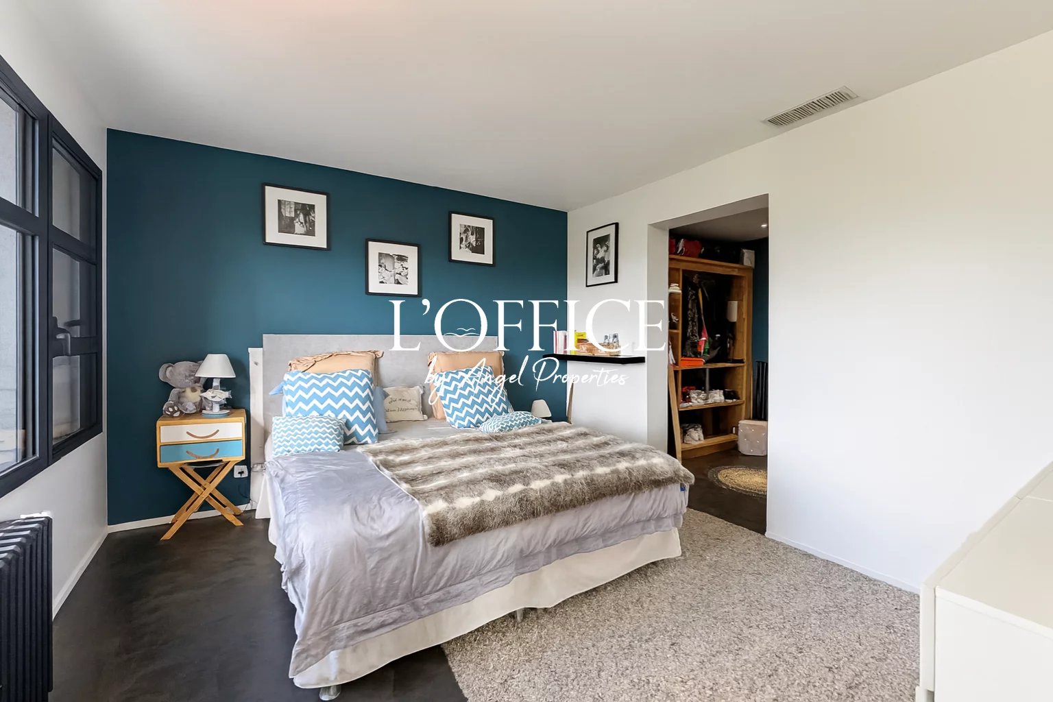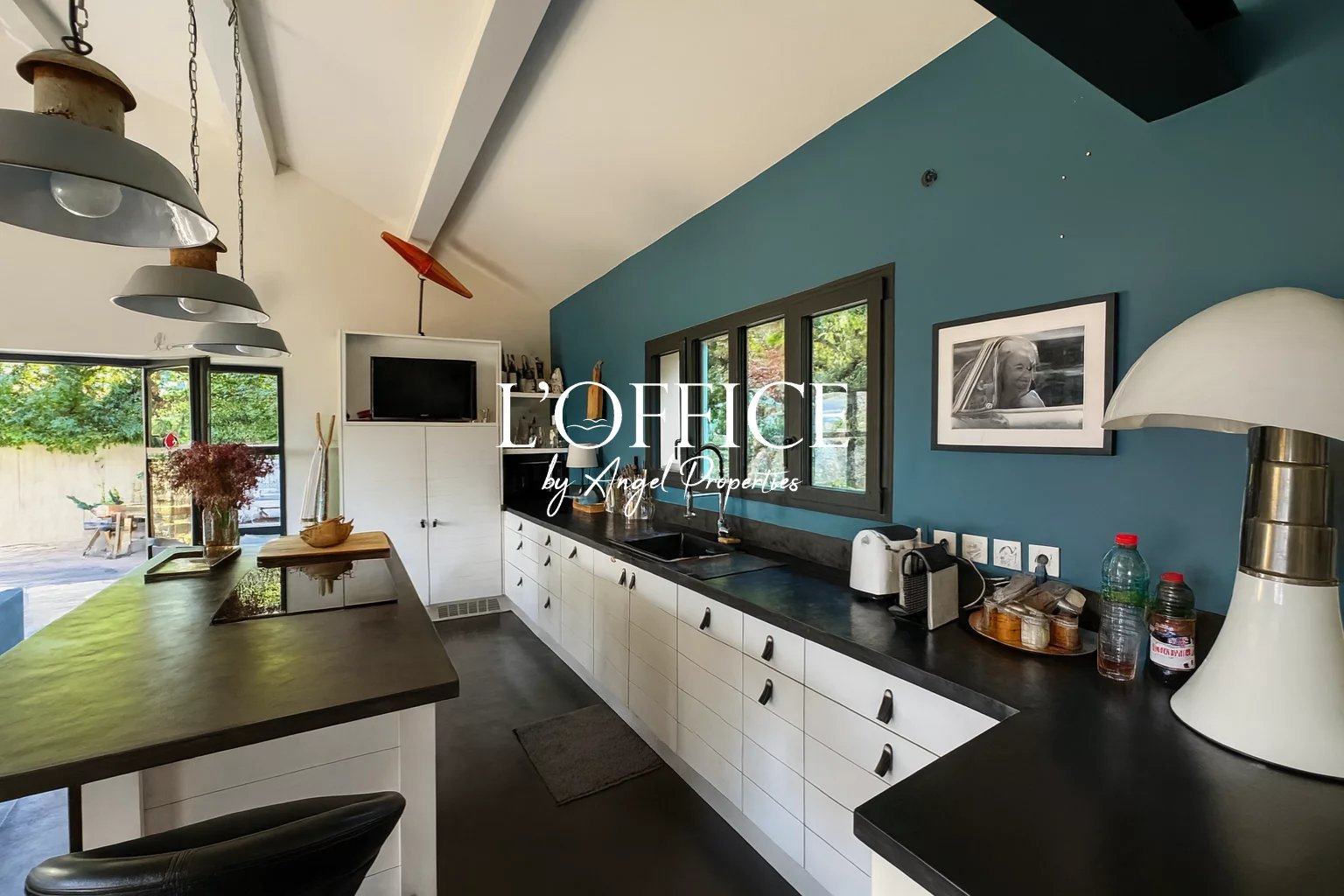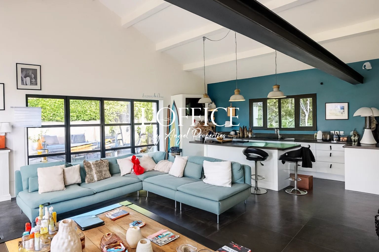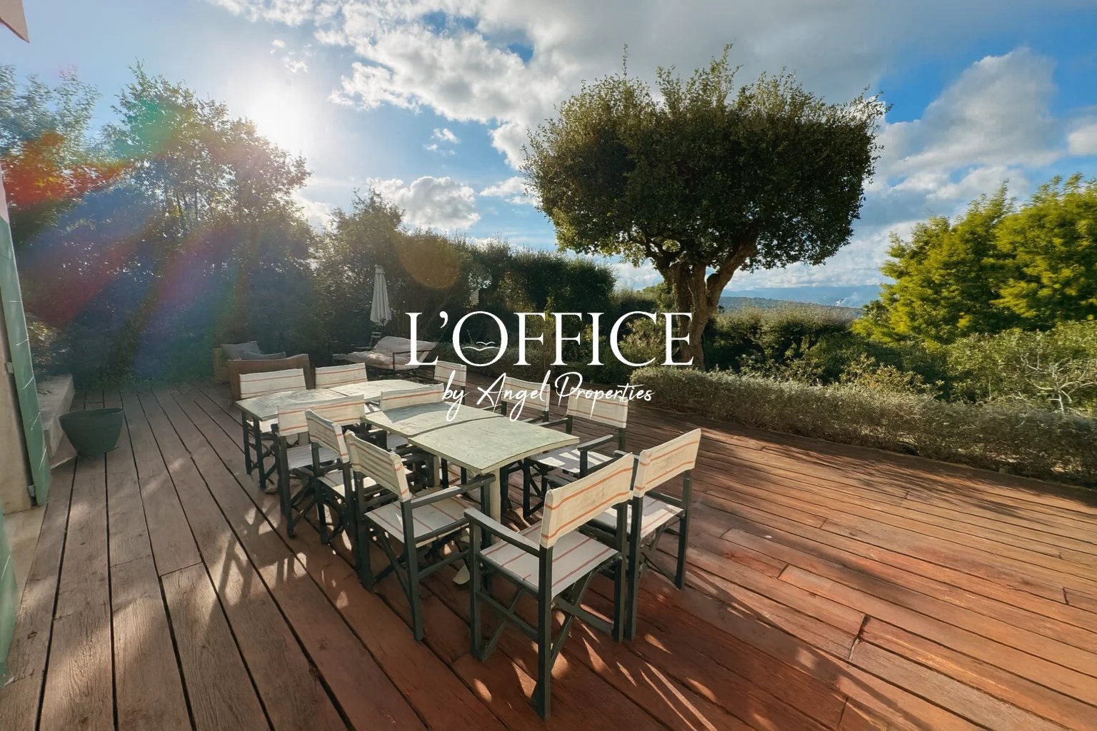 Située sur les hauteurs de Gassin, cette élégante villa d’environ 200 m² se niche sur un terrain paysager et entièrement clos de 1 300 m², agrémenté d’une belle piscine. Offrant un cadre paisible et verdoyant, elle bénéficie d’une vue mer depuis l’étage. La propriété se déploie sur deux niveaux : En rez-de-jardin, deux spacieuses chambres en suite avec salle de bains et toilettes privatives, une buanderie, ainsi qu’un toilettes invités. À l’étage, un vaste espace de réception de type loft avec cuisine ouverte, prolongé par une grande terrasse et un balcon offrant un bel aperçu mer. Ce niveau accueille également deux chambres supplémentaires, chacune avec sa salle de bains et son dressing. Un box fermé complète ce bien. La villa est vendue entièrement meublée, prête à vivre ou à louer immédiatement.