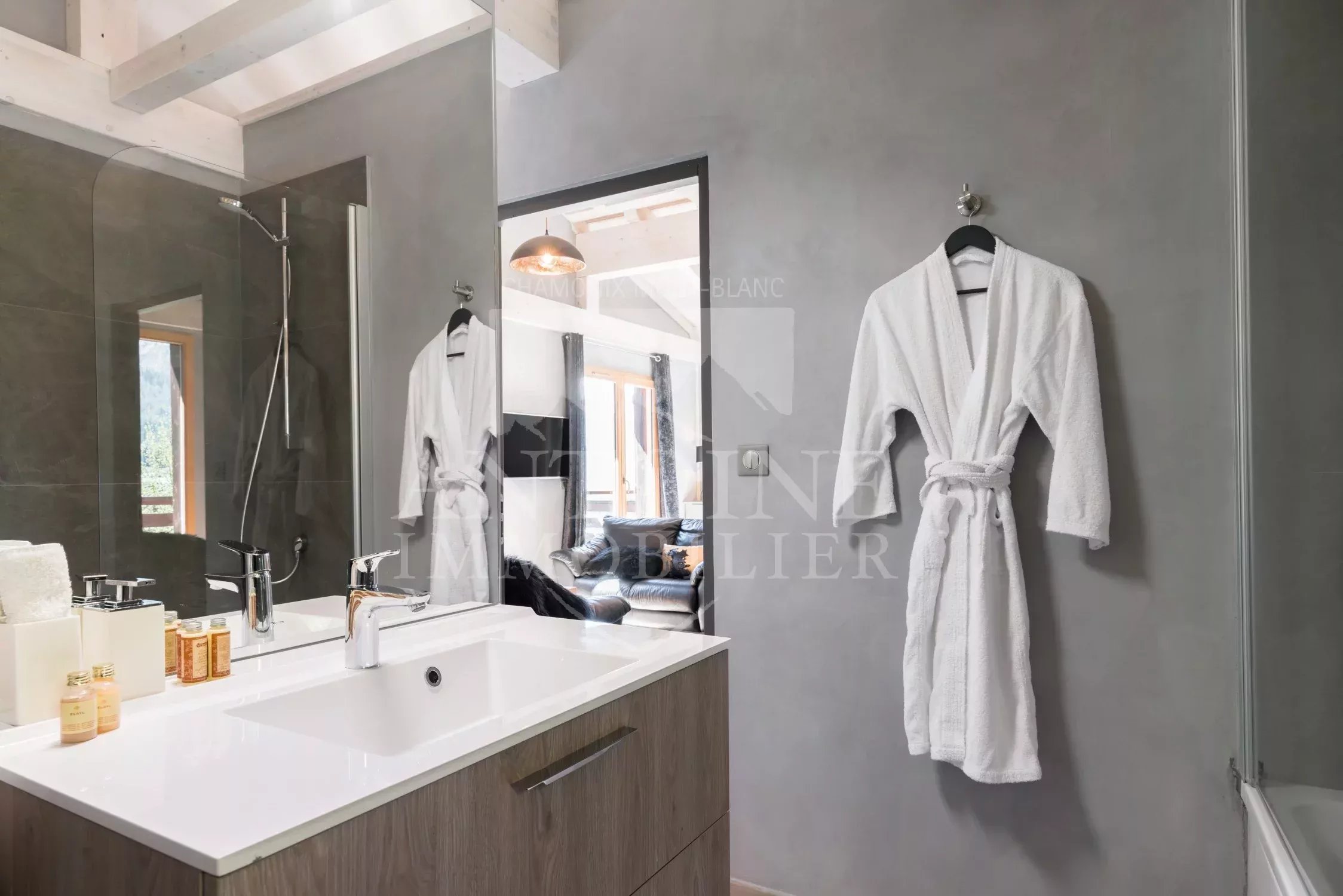 Lo Chalet Terray è un incantevole chalet sulle pendici meridionali di Chamonix, nel quartiere Pècles, a circa 1 km dal centro di Chamonix. Lo chalet è stato appena completamente ristrutturato e comprende 3 camere da letto, ognuna con il proprio bagno o doccia. Ha un balcone-terrazza che si affaccia sul massiccio del Monte Bianco ed è circondato da spazi verdi, ai margini della foresta dove cervi e caprioli amano venire a saziarsi. Antoine Terray ha ristrutturato questo chalet, che apparteneva a suo padre, il famoso alpinista Lionel Terray. È composto da un ampio ingresso, due camere da letto, ognuna con armadio a muro e bagno con doccia, e una toilette separata. Il livello superiore comprende un soggiorno con una moderna cucina attrezzata, che si apre su un balcone-terrazza di circa 15 m2, e, proseguendo dal soggiorno, una camera matrimoniale con bagno e WC. A seconda delle esigenze, le camere da letto possono essere dotate di 2 letti singoli (80 x 200) o di un letto matrimoniale (160 x 200). L'ambiente generale dello chalet e le sue strutture vi offriranno tutti i comfort moderni che vi aspettate. Tuttavia, lo chalet si trova sul versante sud della collina, per cui è necessario salire un breve tratto e poi percorrere una scala esterna di circa venti gradini dal garage per raggiungere la casa. Una volta entrati nello chalet, potrete apprezzare la vista panoramica, la qualità del sole e la natura circostante. Lo chalet viene affittato con un garage in cui è possibile riporre l'auto, l'attrezzatura da sci o le biciclette. Va notato che dal garage si devono percorrere un centinaio di metri a piedi per raggiungere lo chalet, di cui circa cinquanta su un pendio (dotato di una scala). Lo chalet si trova in una zona residenziale, sul versante sud rivolto verso la catena del Monte Bianco, tra il settore Gaillands, che comprende l'area di arrampicata e un lago, e il centro di Chamonix. Per raggiungere il centro città si impiega circa 1/4 d'ora a piedi e le fermate degli autobus sono a 5 minuti di cammino.