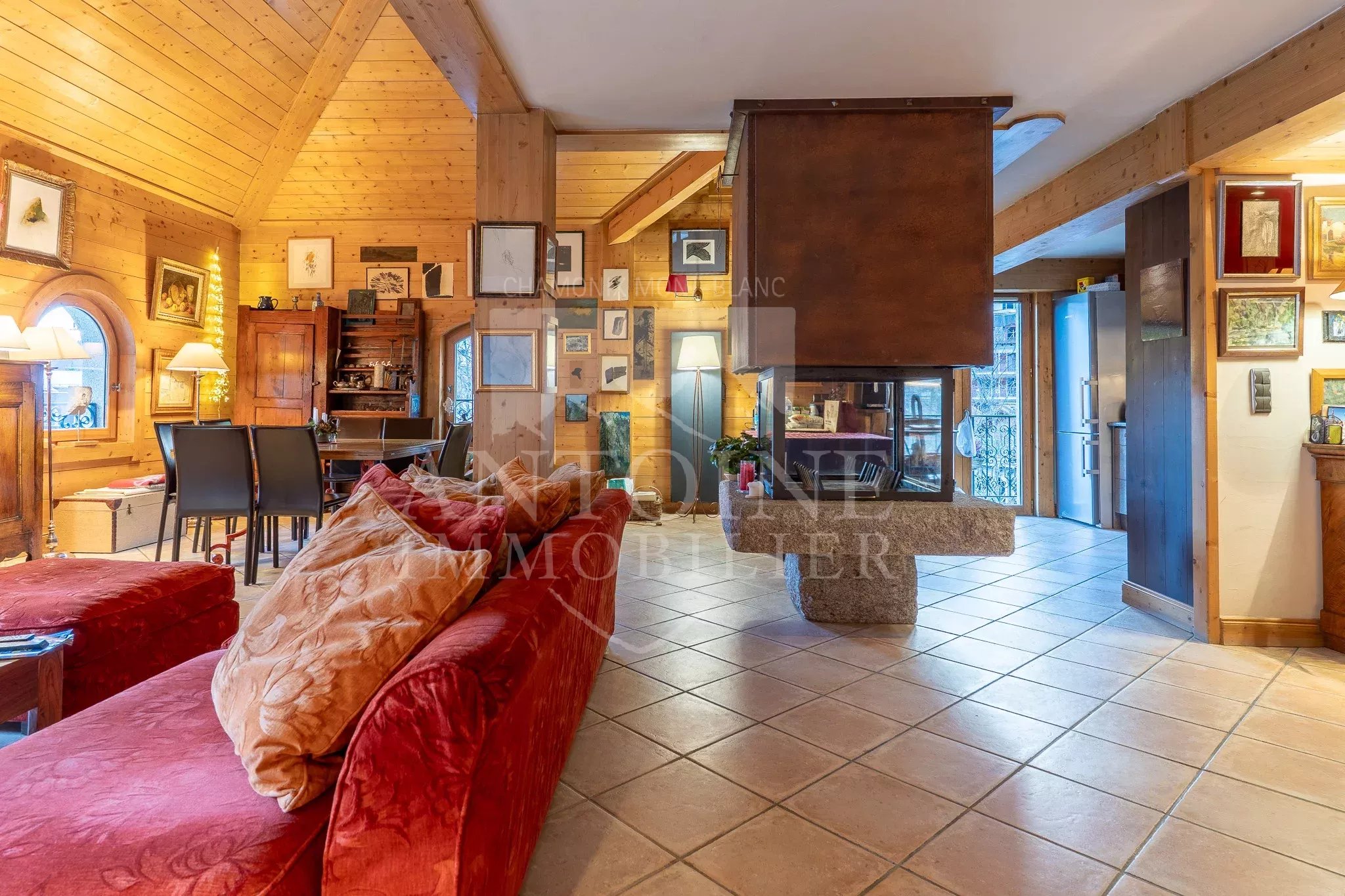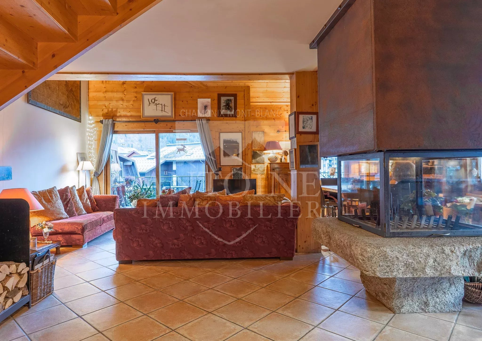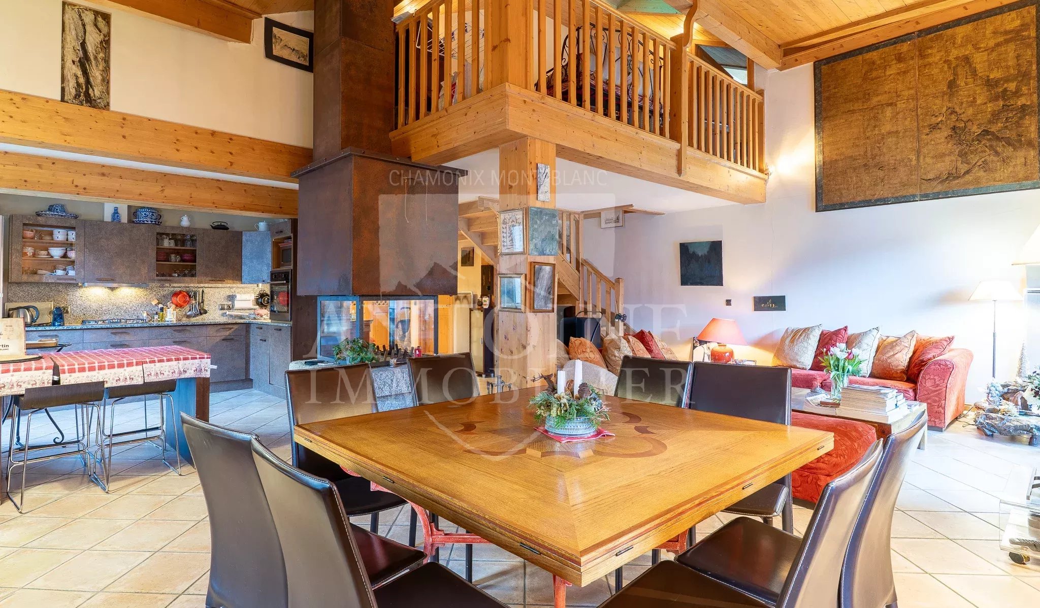 Situato in una posizione ideale nel cuore di Chamonix, in una strada tranquilla del centro città, sulle rive dell'Arve e vicino a tutti i servizi, questo appartamento di lusso è stato costruito nel 2007 dal costruttore MGM. Con una superficie di circa 237 m² (140 m² legge Carrez), offre un ampio spazio abitativo su due livelli. L'ingresso con armadi e WC per gli ospiti conduce a un ampio soggiorno con camino centrale e soffitti alti, suddiviso in salotto, sala da pranzo e cucina a pianta aperta completamente attrezzata. Da questo spazio si estendono due balconi: uno di 8 m2 con una notevole vista sul massiccio del Monte Bianco, l'altro di 4 m2 con vista libera su Le Brévent. La zona notte al livello principale comprende una suite padronale con spogliatoio e bagno privato. Il livello superiore comprende l'intero sottotetto della residenza e attualmente include un'ampia camera da letto con bagno con doccia e ripostiglio nel sottotetto. Il resto del volume, attualmente utilizzato come ufficio, potrebbe essere convertito in ulteriori camere da letto con bagno interno. Gli annessi comprendono Una cantina Un armadietto per gli sci Un posto auto al piano interrato, accessibile tramite una rampa riscaldata. Una proprietà rara nel centro della città, che offre spazio, vista e tranquillità, ideale come residenza principale o casa di vacanza di lusso.