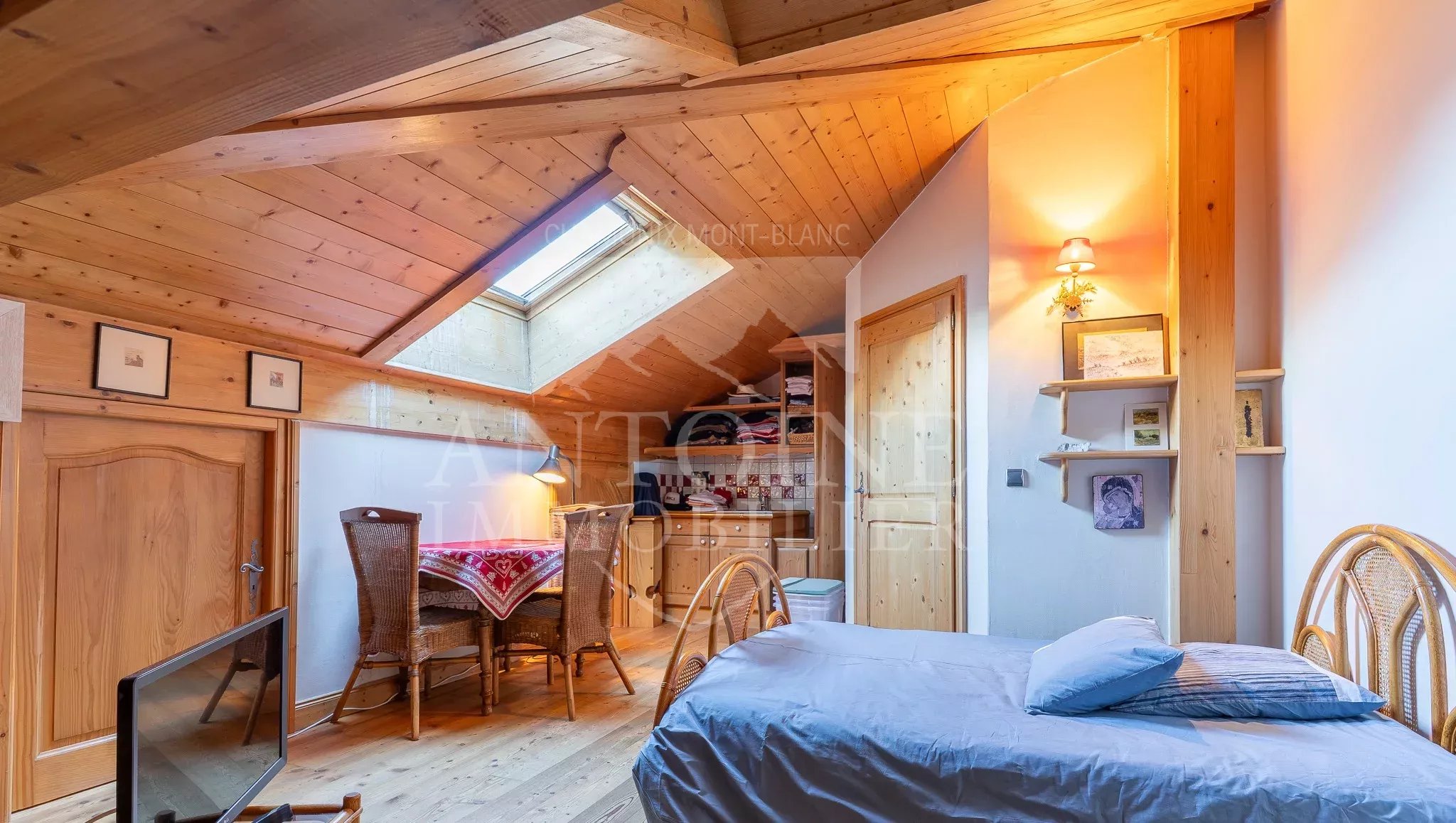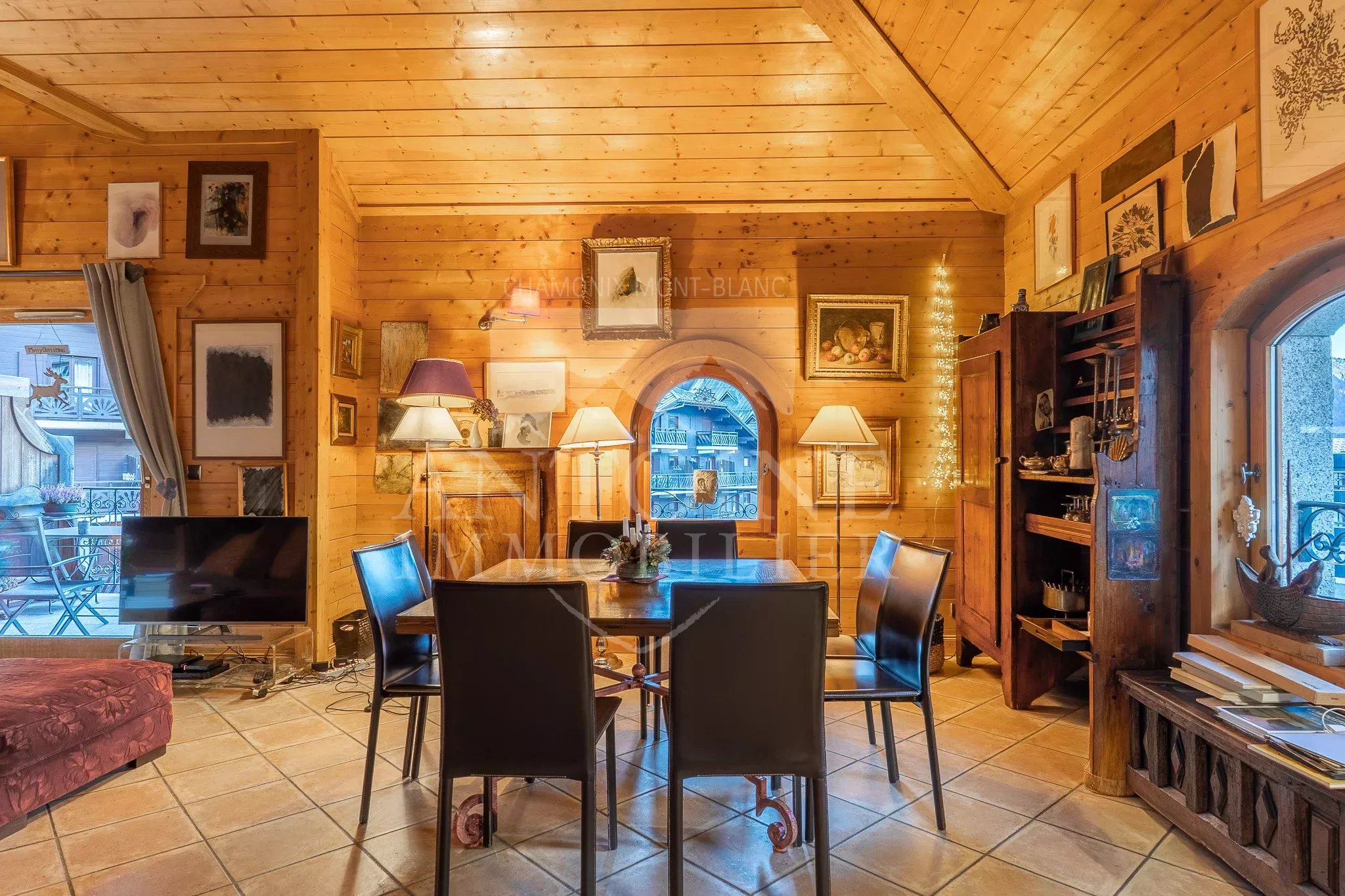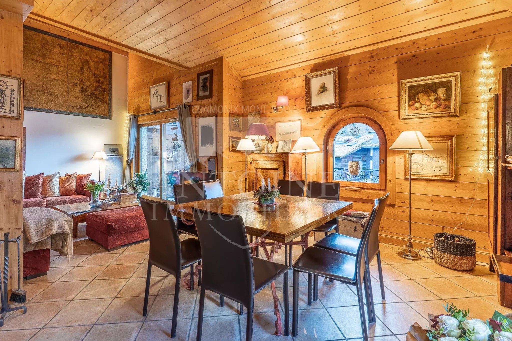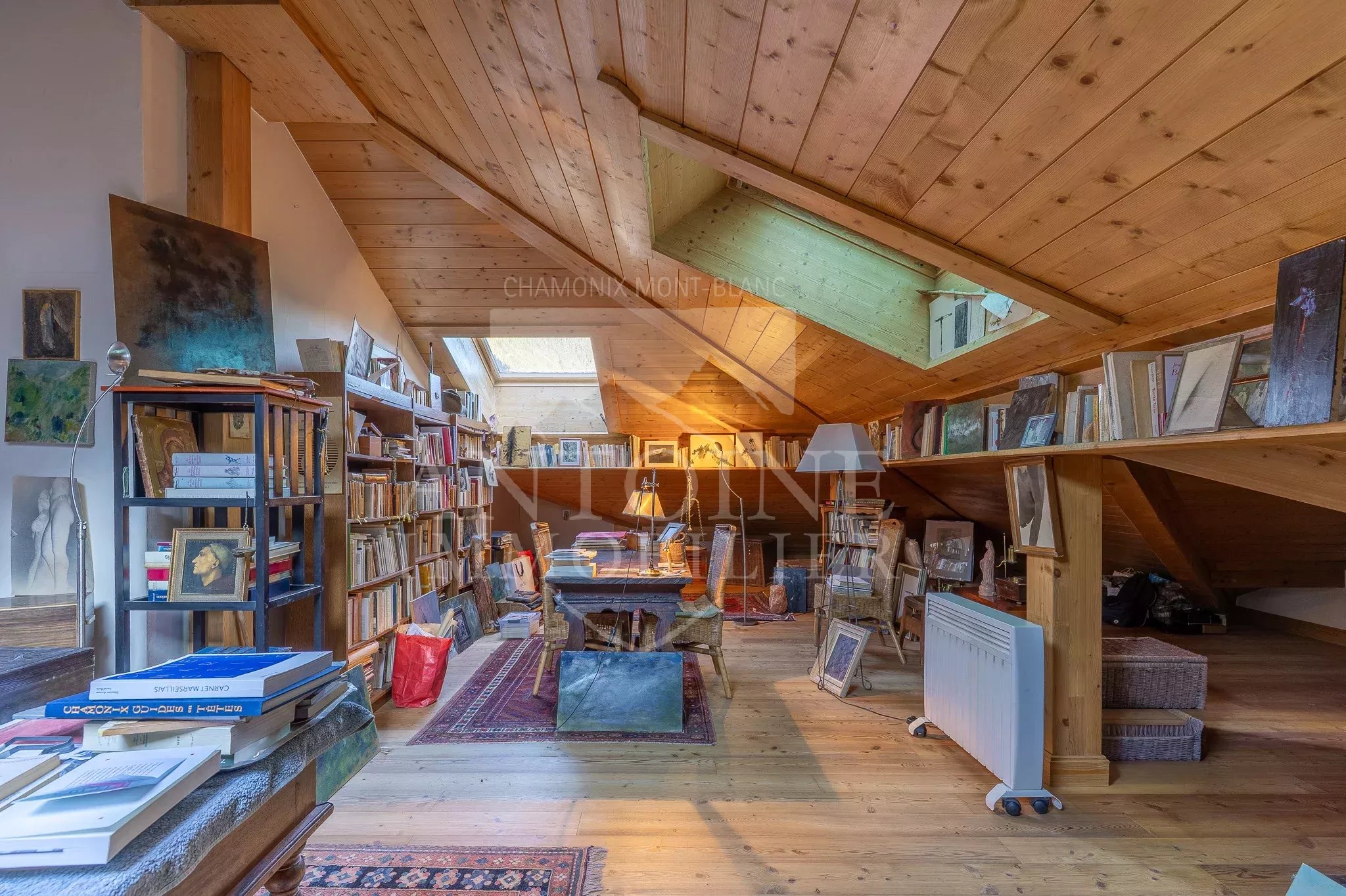 Situato in una posizione ideale nel cuore di Chamonix, in una strada tranquilla del centro città, sulle rive dell'Arve e vicino a tutti i servizi, questo appartamento di lusso è stato costruito nel 2007 dal costruttore MGM. Con una superficie di circa 237 m² (140 m² legge Carrez), offre un ampio spazio abitativo su due livelli. L'ingresso con armadi e WC per gli ospiti conduce a un ampio soggiorno con camino centrale e soffitti alti, suddiviso in salotto, sala da pranzo e cucina a pianta aperta completamente attrezzata. Da questo spazio si estendono due balconi: uno di 8 m2 con una notevole vista sul massiccio del Monte Bianco, l'altro di 4 m2 con vista libera su Le Brévent. La zona notte al livello principale comprende una suite padronale con spogliatoio e bagno privato. Il livello superiore comprende l'intero sottotetto della residenza e attualmente include un'ampia camera da letto con bagno con doccia e ripostiglio nel sottotetto. Il resto del volume, attualmente utilizzato come ufficio, potrebbe essere convertito in ulteriori camere da letto con bagno interno. Gli annessi comprendono Una cantina Un armadietto per gli sci Un posto auto al piano interrato, accessibile tramite una rampa riscaldata. Una proprietà rara nel centro della città, che offre spazio, vista e tranquillità, ideale come residenza principale o casa di vacanza di lusso.