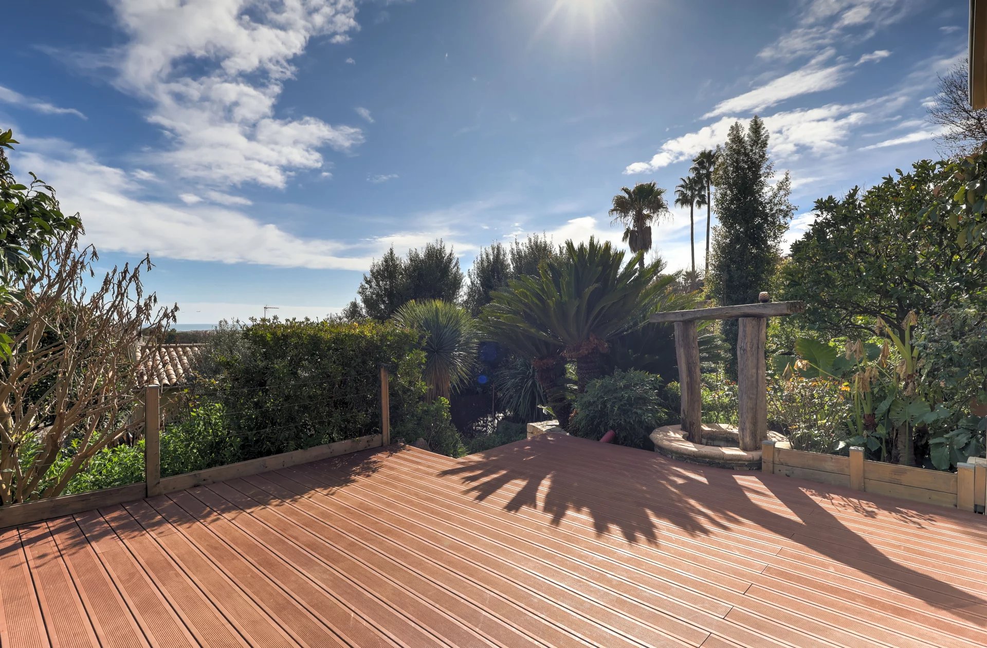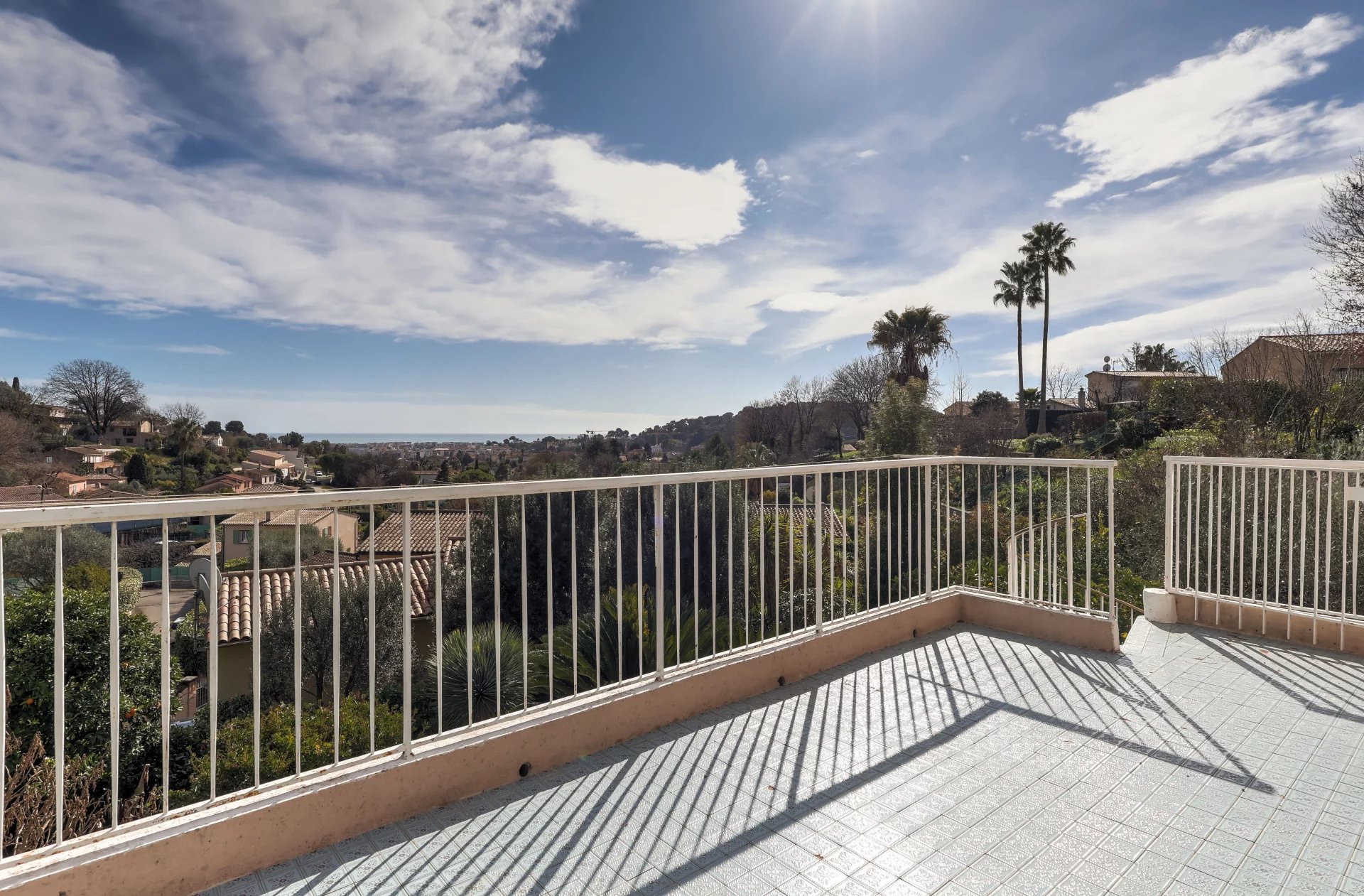 CAGNES SUR MER: Dans un environnement résidentiel au calme absolu, tout en restant à proximité immédiate des principaux axes routiers et des commodités (sans en subir les nuisances), découvrez cette maison d’architecte de style californien des années 70, édifiée sur deux niveaux et divisée en deux appartements indépendants. Au premier niveau un 4p qui se compose d’un séjour avec cuisine dans son prolongement, ouvrant sur une belle terrasse aux contours arborés. L’espace nuit propose trois chambres confortables ainsi qu’une salle d’eau entièrement refaite à neuf. À l’étage Vous trouverez une véranda lumineuse, une cuisine indépendante, une salle d’eau rénovée, une grande chambre et un vaste séjour s’ouvrant sur une terrasse exposée plein sud avec vue dégagée sur la mer. La propriété bénéficie d’un jardin très arboré offrant intimité et cadre verdoyant. Plusieurs places de stationnement complètent le bien ainsi qu’un garage fermé. Maison idéale pour une grande famille, un projet locatif ou une résidence principale avec appartement indépendant. Bien rare sur le secteur, à découvrir rapidement. Classe énergie D - Taxe Foncière 1407€ - Nous soumis au régime de la copropriété. Les informations sur les risques auxquels ce bien est exposé sont disponibles sur le site Géorisques http://georisques.gouv.fr