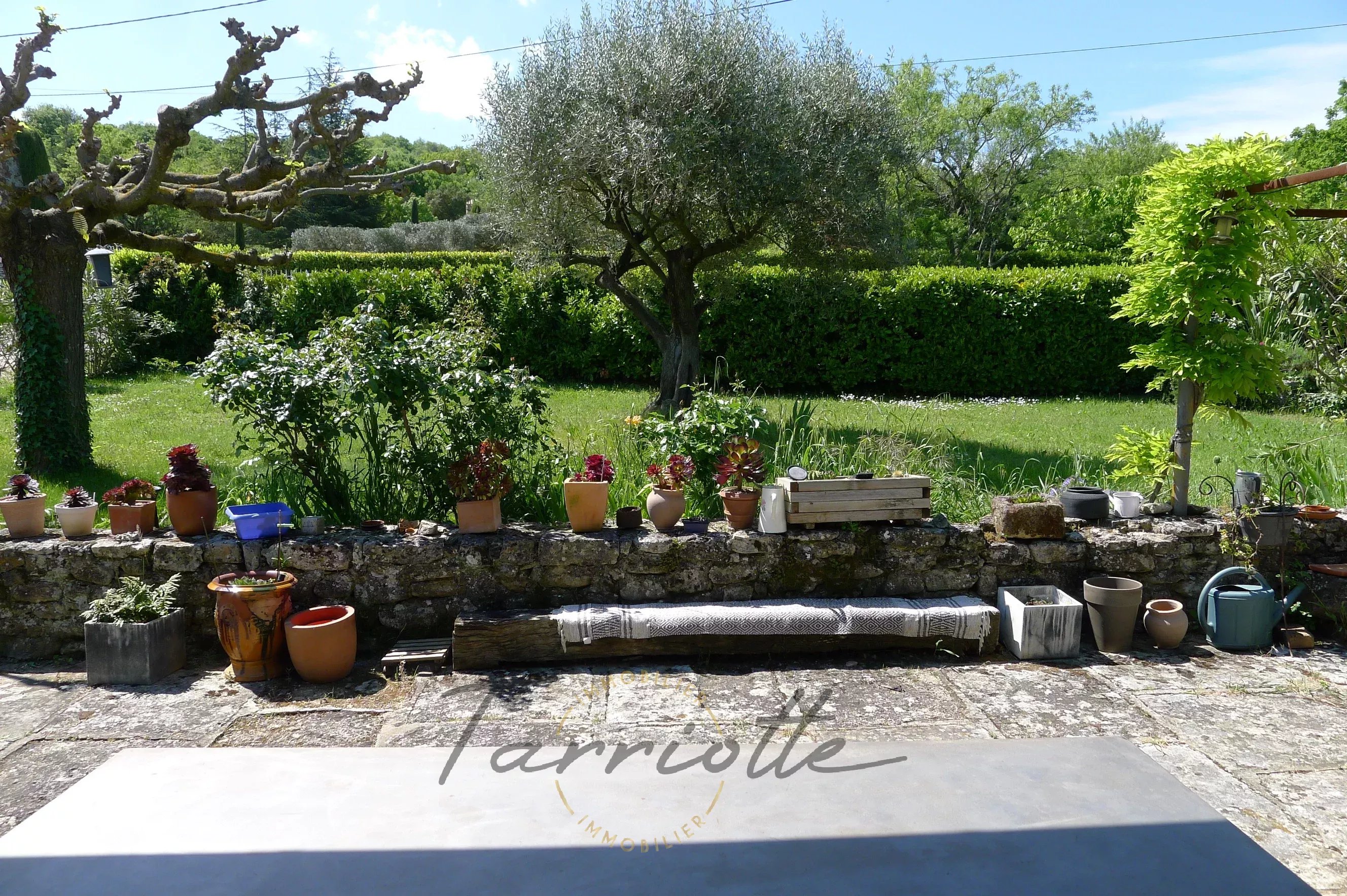 Chantemerle-lès-Grignan, en bordure d'un charmant village provençal. Maison ancienne agrandie en 2006 de 130 m² habitables de plain-pied, plus dépendances (garage/studio/cave) largement ouverte au Sud. Sur le jardin, une terrasse couverte avec spa, agréable et protégée du mistral, une belle pièce de vie lumineuse avec poêle à bois et climatisation, trois chambres, garage/atelier de 42 m². Le terrain abrite de beaux oliviers, l'environnement est paisible tout en n'étant pas isolé. C'est une maison confortable, sans escaliers, qui vous permettra d'accueillir facilement famille et amis à 10 minutes de Grignan. Classe énergie D. Réf : 10606. Prix : 348 500 € H.A.I. Honoraires à la charge du vendeur. Annonce proposée par Isabelle Repellin, agent commercial, tél : 06 08 76 61 34.