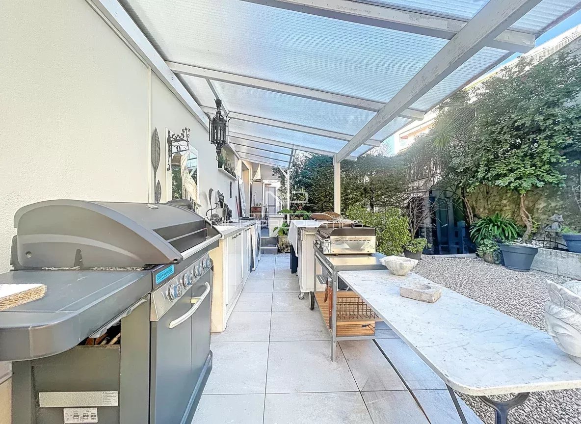 NICE CIMIEZ :Nice Cimiez – À deux pas du Musée Chagall, au sein d’une belle résidence de standing et au calme absolu, découvrez ce rare appartement d’angle en rez-de-jardin surélevé, offrant un cadre de vie privilégié. Ce 3 pièces d’environ 55 m² se distingue par son extérieur exceptionnel de 172 m² : une vaste terrasse-jardin ensoleillée, agrémentée d’une cuisine d’été, véritable invitation à la détente et aux moments de convivialité. Un bien unique, à mi-chemin entre appartement et villa. Entièrement rénové dans un style contemporain, l’appartement s’ouvre sur une entrée avec cuisine équipée ouverte, prolongée par un séjour lumineux bénéficiant d’un accès direct à la terrasse et au jardin. L’espace nuit propose une chambre principale, une seconde chambre pouvant faire office de bureau ou de chambre d’enfant, une salle d’eau avec douche à l’italienne, ainsi que des toilettes indépendantes. Une cave complète ce bien. Possibilité d'acquérir un garage. Le quartier de Cimiez Véritable joyau résidentiel niçois, Cimiez séduit par son élégance, sa tranquillité et son environnement verdoyant. Chargé d’histoire, le quartier abrite des lieux emblématiques tels que le Musée Matisse, les arènes romaines et de somptueuses villas Belle Époque. Très recherché pour la qualité de ses établissements scolaires, son patrimoine architectural et son atmosphère paisible, Cimiez offre un art de vivre rare et privilégié, alliant charme intemporel et confort du quotidien. Honoraire de 5% inclus à la charge du vendeur. Les informations sur les risques auxquels ce bien est exposé sont disponibles sur le site Géorisques : georisques.gouv.fr