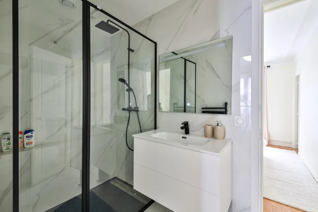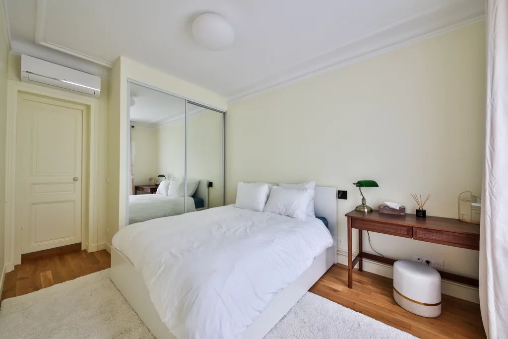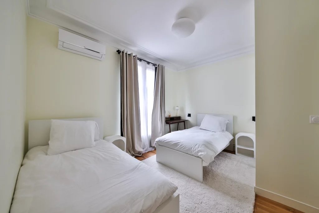 Belmont properties vous présente, en bail code civil, au 3ème étage avec ascenseur d'un immeuble en pierre de taille situé rue Fresnel, un appartement de 70m2 entièrement renové par architecte, il se compose d'une galerie d'entrée desservant un double séjour / salle à manger climatisé, deux chambres climatisées avec espace bureau et rangements, une salle d'eau avec douche et buanderie (lave-linge et sèche-linge), une cuiqine entièrement équipée, un WC séparé ainsi qu'une cave. A visiter rapidement