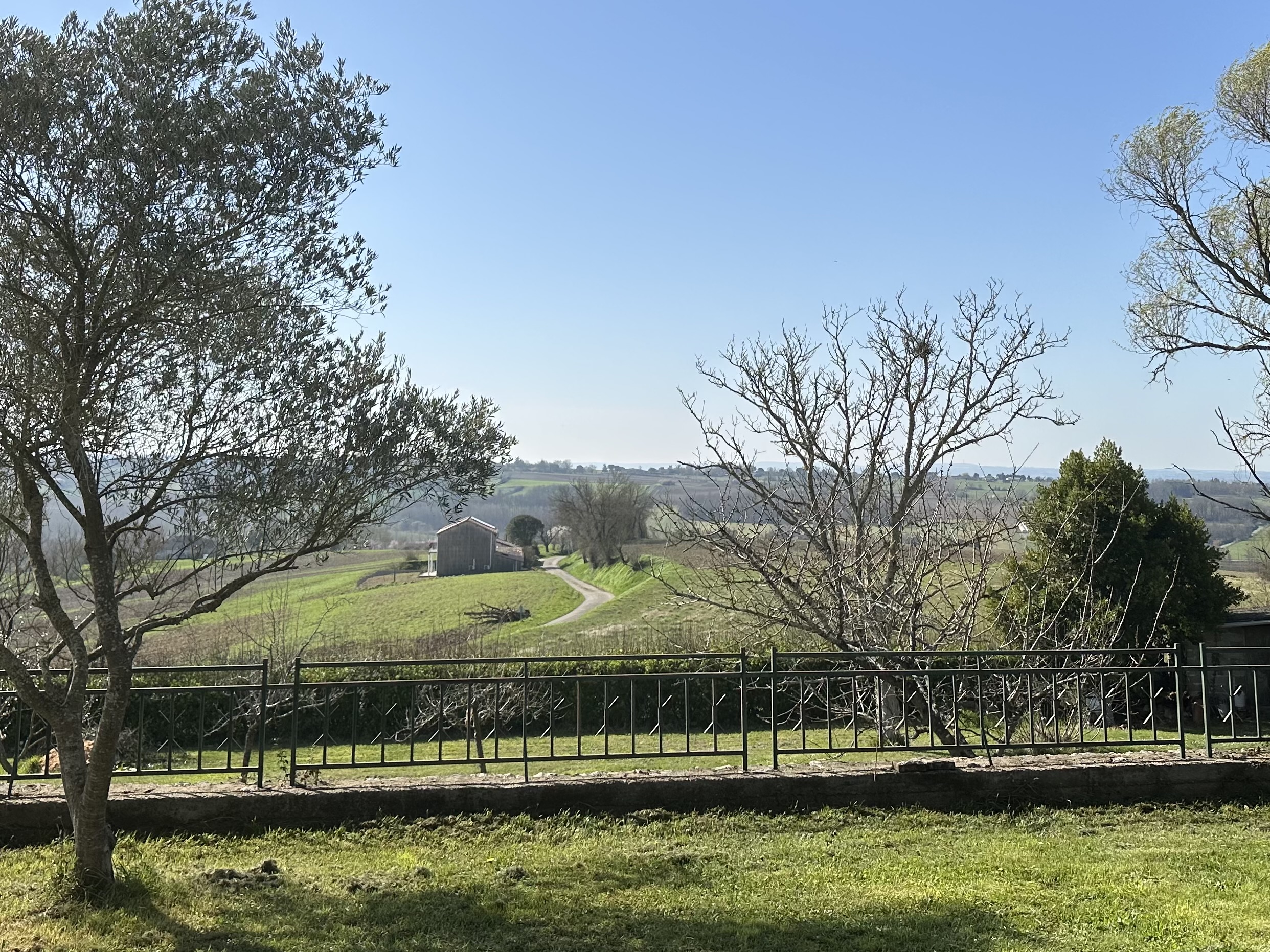 La terrasse offre une vue magnifique et dégagée sur les coteaux environnants, sans vis-à-vis direct.