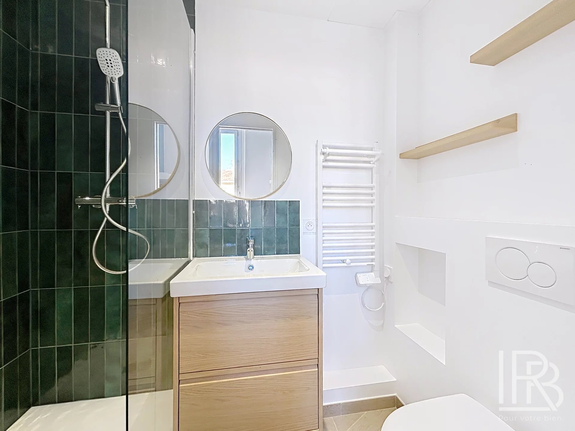 La salle d’eau, entièrement rénové est moderne et dispose d’une douche.