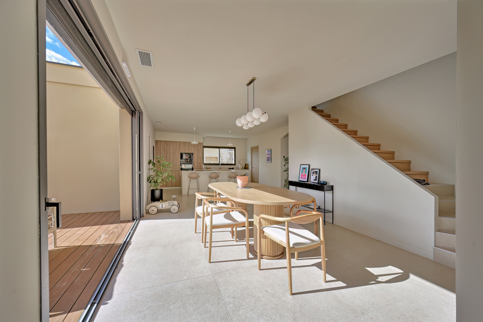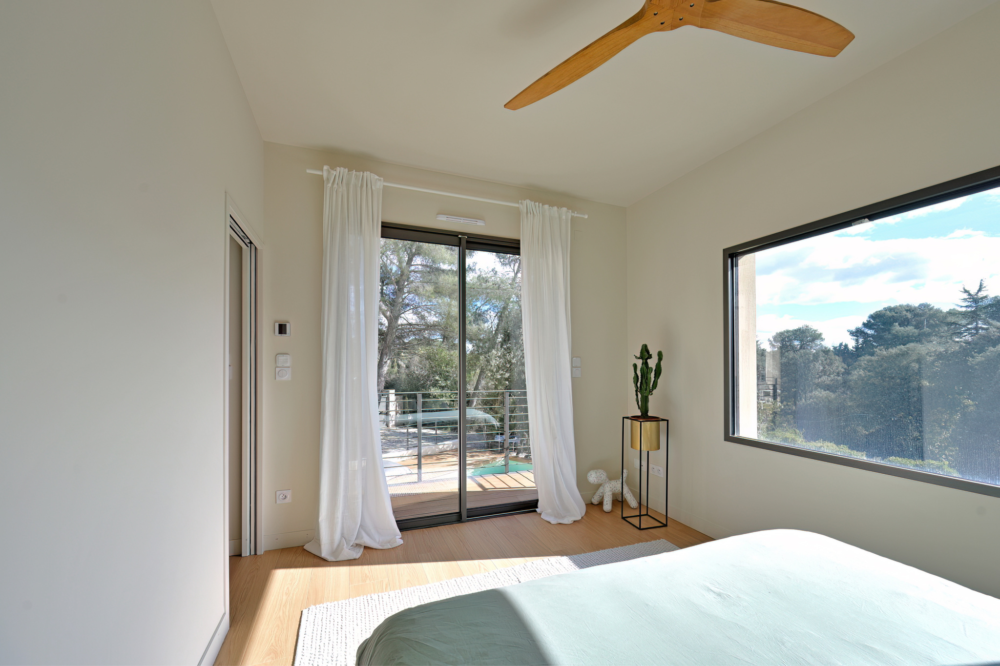 À l'abri des regards, cette villa contemporaine récente propose près de 170 m2 habitables sur un terrain parfaitement exploité. L'espace de vie principal développe près de 130 m2 avec une circulation agréable. Il s'organise en rez-de-chaussé autour d'une entrée, d'une cuisine aménagée avec cellier attenant et d'un séjour tourné vers l'extérieur. Ce même niveau comprend également deux chambres dont une suite parentale avec dressing et salle d'eau, permettant de vivre de plain-pied. À l'étage, deux chambres avec rangements intégrés, une salle de bain et une salle d'eau composent un espace nuit bien réparti. Côté jardin, trois terrasses dont une couverte, un terrain de pétanque et un jardin paysager accueillent une piscine au sel avec vue dégagée. Villa récente avec bonnes performances énergétiques, dommage ouvrage, garanties décennales en cours, climatisation gainable, domotique, garage, cave à vin et salle de sport complètent l'ensemble. Les informations sur les risques auxquels ce bien est exposé sont disponibles sur le site géorisques : www.georisques.gouv.fr