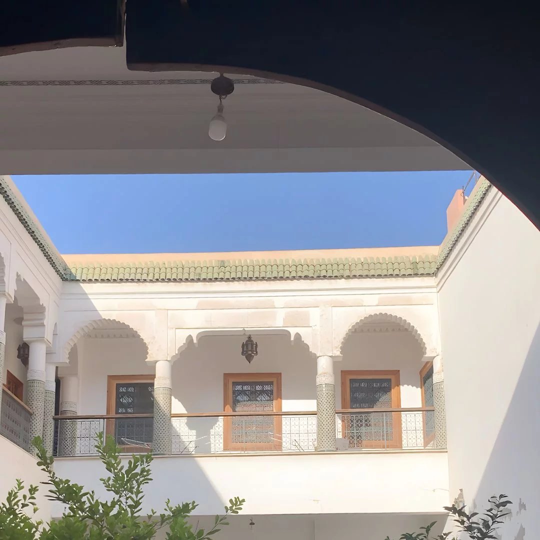 Rare opportunité d’acquérir un riad de caractère authentique au cœur du quartier prisé de Bab Doukala, à seulement 3 minutes de Guéliz. Ce bien d’exception de 507 m² constitue une base patrimoniale unique pour un projet de rénovation haut de gamme. Le riad s’articule autour d’un patio central avec fontaine, encadré de 4 jardins, offrant une oasis de sérénité rare en médina. Les galeries du premier étage dévoilent des colonnes entièrement habillées de zelliges verts de Fès, des portes en bois sculptées d’époque et des lanternes en laiton ciselé. Les murs sont ornés de stucs sculptés à la main et surmontés de hauts plafonds en bois de cèdre travaillé, un patrimoine artisanal aujourd’hui irremplaçable. La configuration actuelle comprend 9 chambres dont une master suite exceptionnelle de 90 m². Grâce à ses volumes et à sa surface généreuse, le riad offre une liberté totale de réaménagement et se prête à de multiples projets : Maison d’hôtes de standing, Résidence privée de prestige, Restaurant, Institut de beauté, bien-être / spa, ou reconfiguration complète des espaces selon vos ambitions. La structure est saine et solide, le riad a été entretenu régulièrement et il est très facilement accessible à pied et en voiture, ce qui en fait une base idéale pour un projet ambitieux. La terrasse bénéficie d’une vue panoramique sur les toits ocre de la médina et les palmiers, et offre la possibilité d’aménager un rooftop lounge avec piscine, sous réserve des autorisations en vigueur. L’environnement du riad est propre, arboré et donne vue sur les hautes murailles de la médina. Atout extrêmement rare en médina : parking intérieur pour 5 véhicules, complété par un parking public à 30 mètres. Bien titré. À rénover selon vos envies pour révéler tout le potentiel de ce bien unique, dans l’un des quartiers les plus recherchés de Marrakech.