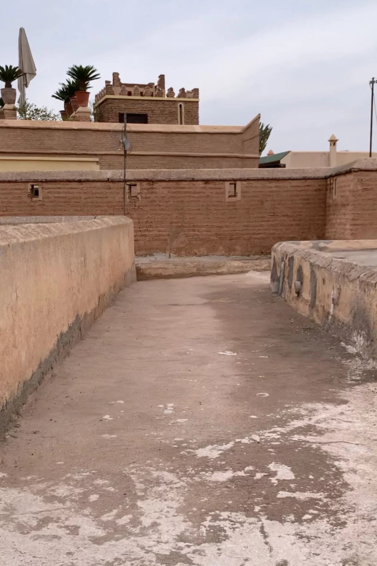 Bien d'histoire et de caractère, situé dans l'un des quartiers les plus authentiques de la médina de Marrakech, à Bab Taghzout. Ce riad de 400 m², titré, bénéficie d'un emplacement confidentiel dans une belle ruelle pavée aux arches anciennes, accolé au riad de la famille Hermès, une adresse qui parle d'elle-même. Accessible en voiture avec un parking à 3 minutes. Anciennement théâtre, le bien révèle des volumes et des hauteurs sous plafond exceptionnels, rares en médina. Le patio central, planté d'orangers et pavé de carreaux de ciment étoilés d'époque, est entouré de galeries à arcades et de colonnes en zelliges. La fontaine, les 4 jardins et les encadrements géométriques sculptés en stuc témoignent d'une architecture d'une grande noblesse. Les fenêtres à impostes ajourées en bois et les toitures en tuiles vertes vernissées complètent ce tableau d'exception. Avec 9 chambres existantes et une configuration permettant d'en créer davantage, le potentiel hôtelier est remarquable. La terrasse panoramique offre une vue imprenable sur les toits ocre de la médina, le minaret de la Koutoubia et les sommets enneigés de l'Atlas. Bien titré. Gros œuvre à prévoir, pour redonner vie à un lieu chargé d'histoire et façonner un projet d'exception dans un emplacement aussi rare que recherché.