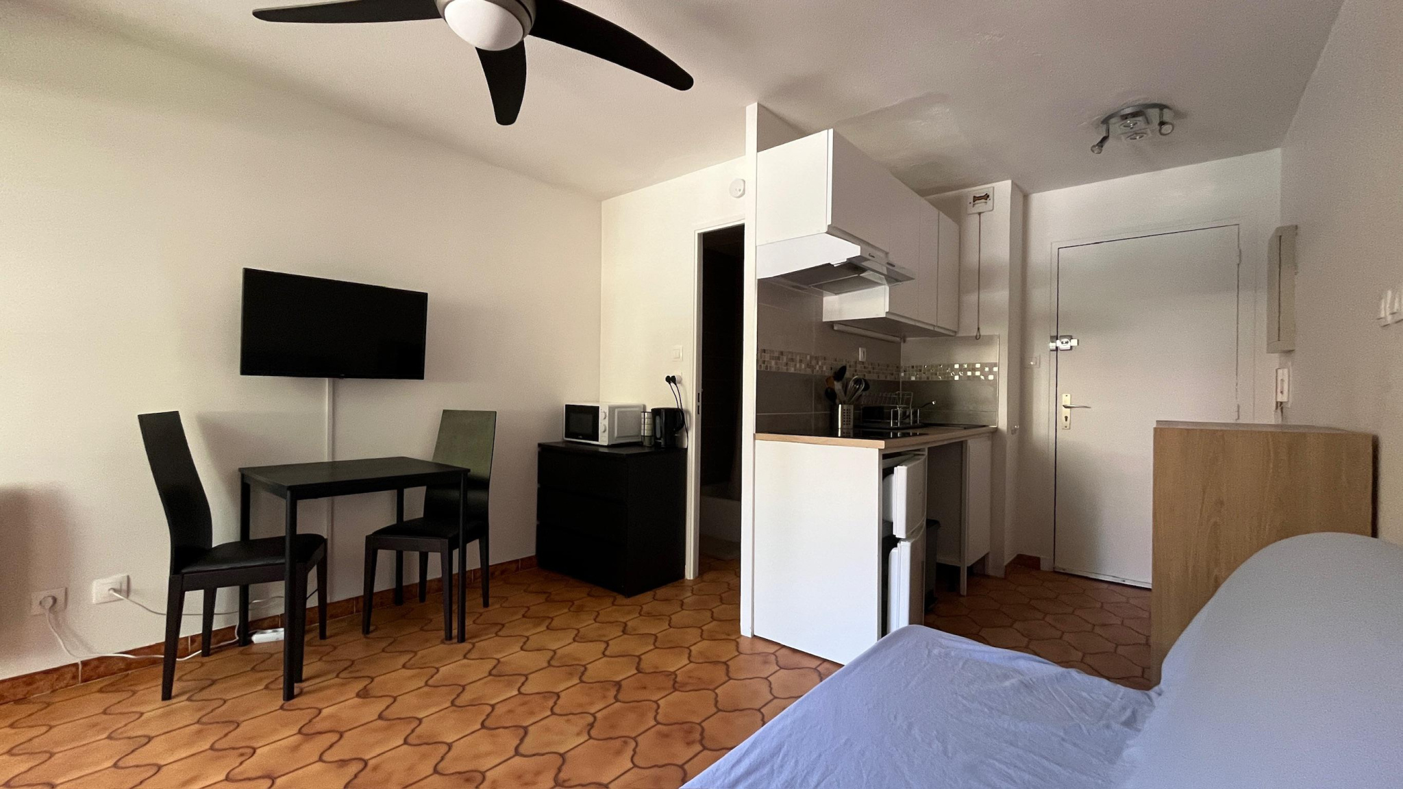 À quelques minutes à pied de la mer, du port, des commerces et des transports, ce studio meublé profite d'un cadre calme et résidentiel au sein d'une copropriété bien entretenue. Sa luminosité et son plan optimisé en font un pied-à-terre pratique.