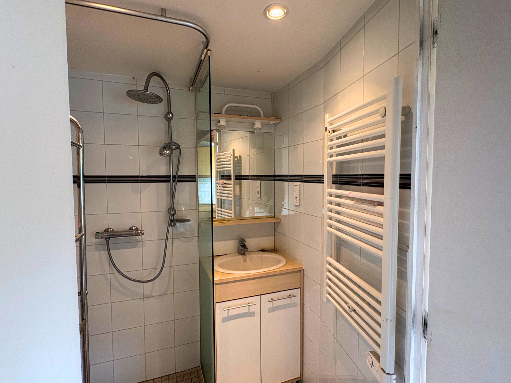 À l'étage, un palier de 1,40 m2 distribue trois chambres de 14,64 m2, 7,35 m2 et 12,10 m2, dont une bénéficiant de sa salle de bains privative de 4 m2 avec baignoire, meuble une vasque et wc sanibroyeur, offrant confort et intimité.
