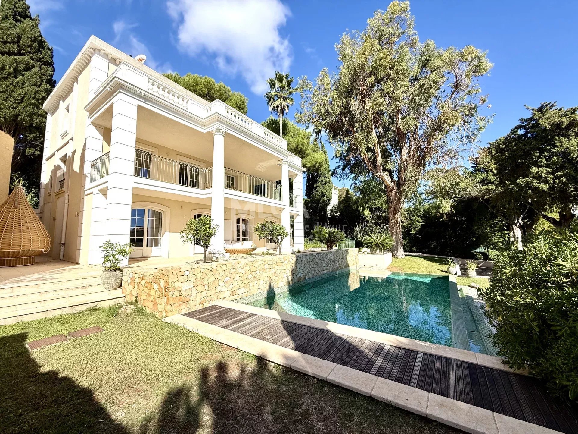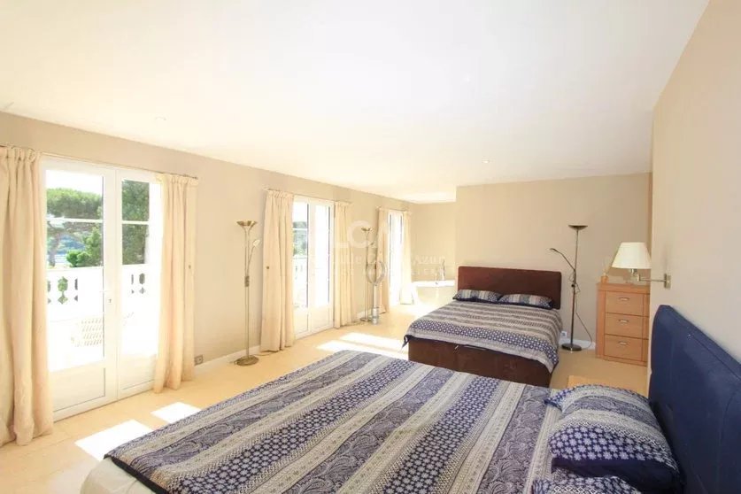 Située sur le versant Est du Cap d'Antibes et à 500m des plages de la Garoupe, magnifique villa avec vue mer d'environ 220 m2 sur un terrain de 1420 m2 avec piscine, pool house, et de nombreuses terrasses pour profiter de l'ensoleillement. La villa est composée de 4 chambres, 2 salles de bains, 2 salles de douches, spacieux dressings, 2 salons, une cuisine indépendante. Grand garage pour 3 voitures. Un ascenseur dessert les 3 niveaux de cette villa .