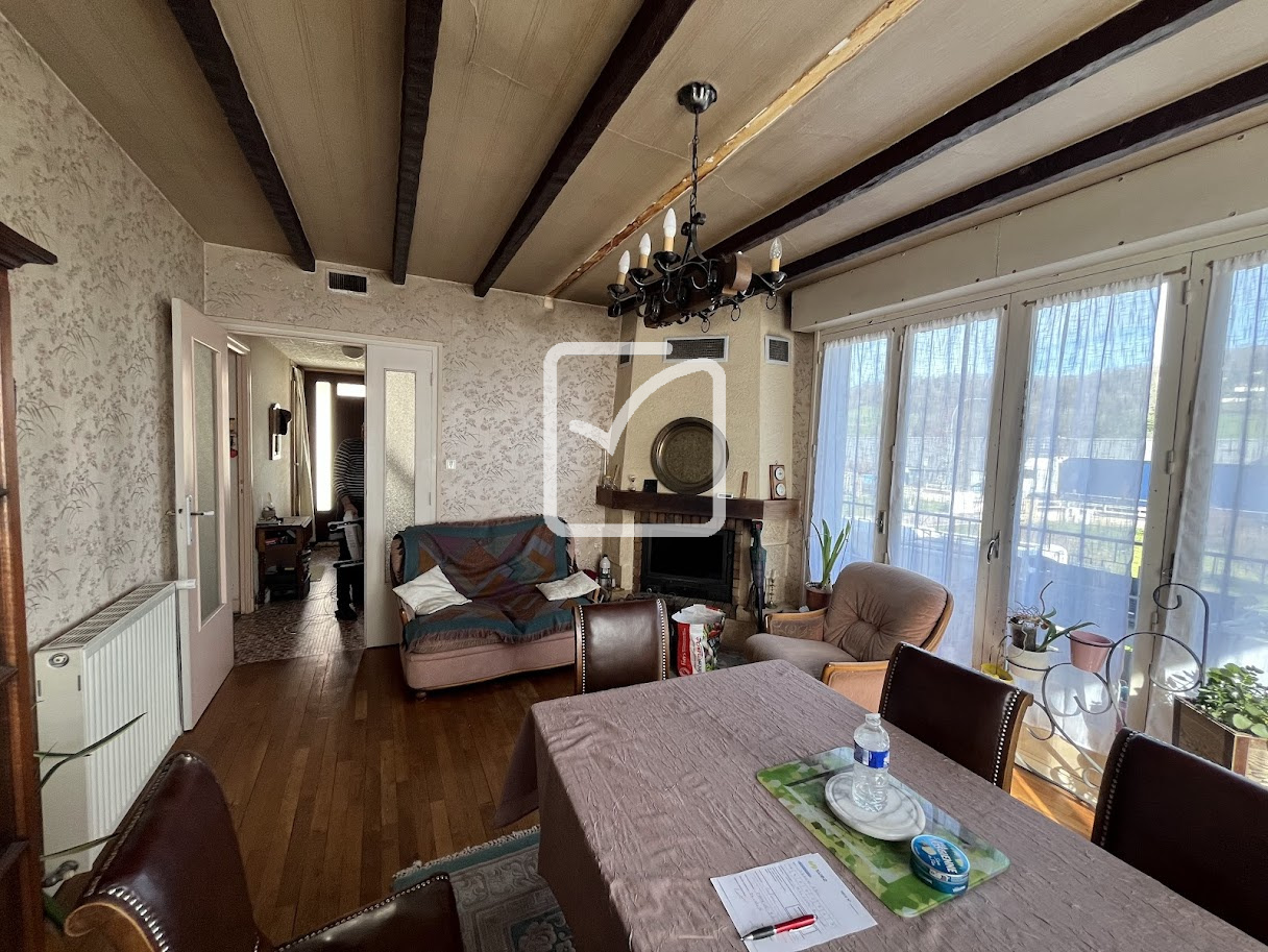 Maison sur sous sol d'une surface habitable de 87M2 , composée d'une cuisine séparée semi équipée, une pièce de vie avec cheminée donnant sur un balcon, 3 chambres , 1 salle d'eau et 1wc.