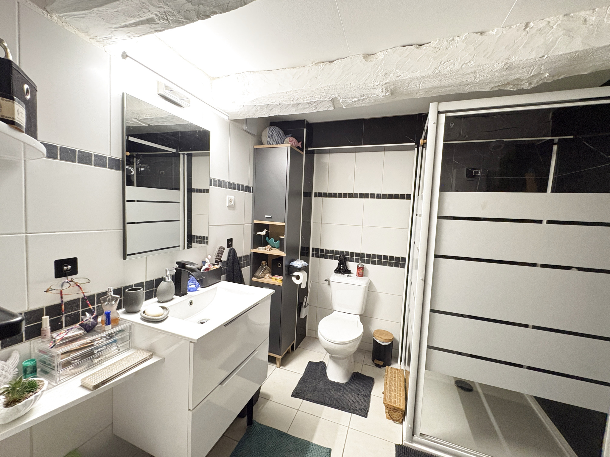 Le rez-de-jardin est entièrement consacré à l'espace nuit et accueille une spacieuse chambre parentale avec sa salle d'eau moderne attenante. Il serait également possible d'aménager cet espace afin de créer une seconde chambre sans gros travaux.