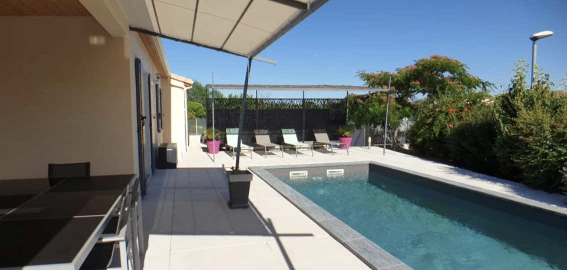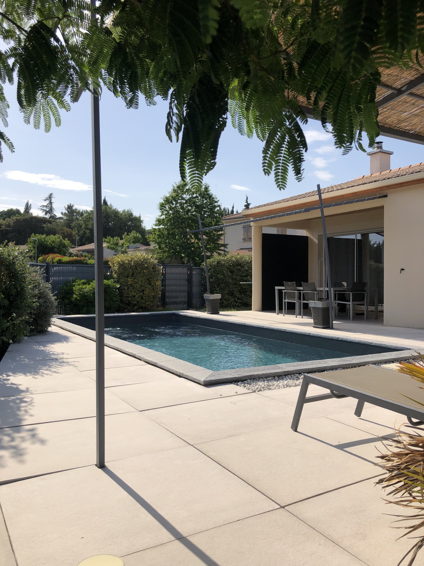 A l'exterieur vous profiterez d'une belle terrasse avec auvent et d'une très belle piscine ,le tout arboré et clôturé.