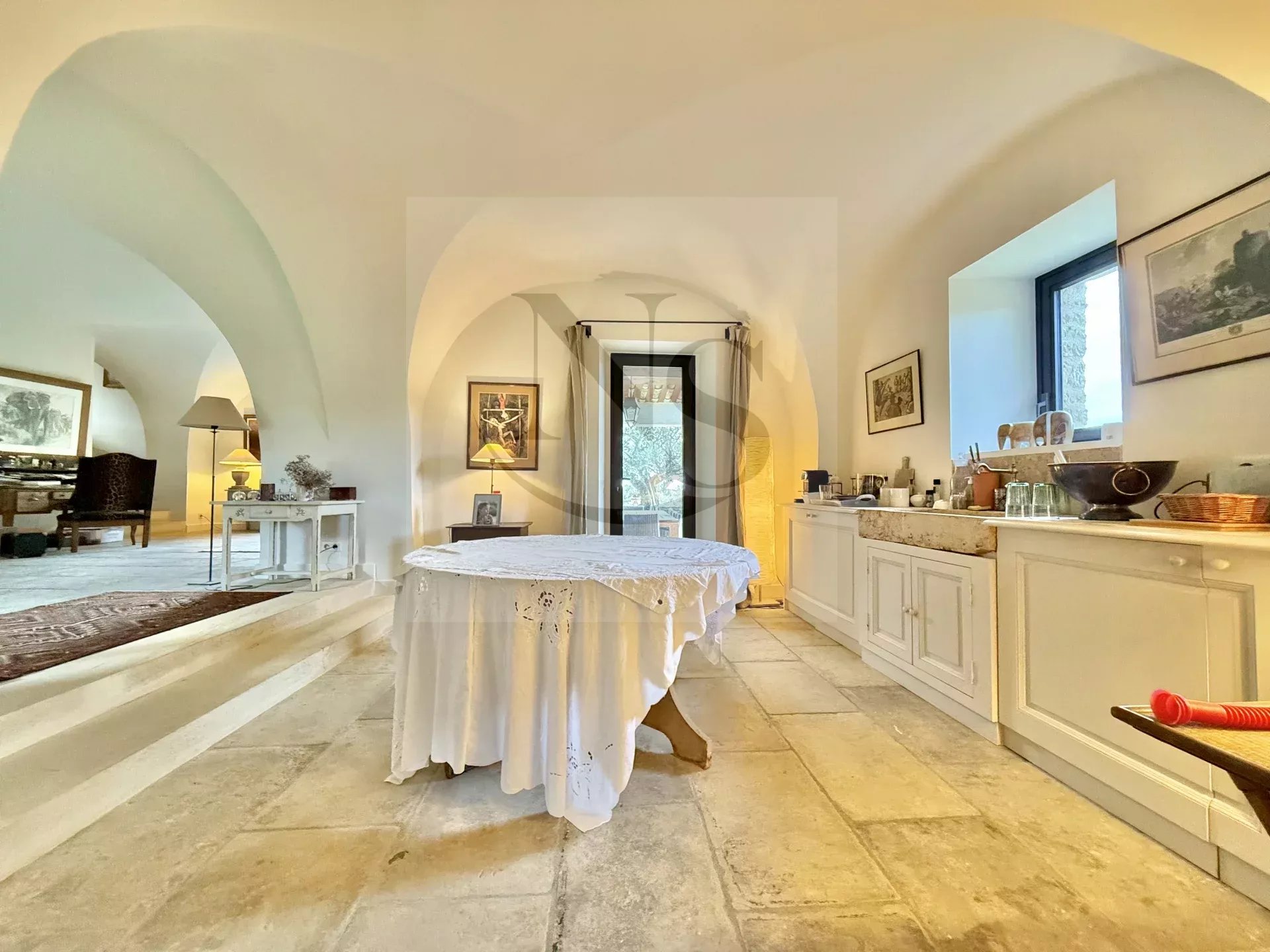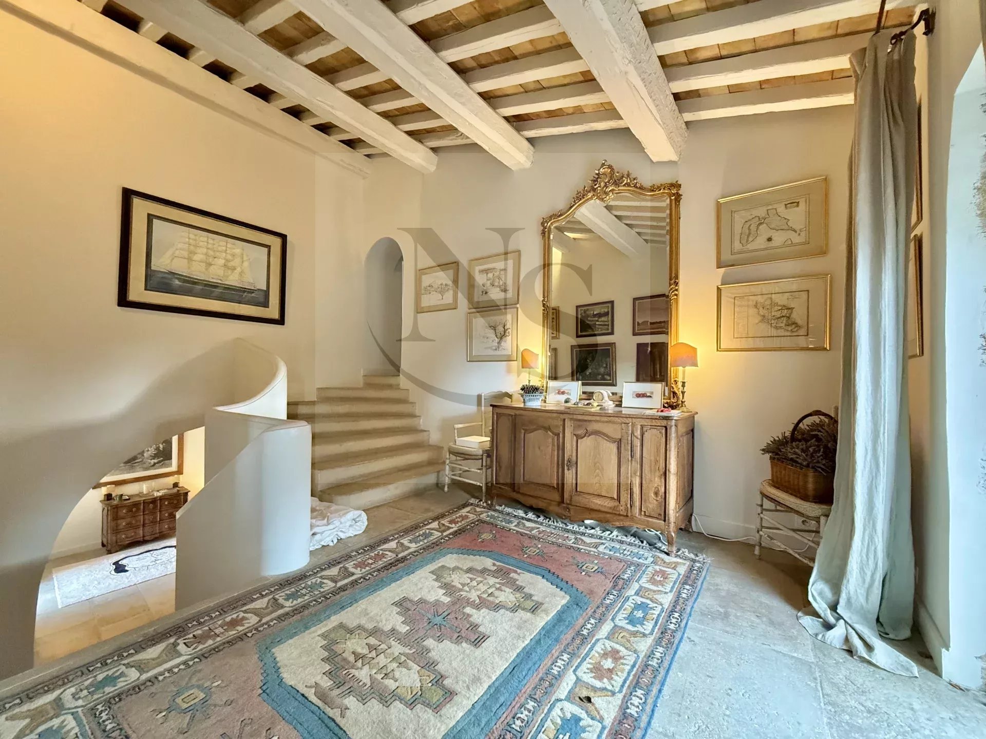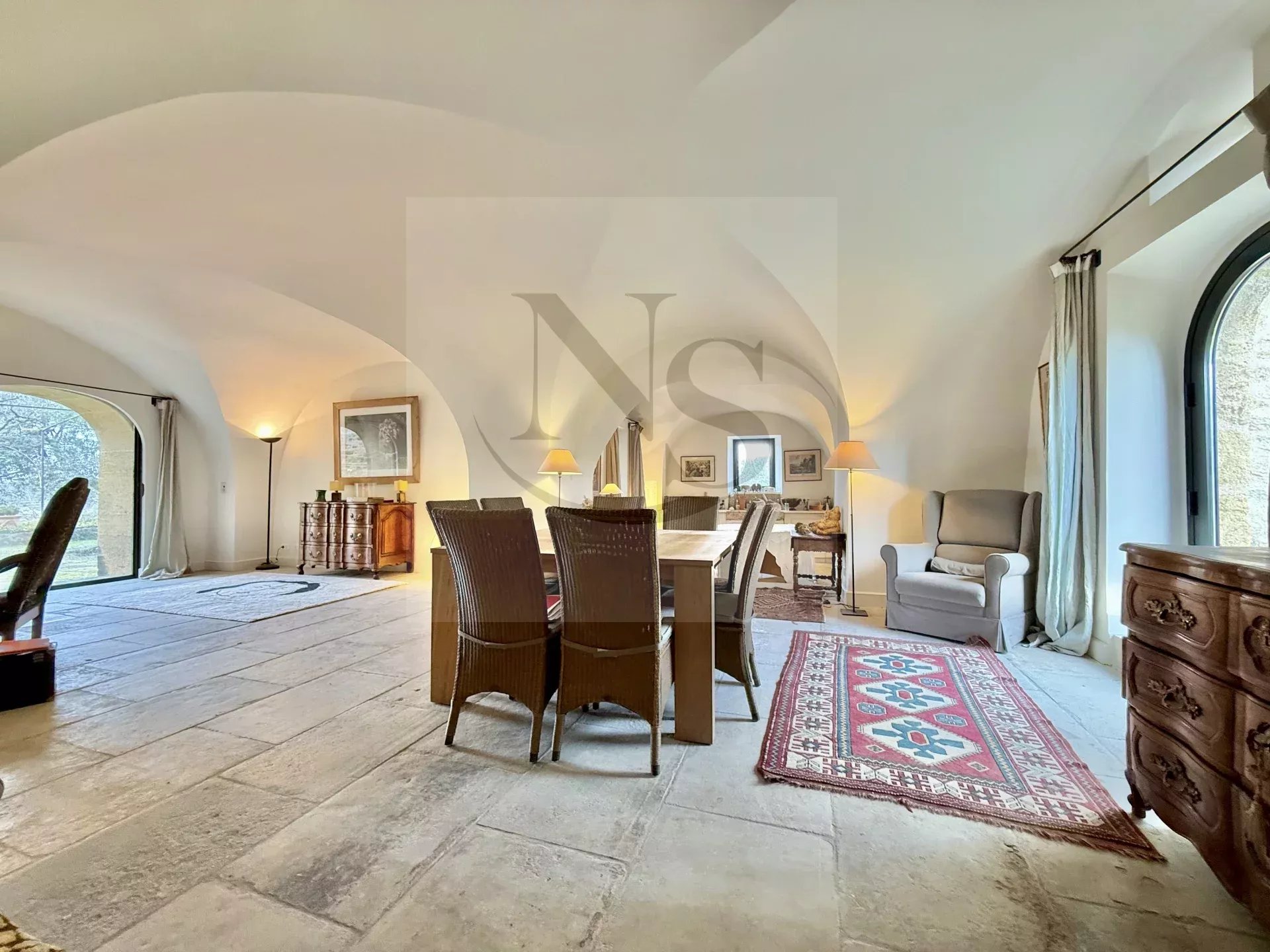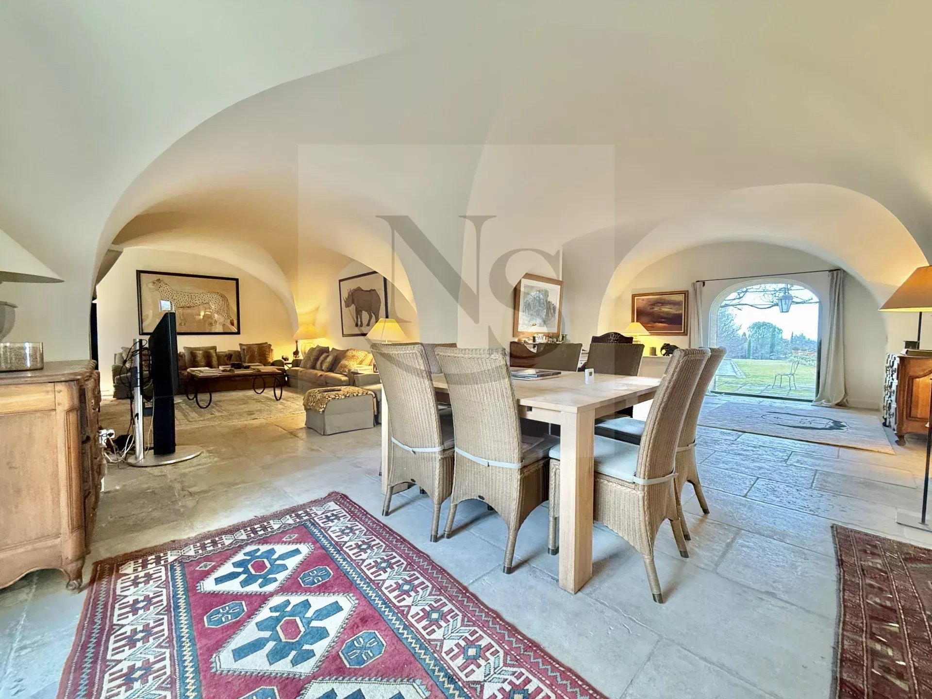 Le groupe Nicolas Staes vous présente à la vente au coeur du village de Lourmarin avec ses nombreuses boutiques et restaurants, la seule et unique propriété datant du XIX ème siècle disposant d’un superbe parc en plein cœur du village d’une superficie d’1ha6. Le parc arboré d’oliviers centenaires, comprend une magnifique piscine en pierre chauffée, un poolhouse ainsi qu’une orangerie et un terrain de pétanque. Surplombant le village avec une vue panoramique, la propriété qui a été rénovée, développe environ 500 m2 habitables bénéficiant de 4 expositions, elle comprend 6 chambres avec salles d’eau, dont 1 master avec dressing. Une double réception entièrement traversante avec une grande cheminée donnant sur une première terrasse, un deuxième salon et bureau avec également sa cheminée. Une belle salle à manger avec cuisine équipée donnant sur une deuxième terrasse exposée sud. La propriété dispose de tout le confort moderne, tel que le sol chauffant et ses menuiseries en aluminium. Plusieurs dépendances dont un grand garage viennent compléter ce bien d’exception unique à la vente.