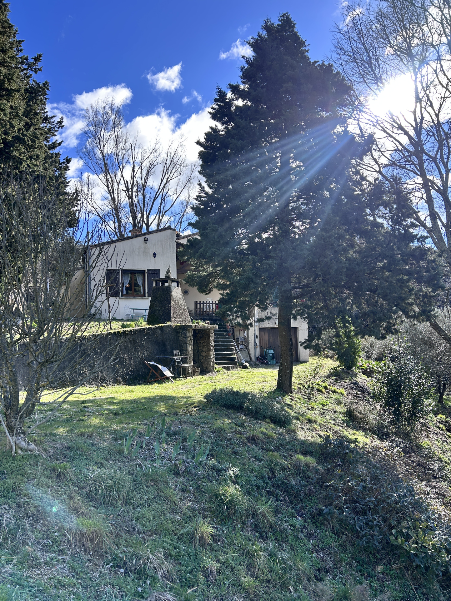 À l'extérieur, une belle terrasse avec vue dominante sur la vallée vous permettra de profiter pleinement du cadre naturel. La propriété s'étend sur 5 hectares, comprenant une source privée avec bassin, un atout rare et précieux.