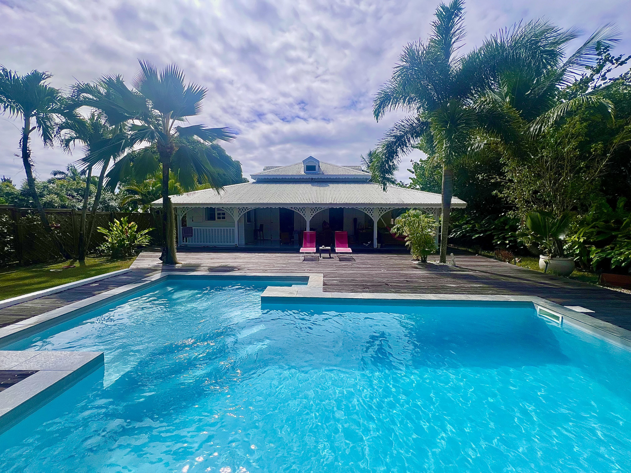 Un extérieur propice à la détente avec une belle piscine de 8mx5m, un deck de 110m2 et le local piscine indépendant avec coin barbecue le tout sur un parc arboré de 1455m2 offrant intimité et espace.