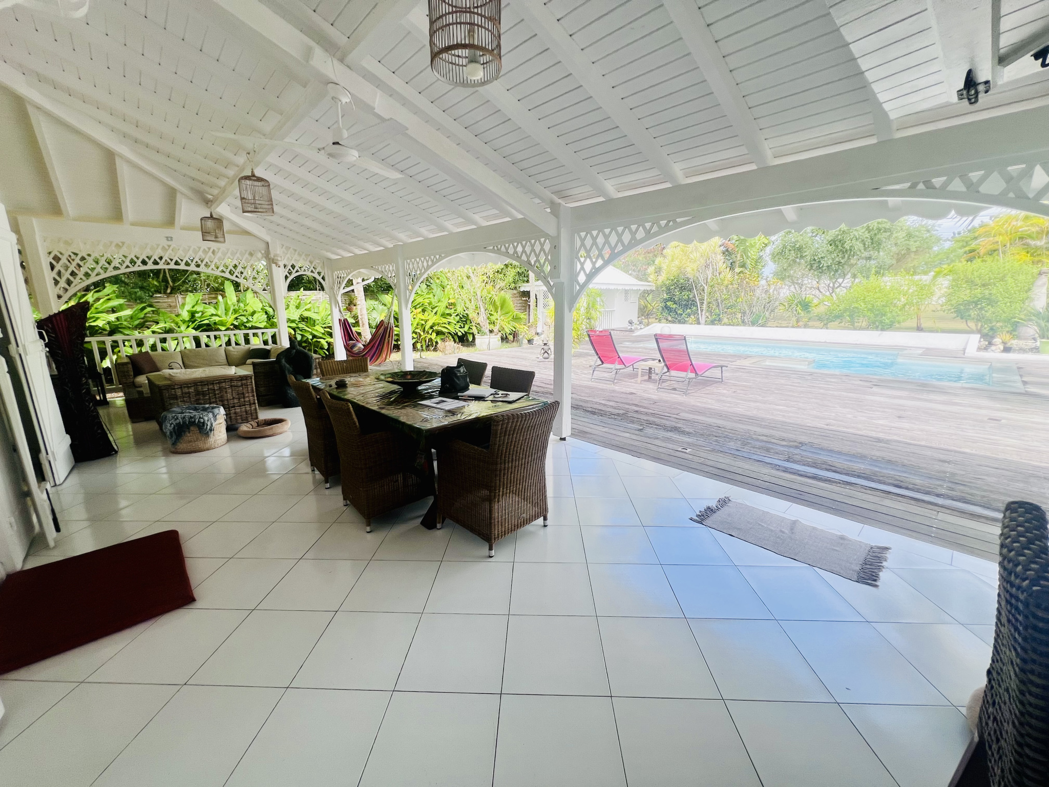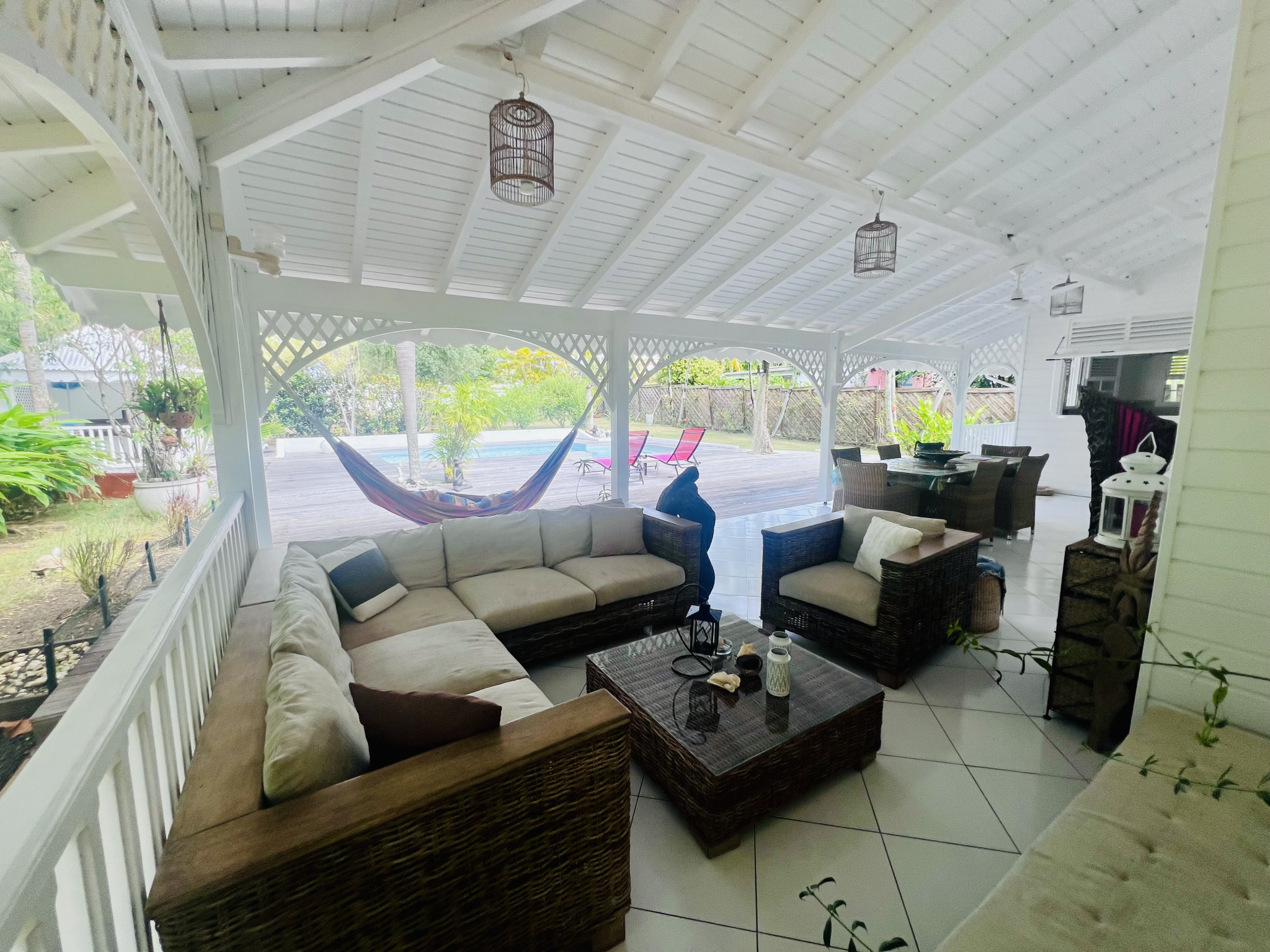 Notre véritable coup de coeur pour cette superbe villa de 220m2 dont 100m2 habitable, au charme créole, construite en 2001, située dans un environnement campagne privilégié, au calme et proche des commodités. Dès l'entrée, les volumes et la luminosité séduisent immédiatement !