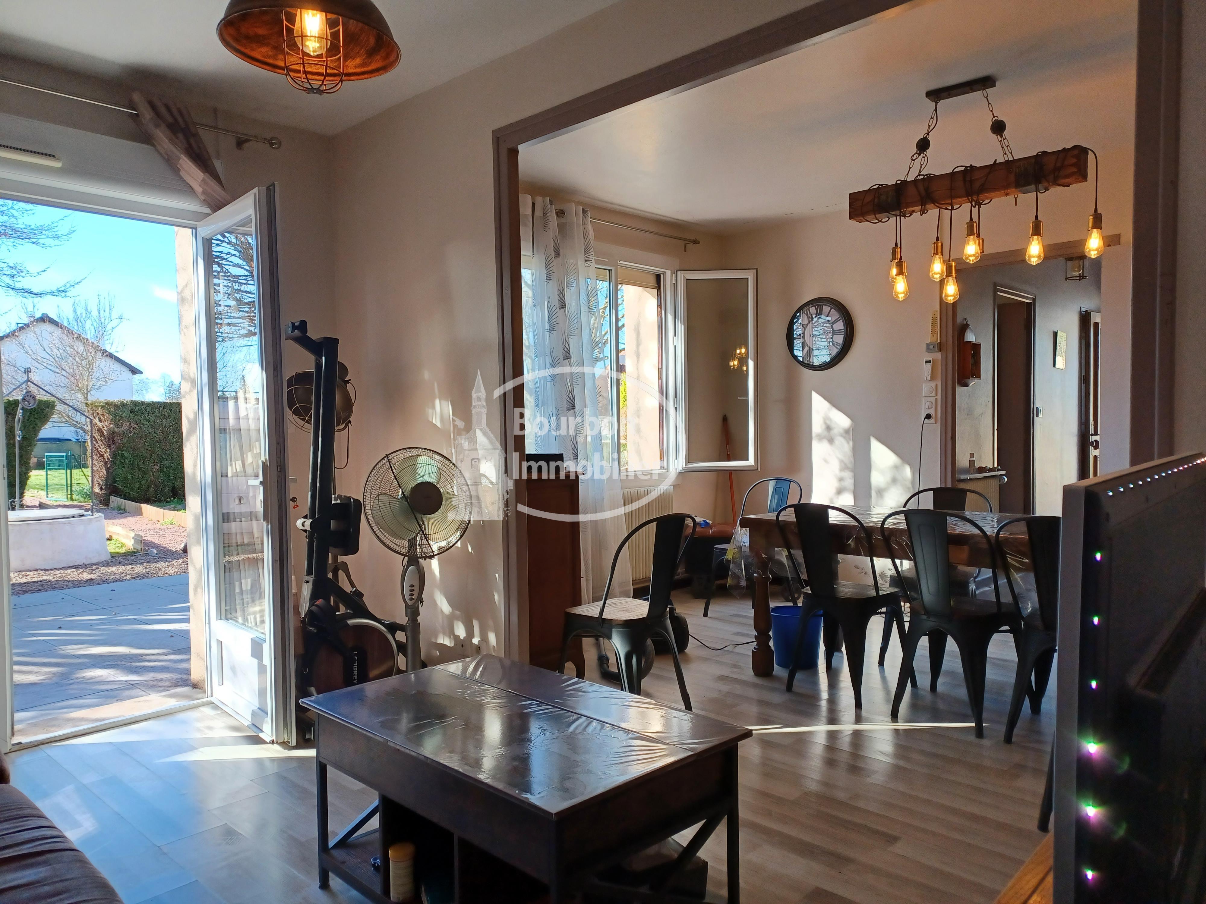 Réf 2364. L'agence BOURBON LANCY IMMOBILIER vous propose à 03230 GARNAT SUR ENGIEVRE, 10 minutes de BOURBON LANCY et 25 minutes de MOULIN. De plain pied: cuisine équipée, salle/salon donnant sur terrasse , 2 chambres, cellier, salle de douche, wc. Garage attenant et grenier. Cuisine d'été en annexe. Puits. Chauffage central fioul. Poêles à pellets. Terrain de 1311 m² avec poulailler et abris bois. Portail électrique. 142500 € FAI. 135000 € net vendeur et 7500 € de frais d'agence à la charge de l'acquéreur.