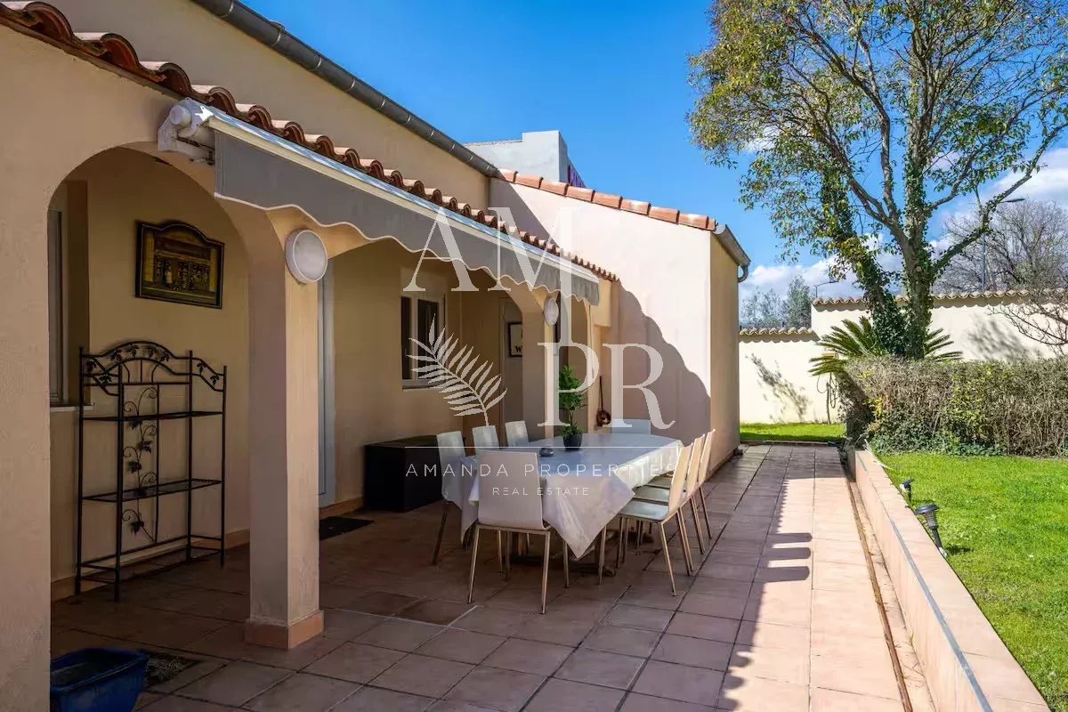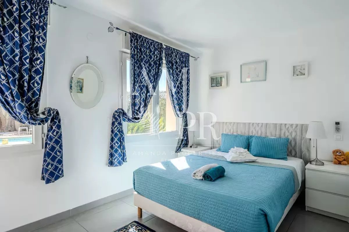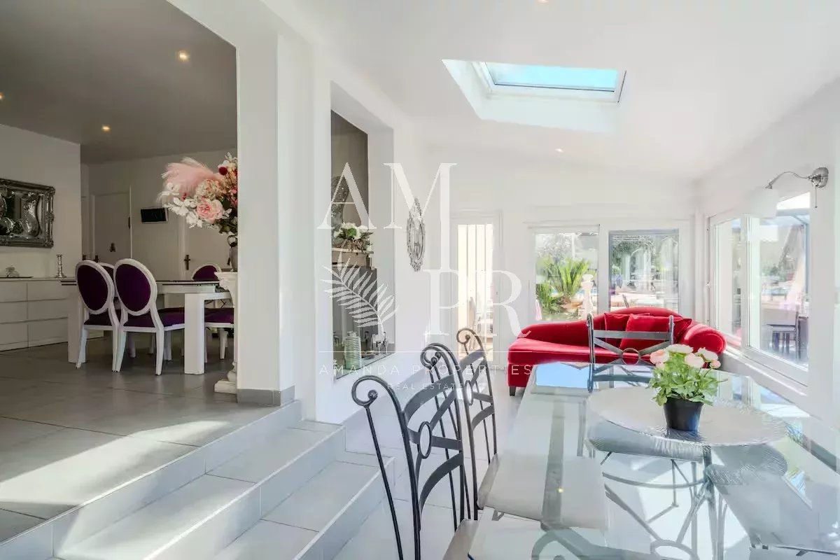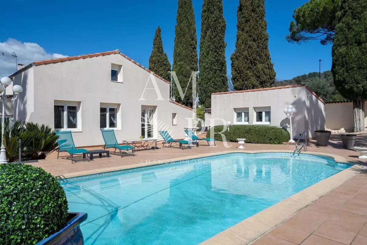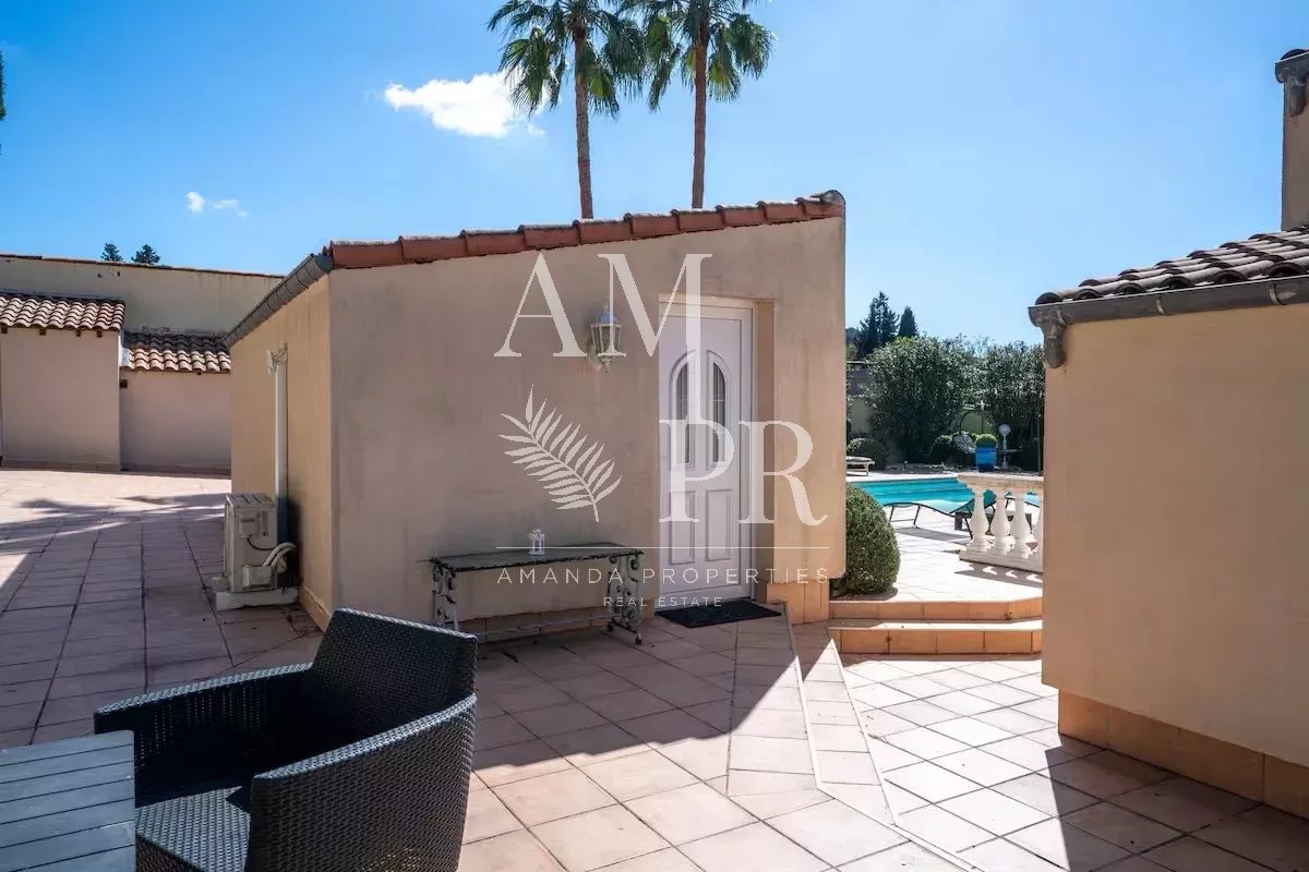 Maison provençale avec piscine, sauna et dépendance, à 15 min de Cannes et 20 min de l’aéroport de Nice. Offrez-vous un cadre convivial pour des vacances inoubliables sur la Côte d’Azur. Profitez de moments de détente au bord de la piscine, de repas en extérieur sous le soleil et de moments de bien-être dans le sauna. Idéale pour des séjours en famille ou entre amis, cette maison combine confort, charme et proximité des attractions locales. Le logement Bienvenue dans cette superbe maison provençale idéale pour des vacances en famille ou entre amis, située à proximité des commerces et des principaux axes routiers. Vous serez à seulement 15 minutes de Cannes et 20 minutes de l’aéroport de Nice, parfait pour découvrir toutes les merveilles de la Côte d’Azur. La maison principale : 3 chambres en rez-de-chaussée : Chambre 1 : • Lit double 160 x 200 cm avec literie d’hôtel haut de gamme • Salle de bain privative avec baignoire, douche classique, vasque moderne et WC • Rangements intégrés avec penderie et étagères Chambre 2 : • Lit double 160 x 200 cm avec literie d’hôtel premium • Salle de bain attenante avec douche classique, vasque et WC • Placard intégré Chambre 3 : • Lit double 160 x 200 cm avec literie d’hôtel de qualité • Salle de bain attenante équipée d’une douche classique, vasque et WC • Placard intégré • Une belle pièce à vivre lumineuse avec un espace salon convivial et une cuisine semi-ouverte entièrement équipée. • Au 1er étage, une grande pièce sous les combles aménagée en chambre avec deux lits doubles, accompagnée d’une salle de bain avec WC. • Climatisation dans toute la maison pour un confort optimal en été. La dépendance : • Une chambre avec lit double (160 x 200 cm) et sa propre salle de bain, idéale pour accueillir des amis ou des membres de la famille en toute indépendance. • Climatisée également pour un séjour agréable. Les extérieurs : • Profitez d’un jardin arboré avec une cuisine extérieure équipée, un barbecue pour des grillades conviviales, et une grande table couverte pour vos repas en plein air. • Détendez-vous dans le sauna extérieur après une journée d’exploration. • Une piscine privée avec transats vous attend pour des moments de détente sous le soleil de la Côte d’Azur. Cette maison est l’endroit parfait pour combiner détente, confort et découvertes de la région. Accès des voyageurs Les voyageurs ont accès à l’intégralité de la maison. Autres remarques La propriété offre la possibilité de garer 2 voitures à l’intérieur et plusieurs autres à l’extérieur, le long de la rue.