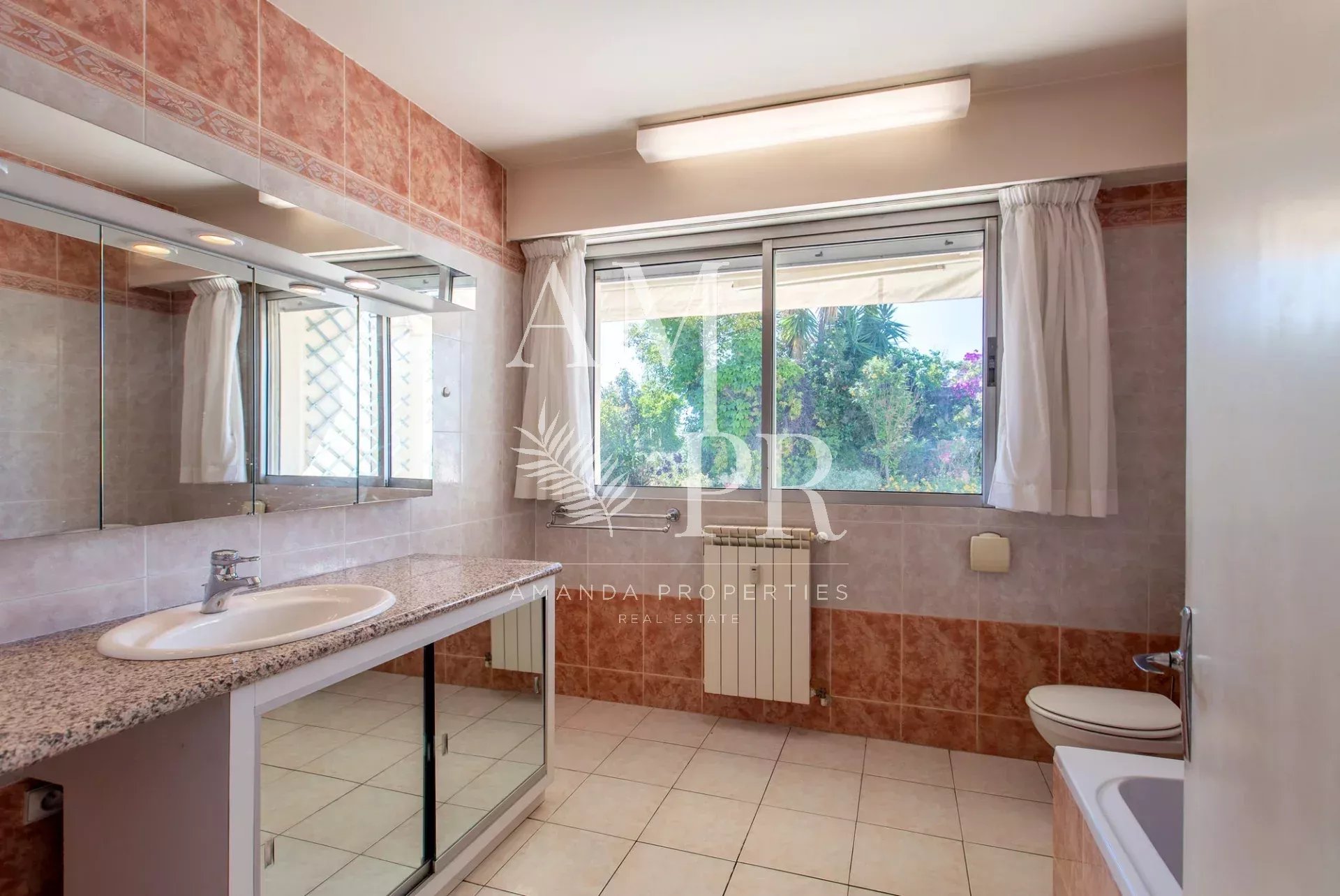 NICE CIMIEZ : Amanda Properties vous invite en plein coeur de Cimiez, à découvrir dans belle résidence de standing avec gardien, Ce grand et lumineux 4 pièces en dernier étage de 144 m² en triple exposition, à moderniser, ouvert sur une fabuleuse terrasse de 380 m² de plain pied avec jardinières arborées, barbecue, offrant des vues panoramiques sur les collines, la ville, la mer et le Cap d'Antibes. Il se compose d'une entrée, grand séjour, cuisine indépendante, chambre de maître avec dressing et salle de bains, deux autres chambres dont une avec douche, toilettes invités et de nombreux rangements. Ce bien d'exception au très fort potentiel est vendu avec un grand garage et cave ***A Moderniser & Rafraichir
