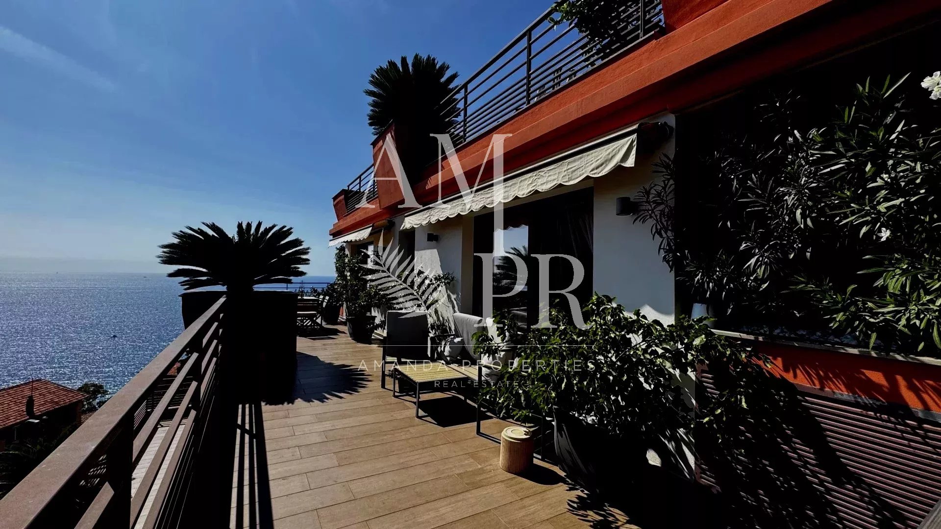 Amanda Properties vous propose à seulement 10 minutes à pied de Monaco, ce ravissant ROOFTOP de 60 m2, offrant un cadre de vie idyllique avec sa terrasse de plein pied et son toit terrasse de 54m2 surplombant toute la baie de ROQUEBRUNE cap martin. L'appartement est situé dans une récente résidence sécurisée des années 2016 bénéficiant d'une piscine; il est composé d'un hall, d'un séjour, une cuisine ouverte entièrement équipée, deux chambres, une salle de bain/ toilette et une buanderie. Un grand stationnement en sous sol complète ce bien.